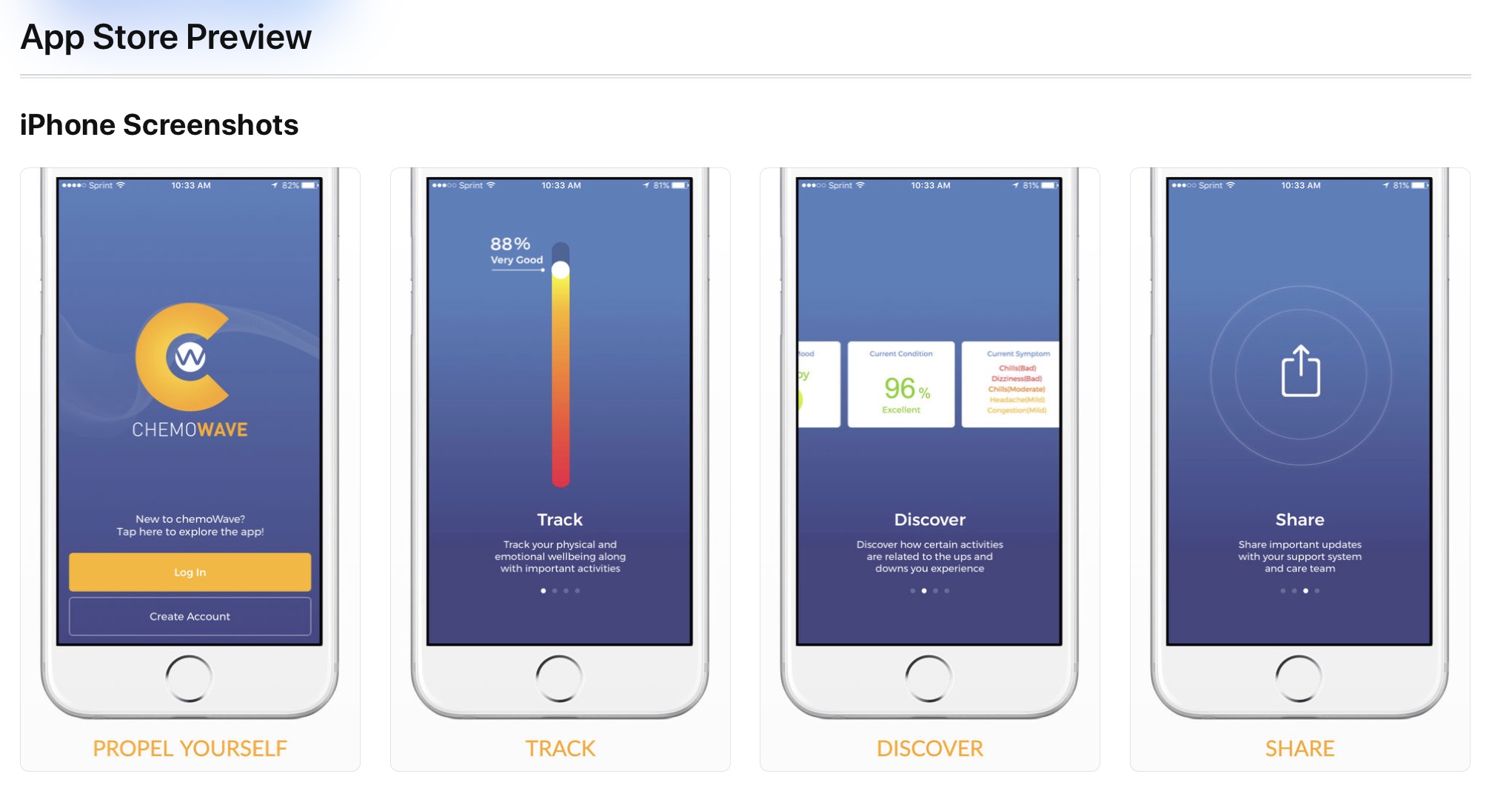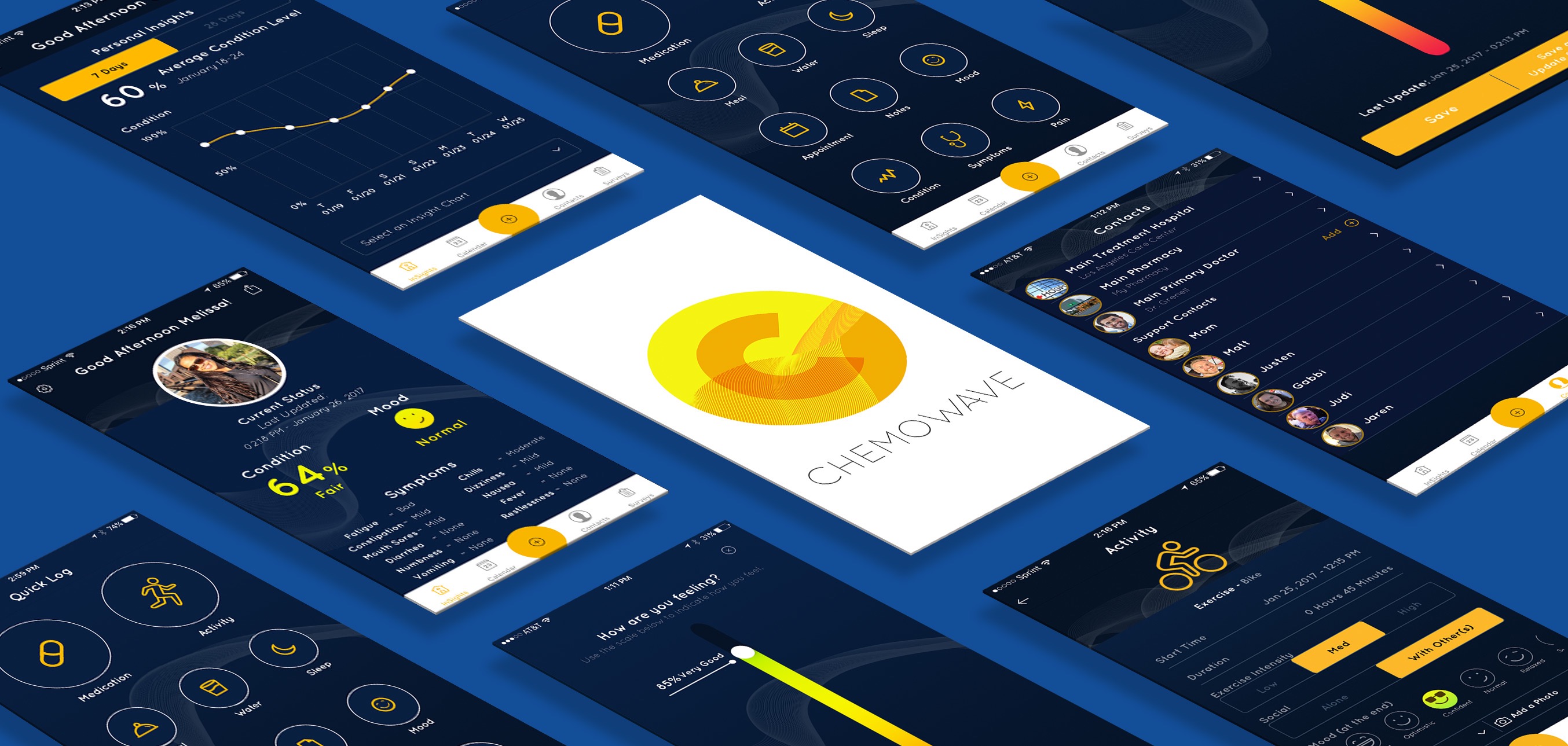 chemoWave is a mobile application that helps chemotherapy patients track their activities and treatment experience, and provides them with insights that enable them to work more effectively with their support team to better control the side effects and symptoms they experience.