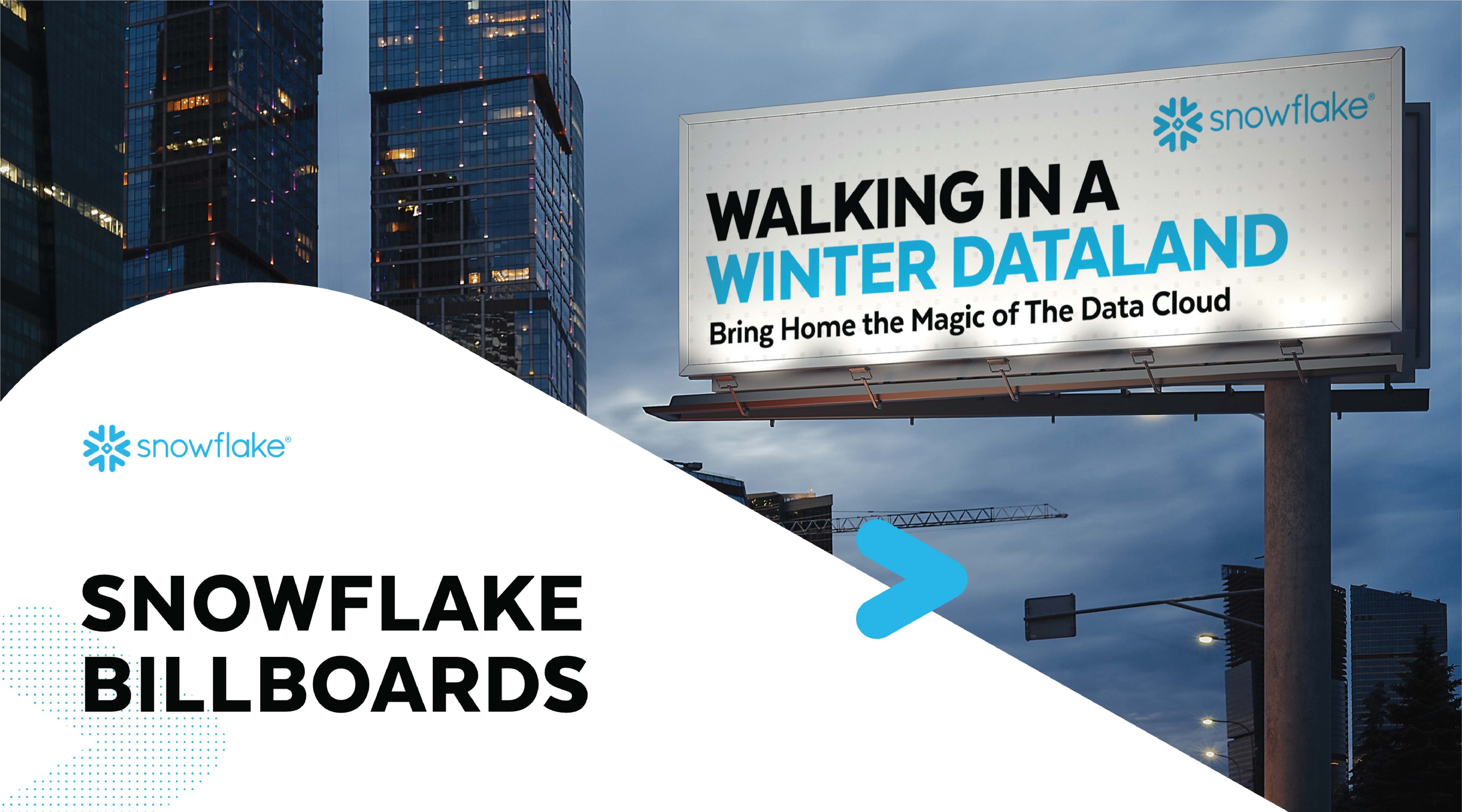 The billboards maintained a billboard presence on the 101 in San Francisco and outside the Lincoln Tunnel in New York. On a rotating basis, new billboards were created with a brand-building personality sprinkled with wit and just the right amount of creative risk. The creative copy played on current events and trends while first and foremost - promoting Snowflake’s Data Cloud.