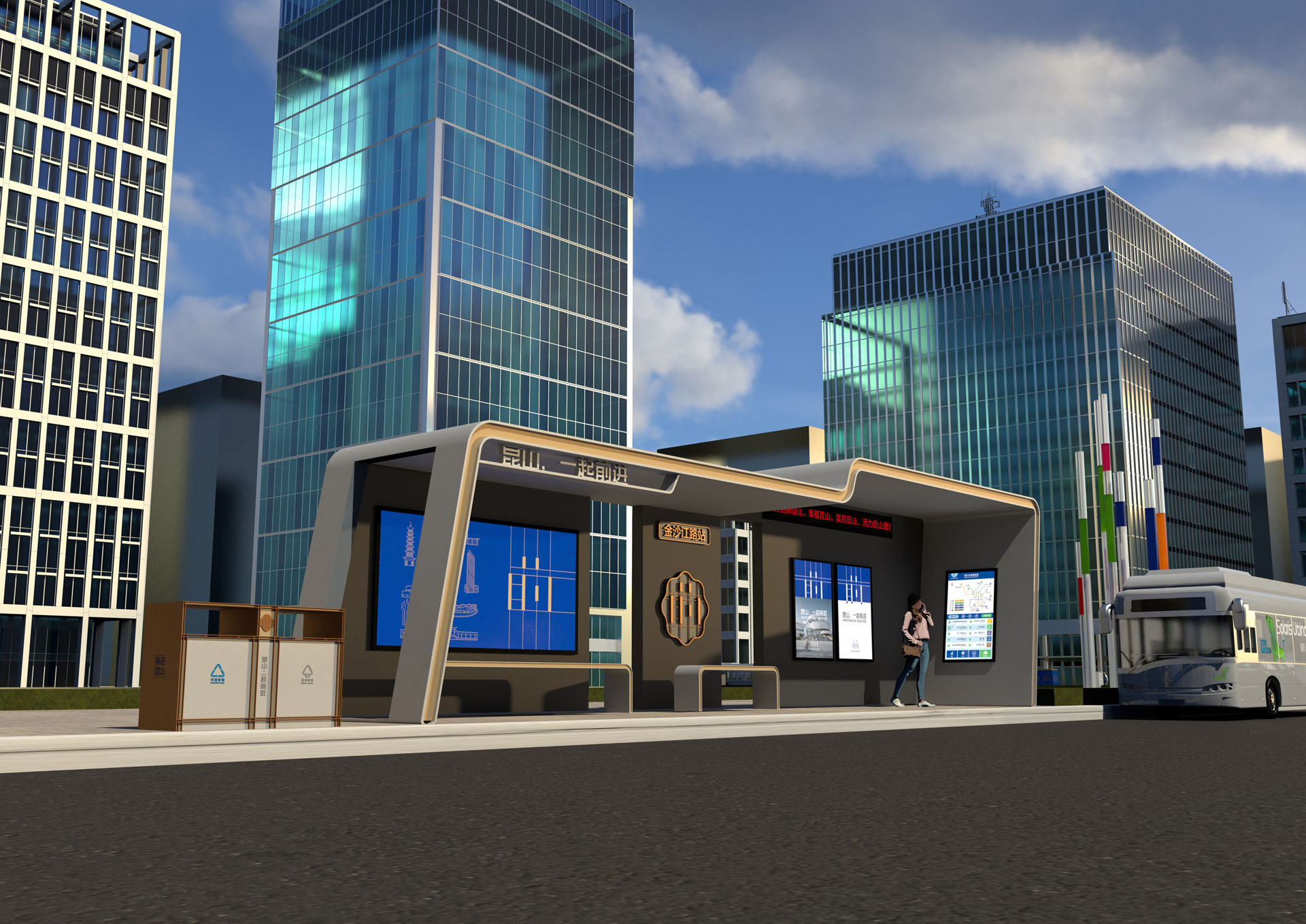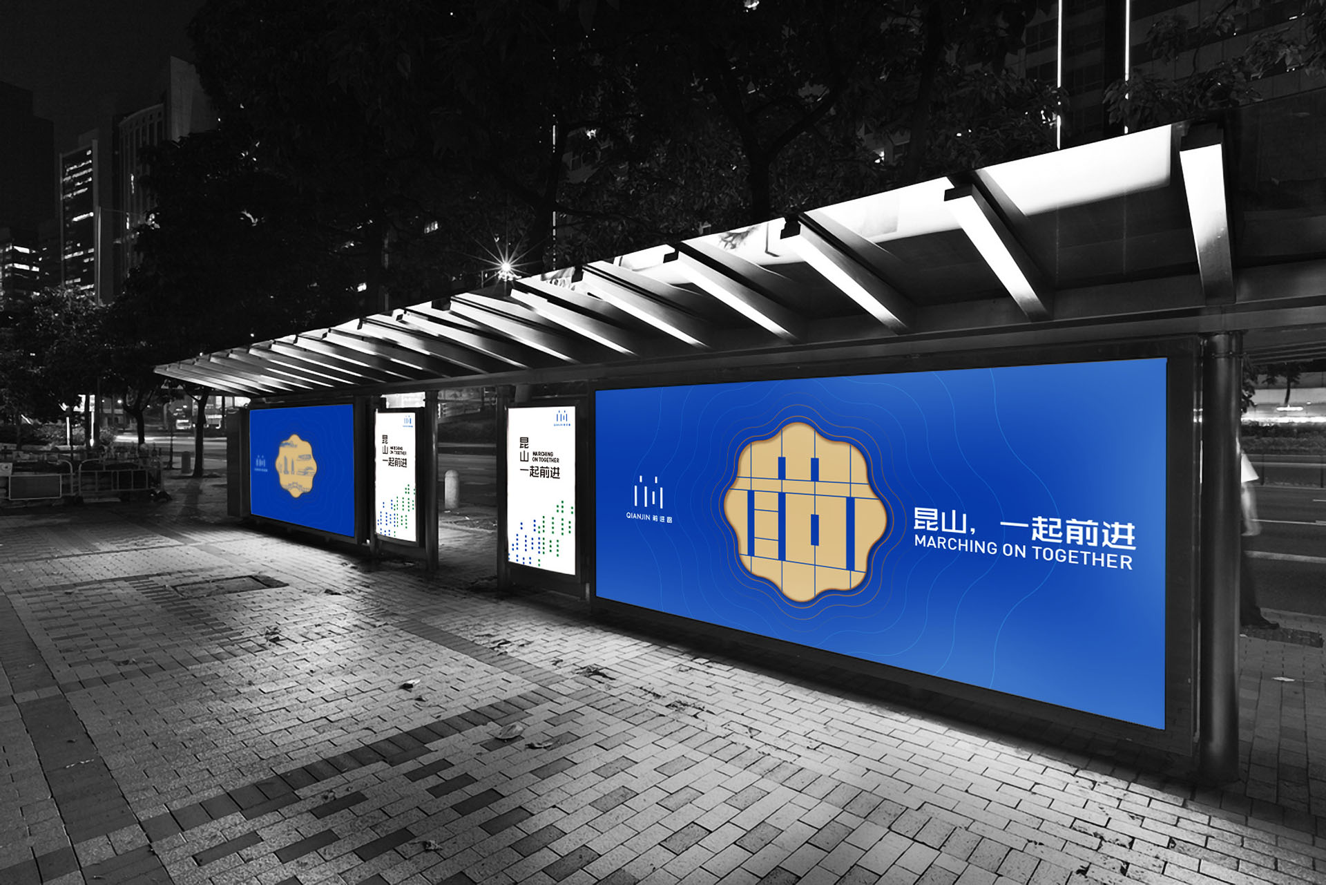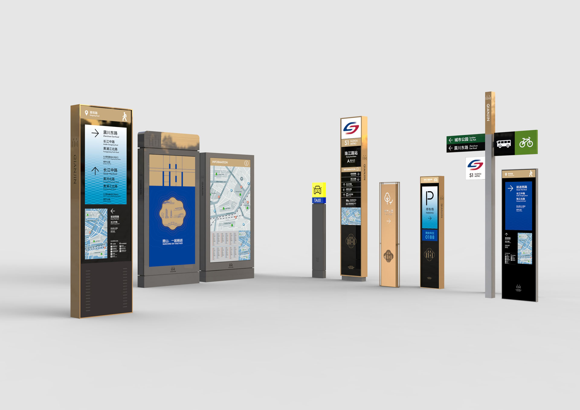 Kunshan, China, is a city that dares to innovate. The word "qian" has the meaning of advance, advance team, and bravery in Chinese. The core of the development of the city is people. Deconstructing the Chinese character strokes and integrating the form of "human" reflects the development attitude of the forward road and the concept of "hand in hand, endless progress", which has become the symbolic symbol of the forward road in Kunshan. A modern minimalist visual beauty. Using the plane principle of dots, lines and planes, combining lines of different lengths to make them have upward momentum, representing the new vitality that rail transit has injected into Kunshan; geometric font elements are stylish and have excellent malleability, and can be widely used. Application is conducive to brand promotion.