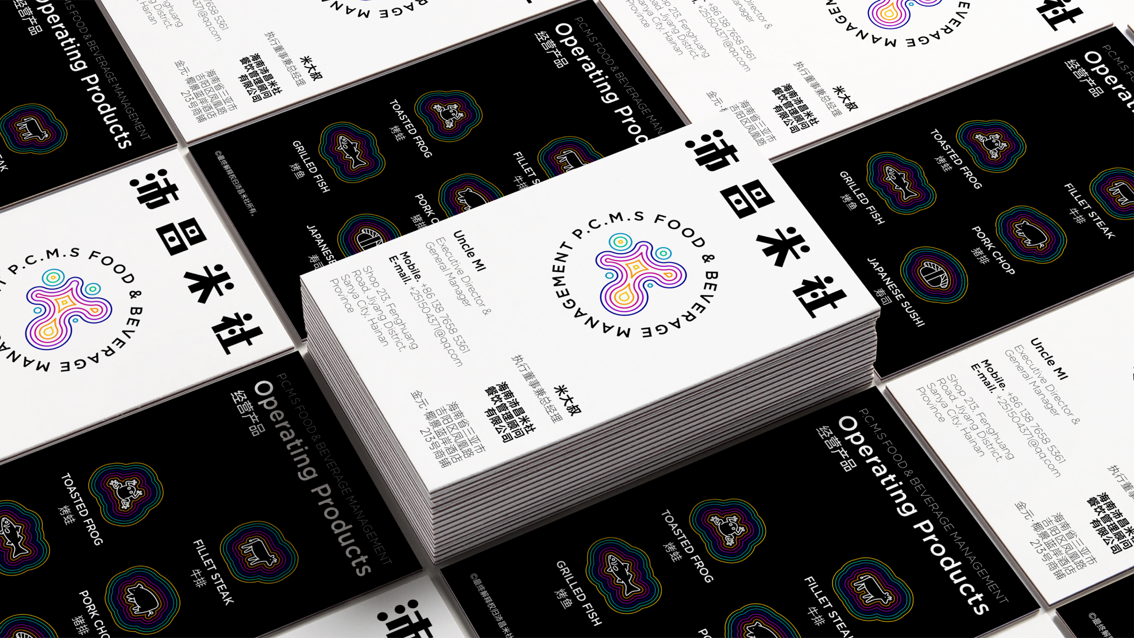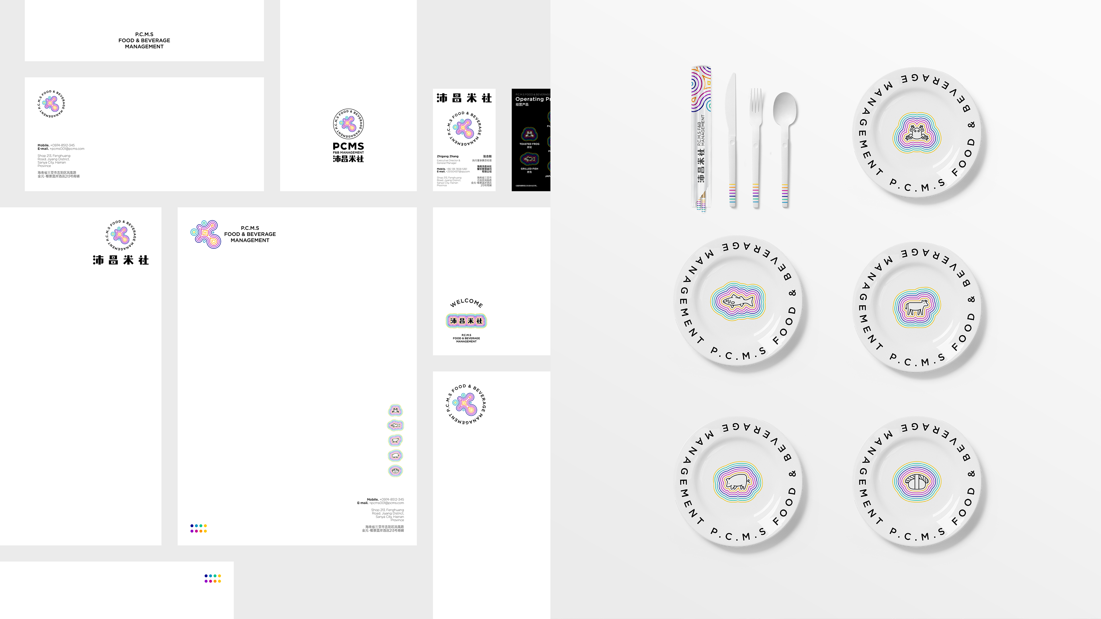 P.C.M.S FOOD & BEVERAGE MANAGEMENT is a multi-brand development enterprise. We take a circle as the shape to represent "oil" and "water". Oil and water are not mutually soluble. Capture the fusion and separation of two substances to form a dynamic of different shapes. In the dynamic, there is density and consistency, forming visual vitality.
