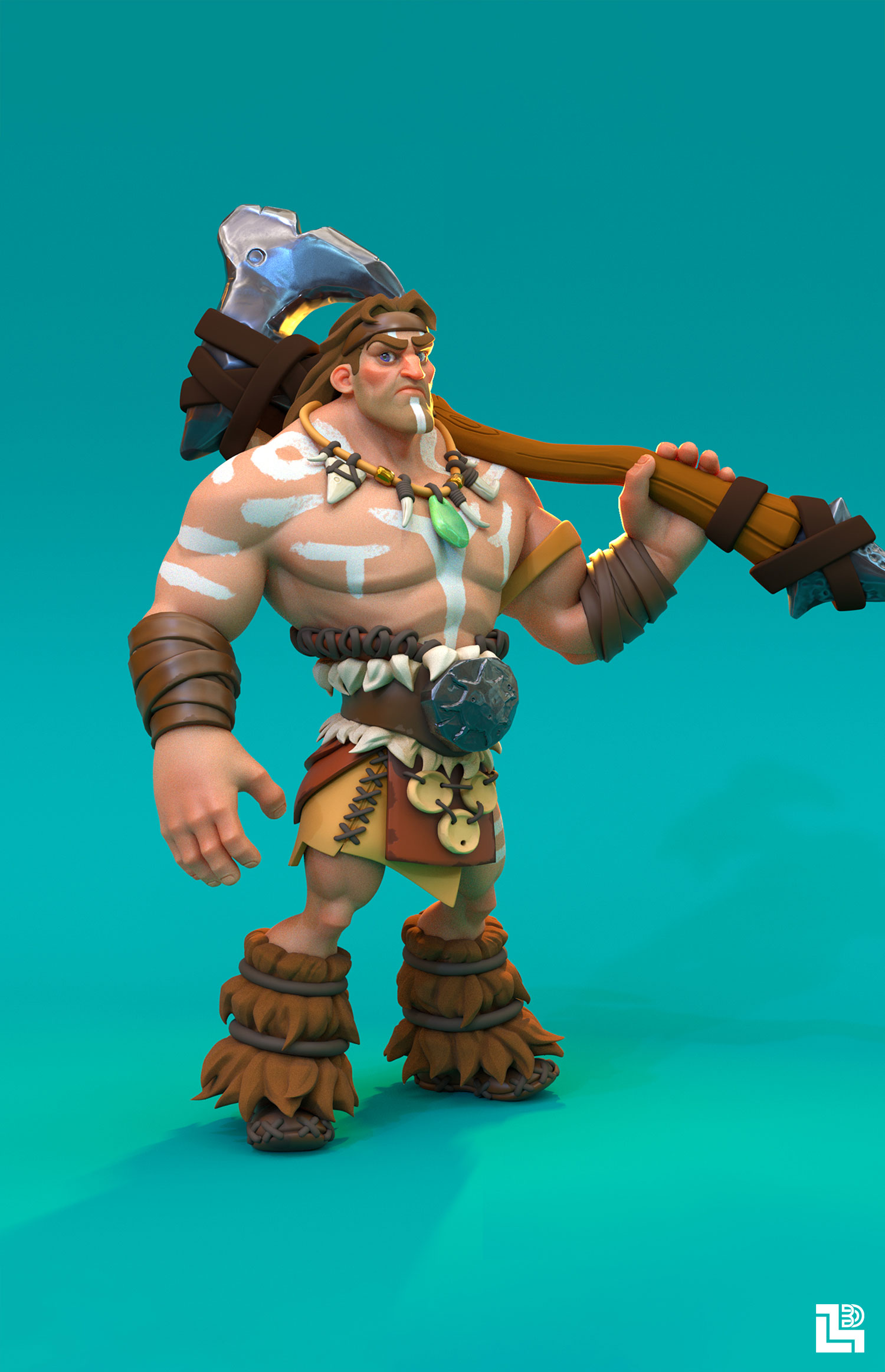 The standout character of the game is the heroic Barbarian Chief, "Gorvak," depicted wielding a massive warhammer. His design is a blend of raw power and tribal elegance, symbolizing the heart and soul of "Merger Legion." His detailed tattoos, rugged armor, and commanding presence are meticulously crafted, capturing the essence of the game's rich, fantasy-inspired universe. Each character in "Merger Legion," including Gorvak, is not just a figure in battle but a story of evolution and power.