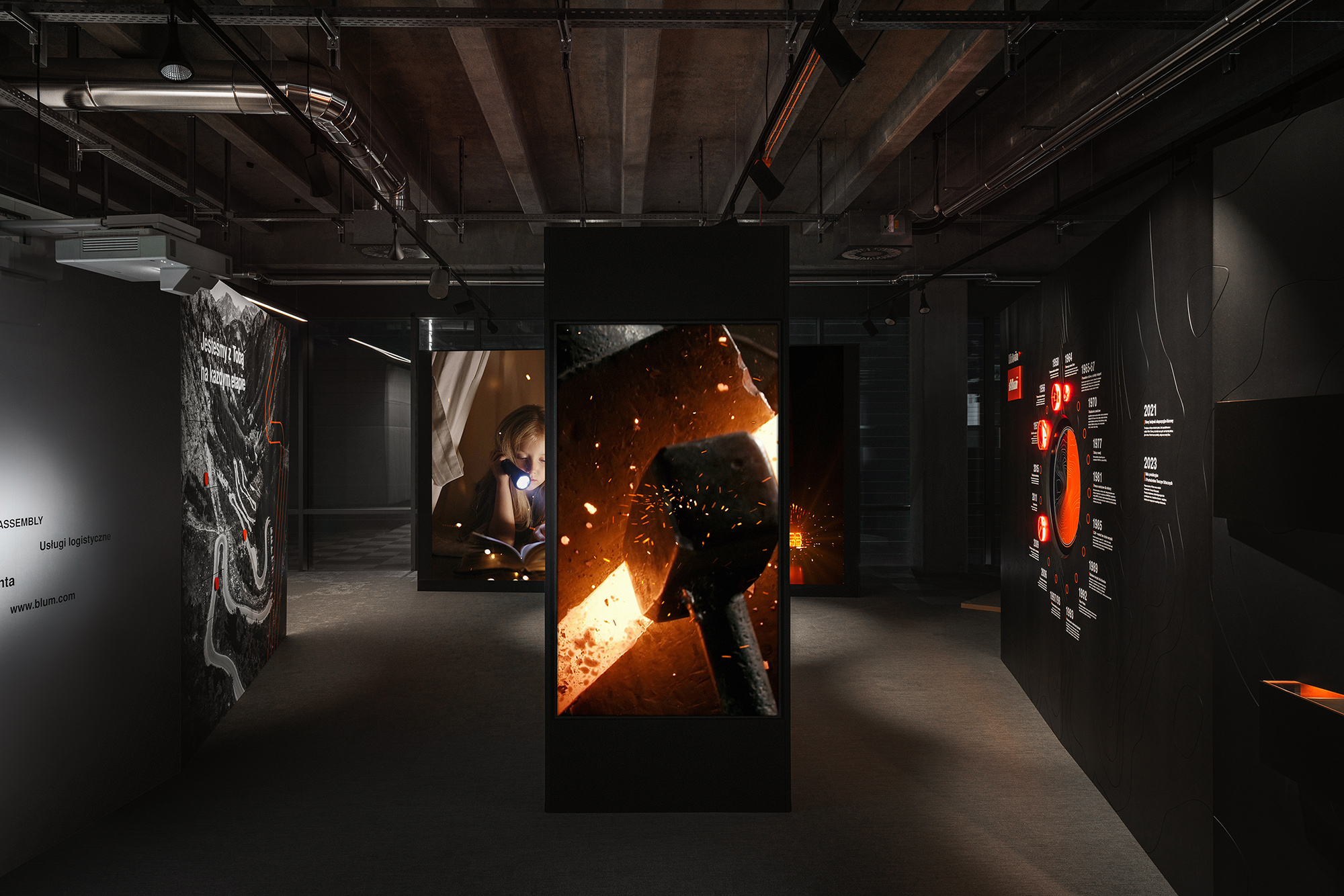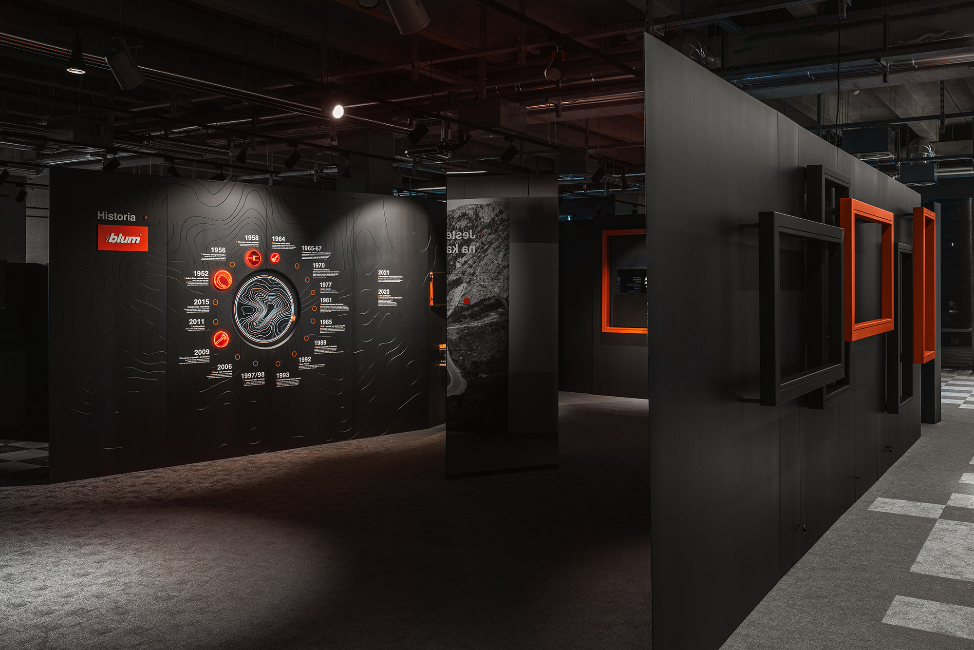 The history section details Blum’s 30-year presence in Poland, and global company values while the facts section and the hands-on activity zone showcase the intricacies of Blum’s products and craftsmanship. The project received high acclaim from Blum's president, leading to the proposal of adapting this concept in 70 similar zones worldwide, setting new standards in brand presentation and enhancing visitor engagement, demonstrating Blum's innovative spirit and commitment to excellence.