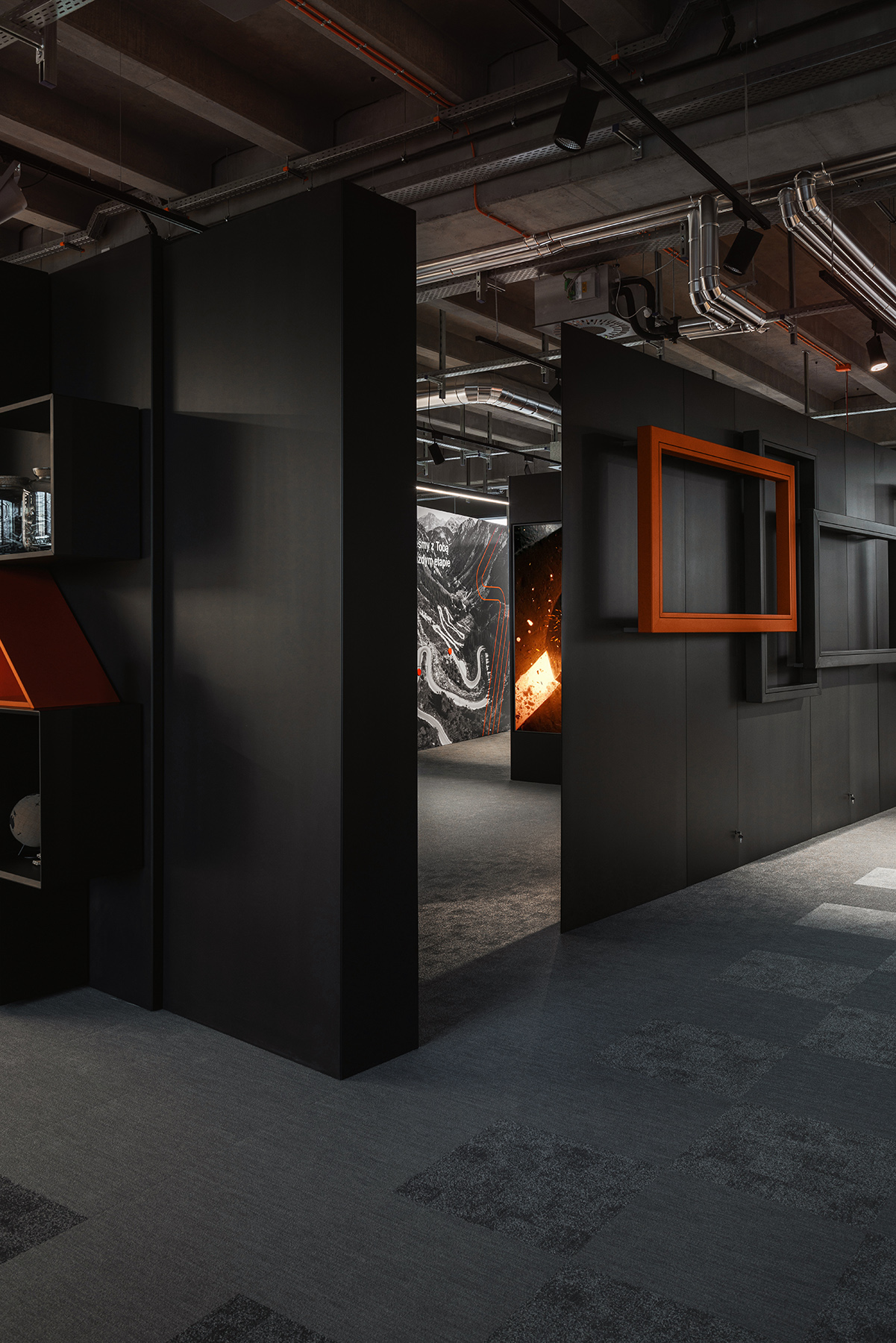 This innovative space combines advanced technology with high-quality materials like mass-dyed MDF boards and smoked mirrors, enhancing the sensory experience through dynamic animations and gesture-activated technology. The design theme, centered on the concept of 'movement', uses sparks and hand motifs to symbolize Blum’s dynamism and attention to detail.