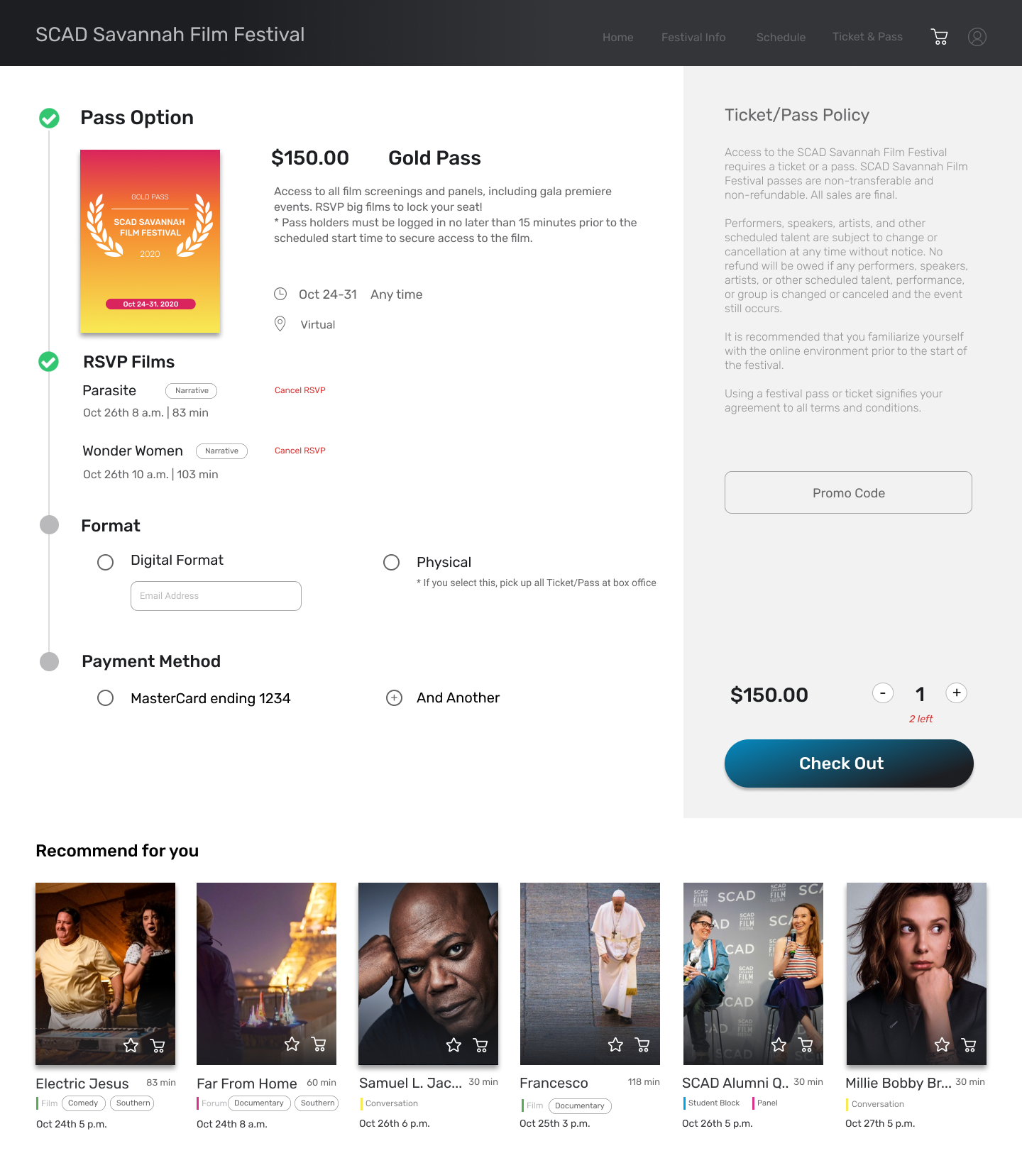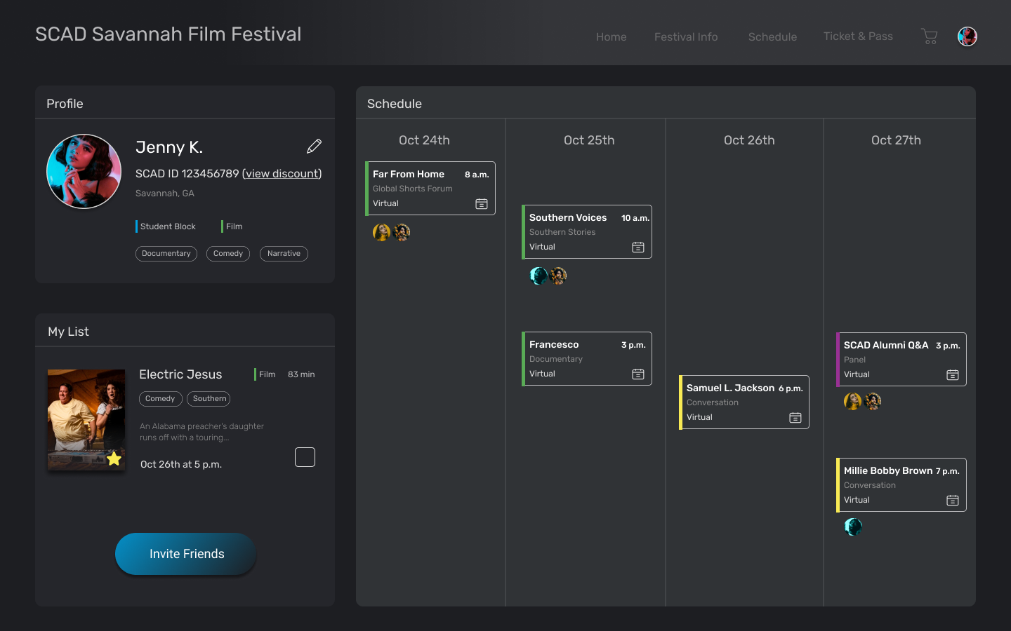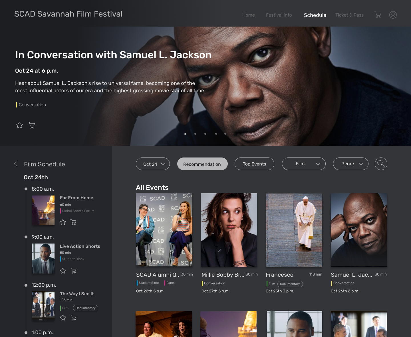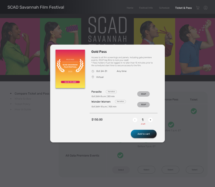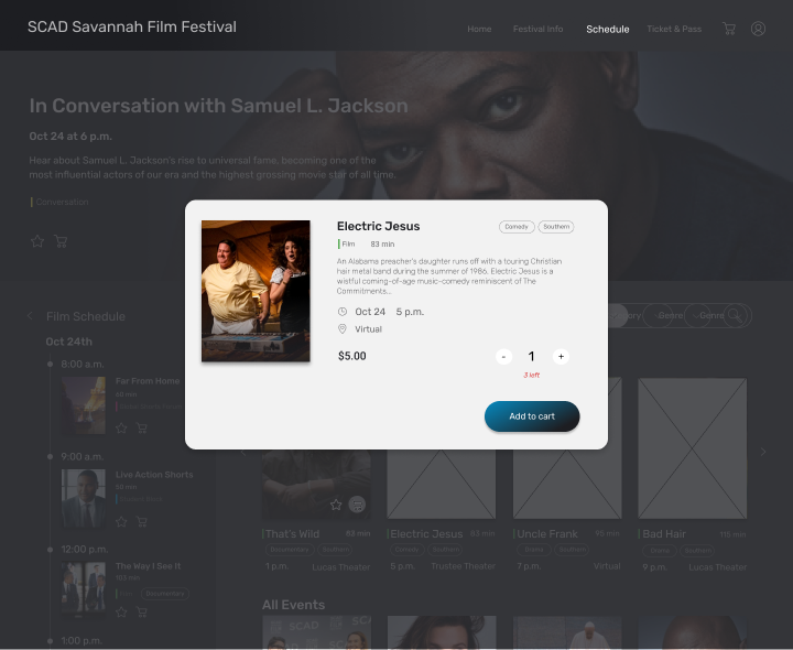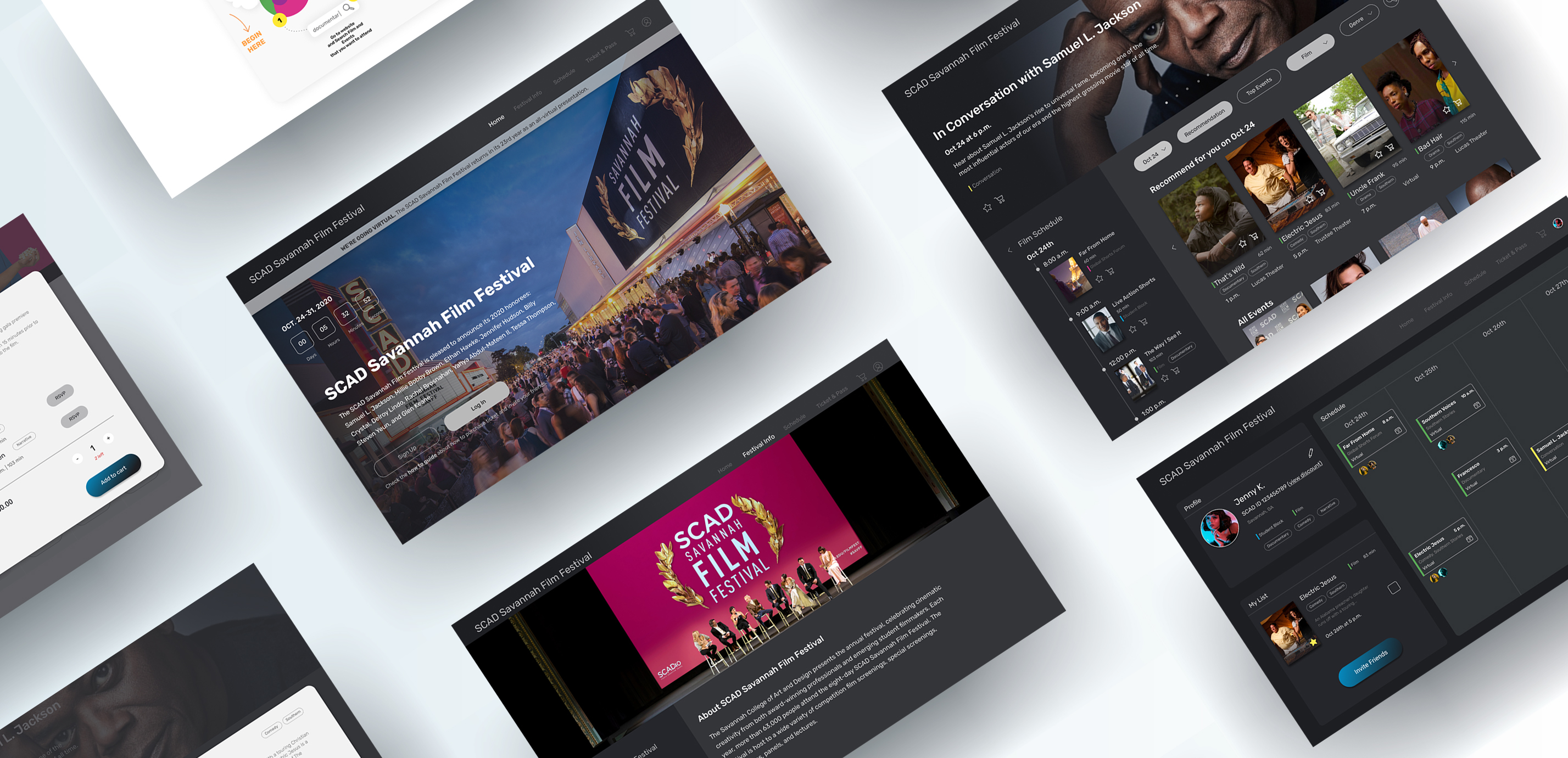 The SCAD(Savannah College of Art&Design) Film Festival, the world's largest university-run film festival, attracts over 60,000 attendees annually. It features film screenings, student showcases, red carpet events, and industry talks. User research with 80+ participants revealed issues with finding film schedules and information on the current website. As a result, the website Is redesigned to enhance the attendee experience, offering a more intuitive and enjoyable way to navigate the festival.