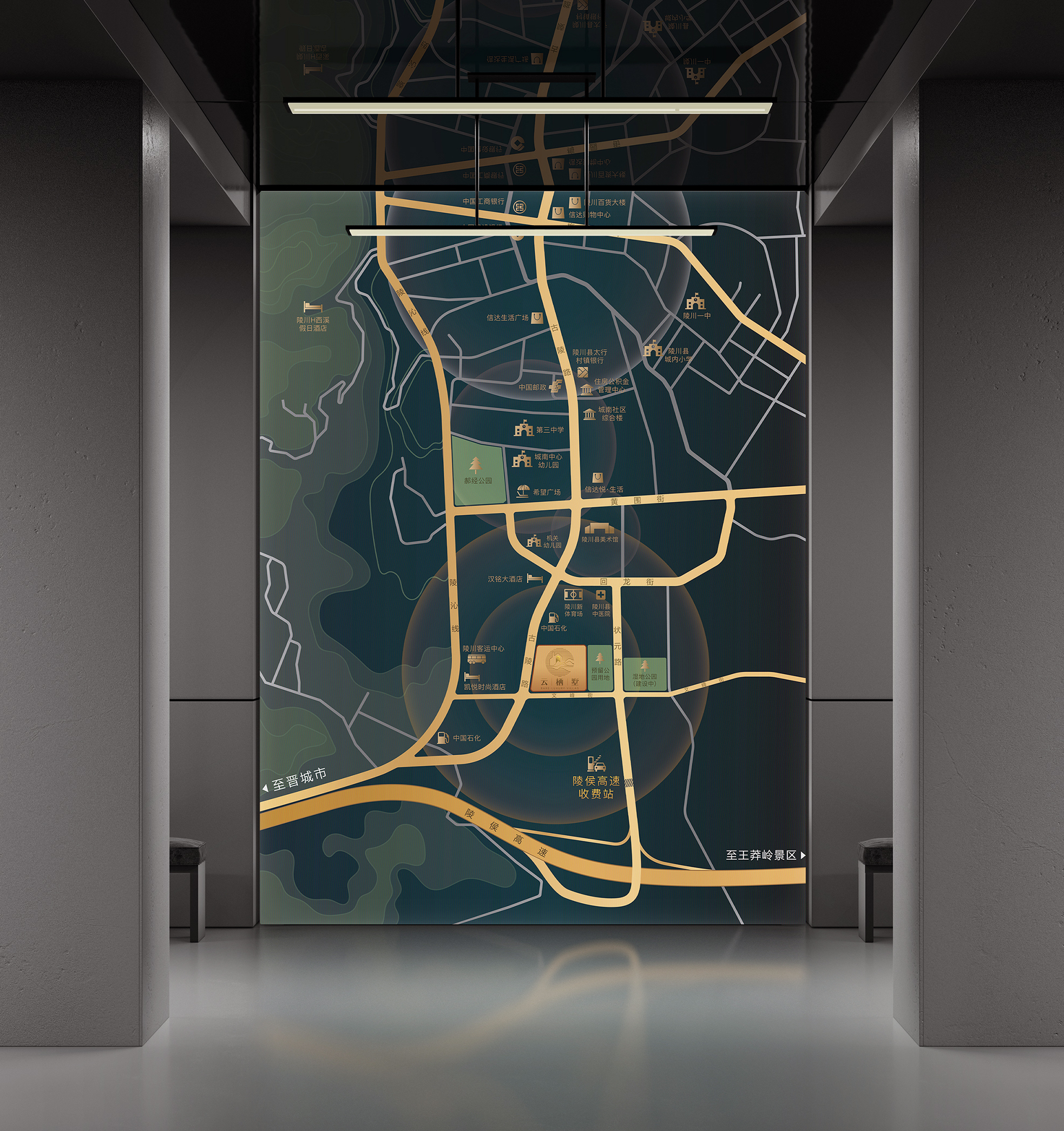 The design aims to establish a high-end image for the real estate project, Yunqi Shu, which means "dwelling in the clouds." Located in Lingchuan County, Shanxi Province, just 30 minutes from the Wangmangling Scenic Area, the project is positioned as an eco-friendly and diverse livable new area for health and wellness.