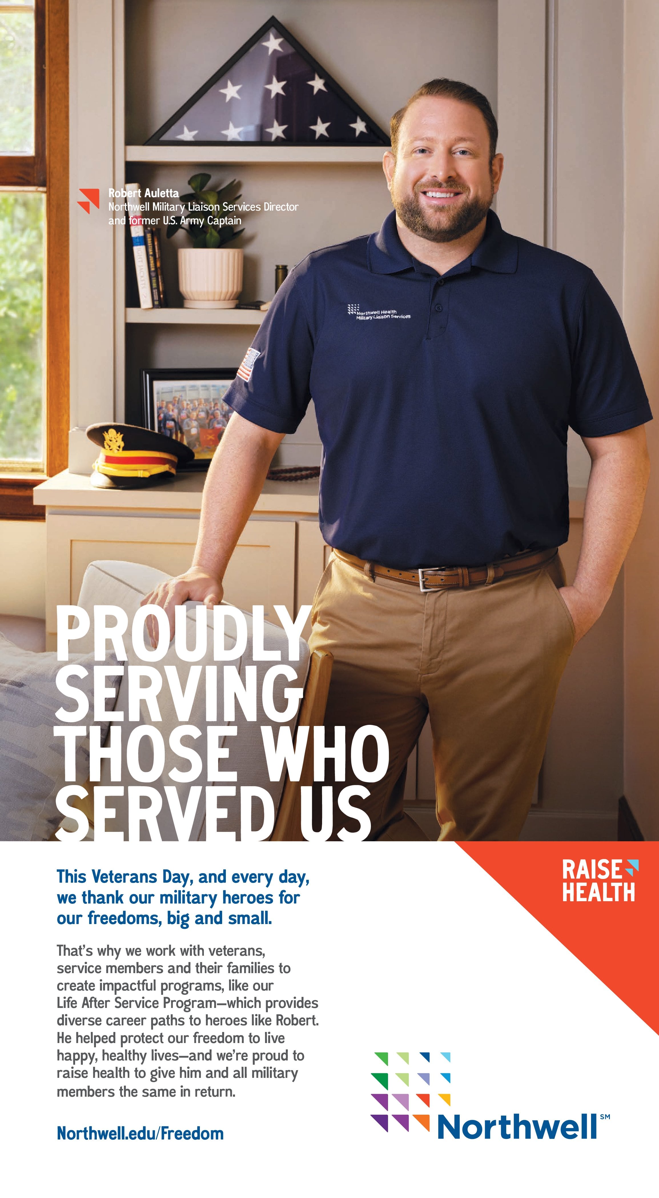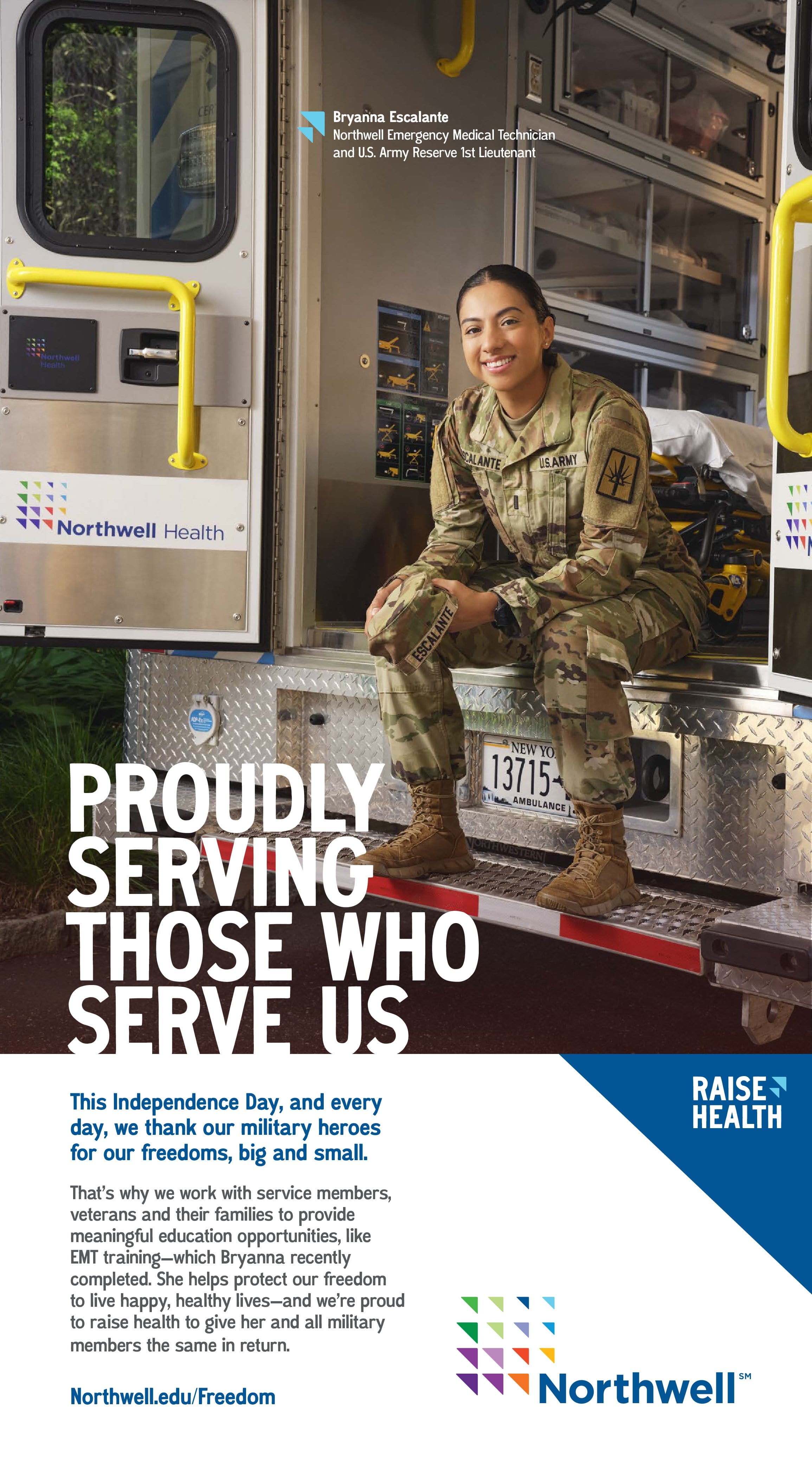 The print ads expand on this promise, featuring real-life service members who participated in one of the many military programs developed at Northwell. With each ad launching alongside the TV spot around different military holidays, the campaign brings awareness to the fact that Northwell “raises health” for every New Yorker, including those who serve or served.