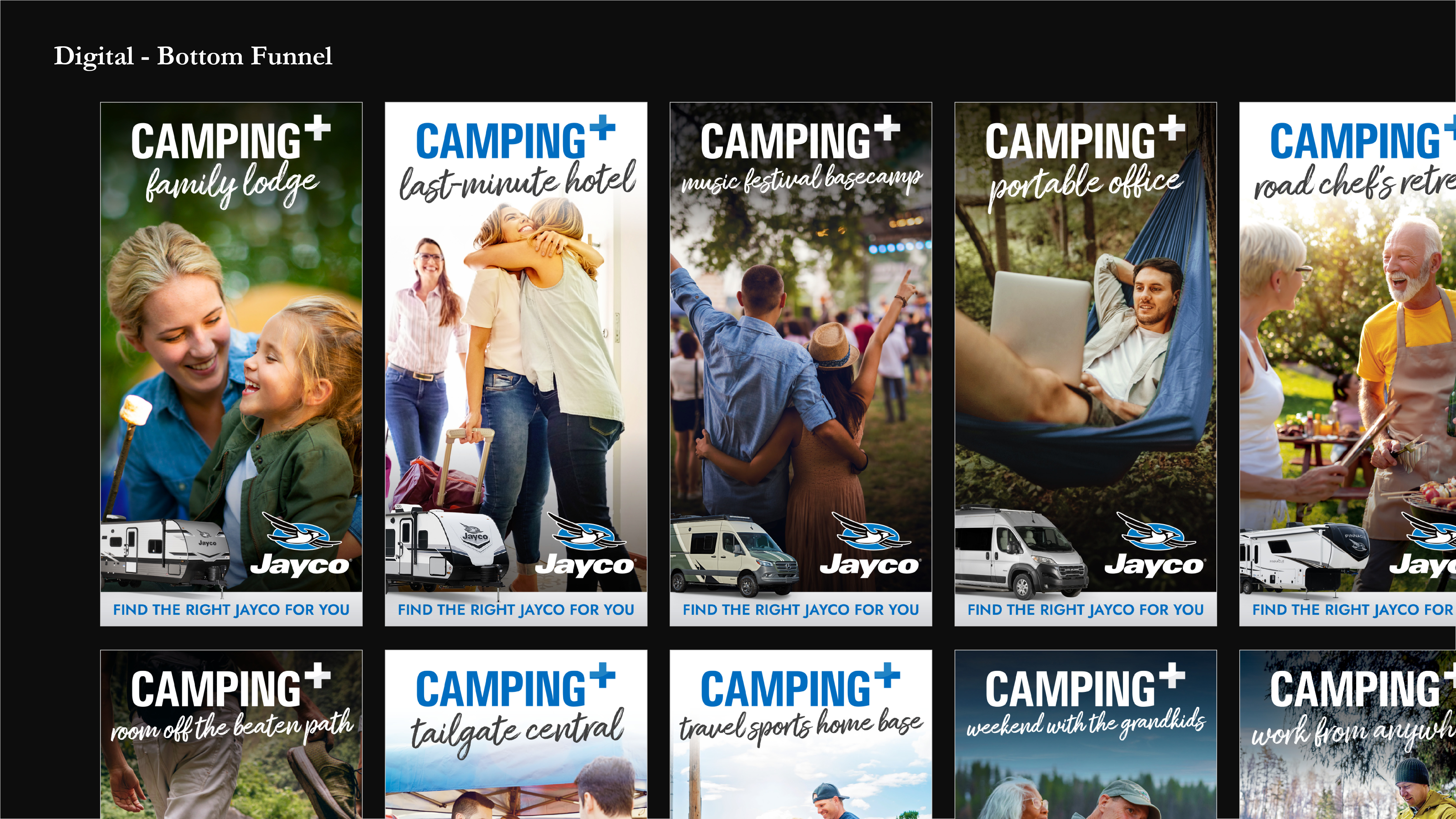 This multi-faceted approach helped position Jayco’s RVs as more than just vehicles for occasional use, but as valuable, flexible assets that provide year-round benefits, offering far more than just camping experiences. The creative and versatile execution of the "Camping +" concept allowed us to appeal to a broader audience while reinforcing Jayco's reputation for quality and innovation.update