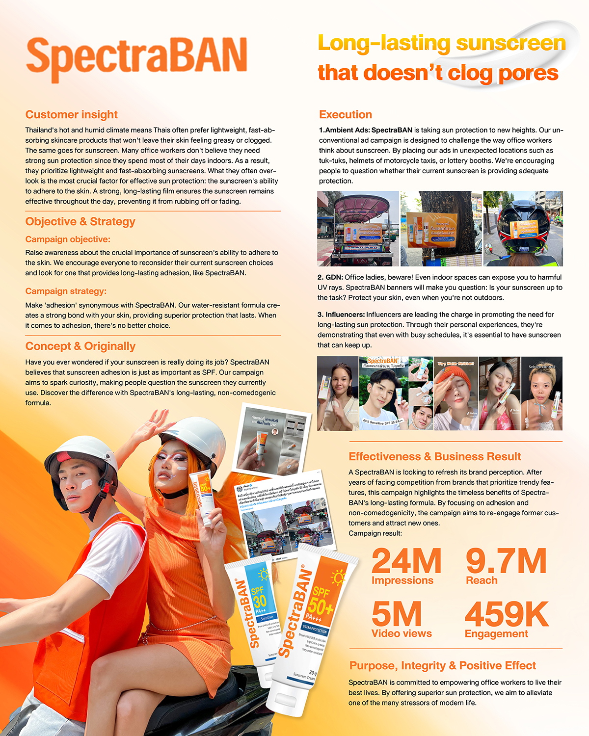 SpectraBAN is taking sun protection to new heights. Our unconventional ad campaign is designed to challenge the way office workers think about sunscreen. By placing our ads in unexpected locations such as tuk-tuks, helmets of motorcycle taxis, or lottery booths. We're encouraging people to question whether their current sunscreen is providing adequate protection.