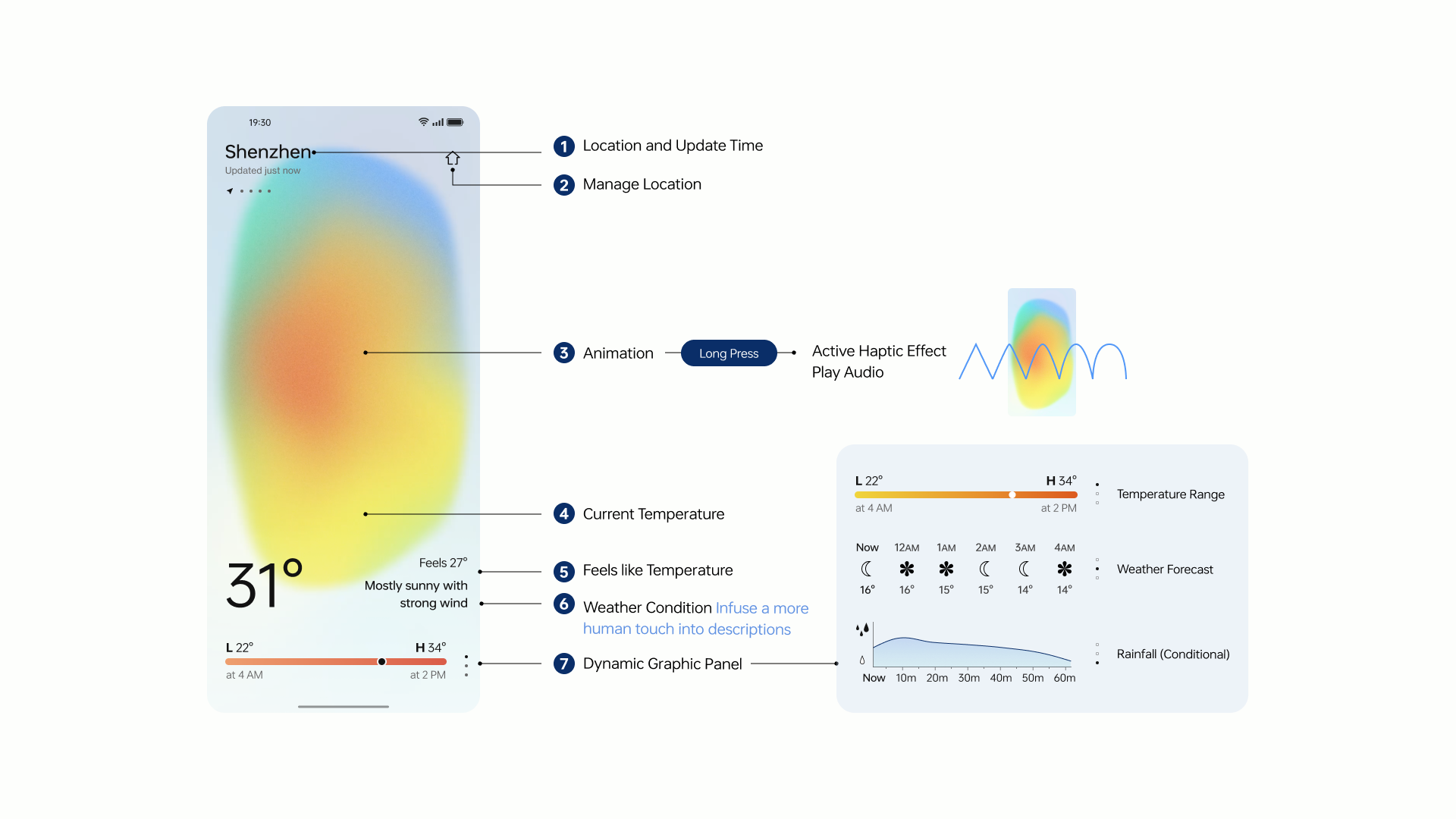 In OneLab's fourth exploratory project, we re-think the relationship between humans and nature in the age of digital technologies by digging into the domain of multisensory experience design. With the belief of FEEL > READ + INTERPRET, we built this inclusive mini weather app with light visuals and interactions that allow people to actually feel the current weather condition in selected cities with vision, sound, and haptic.