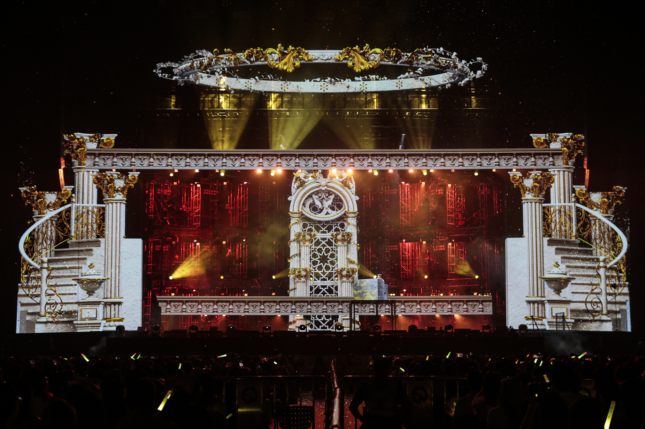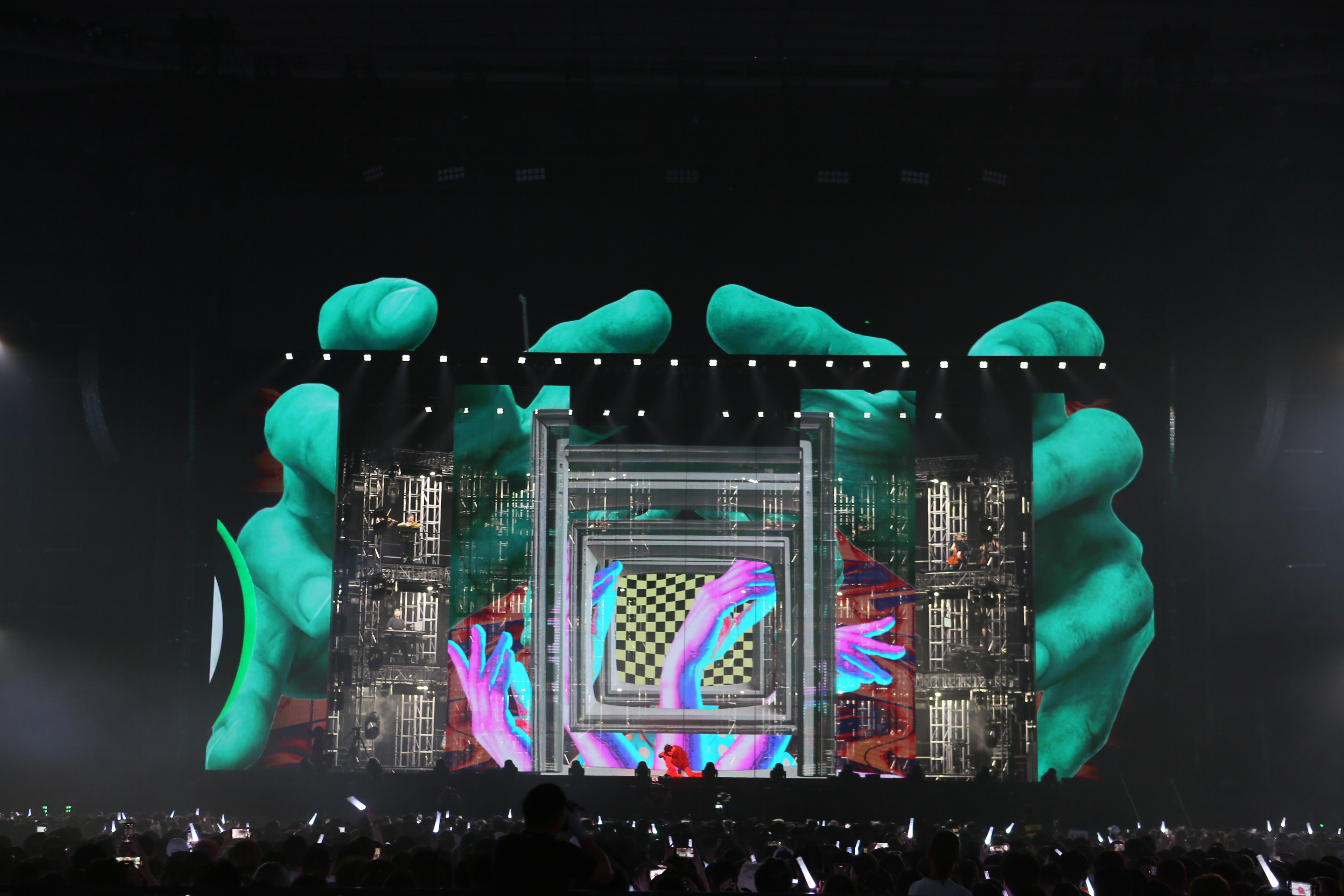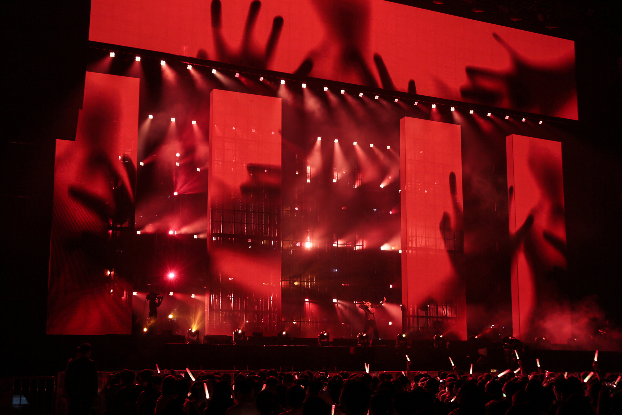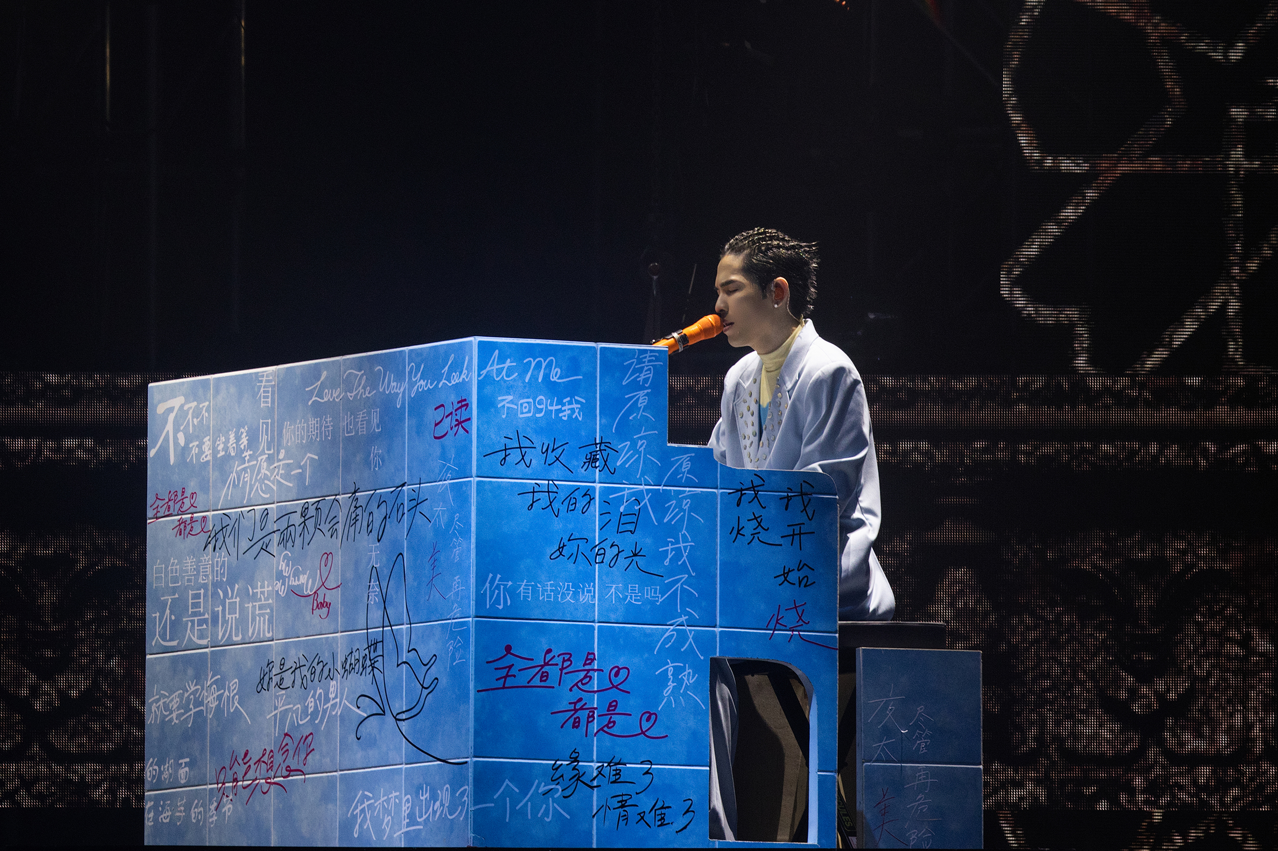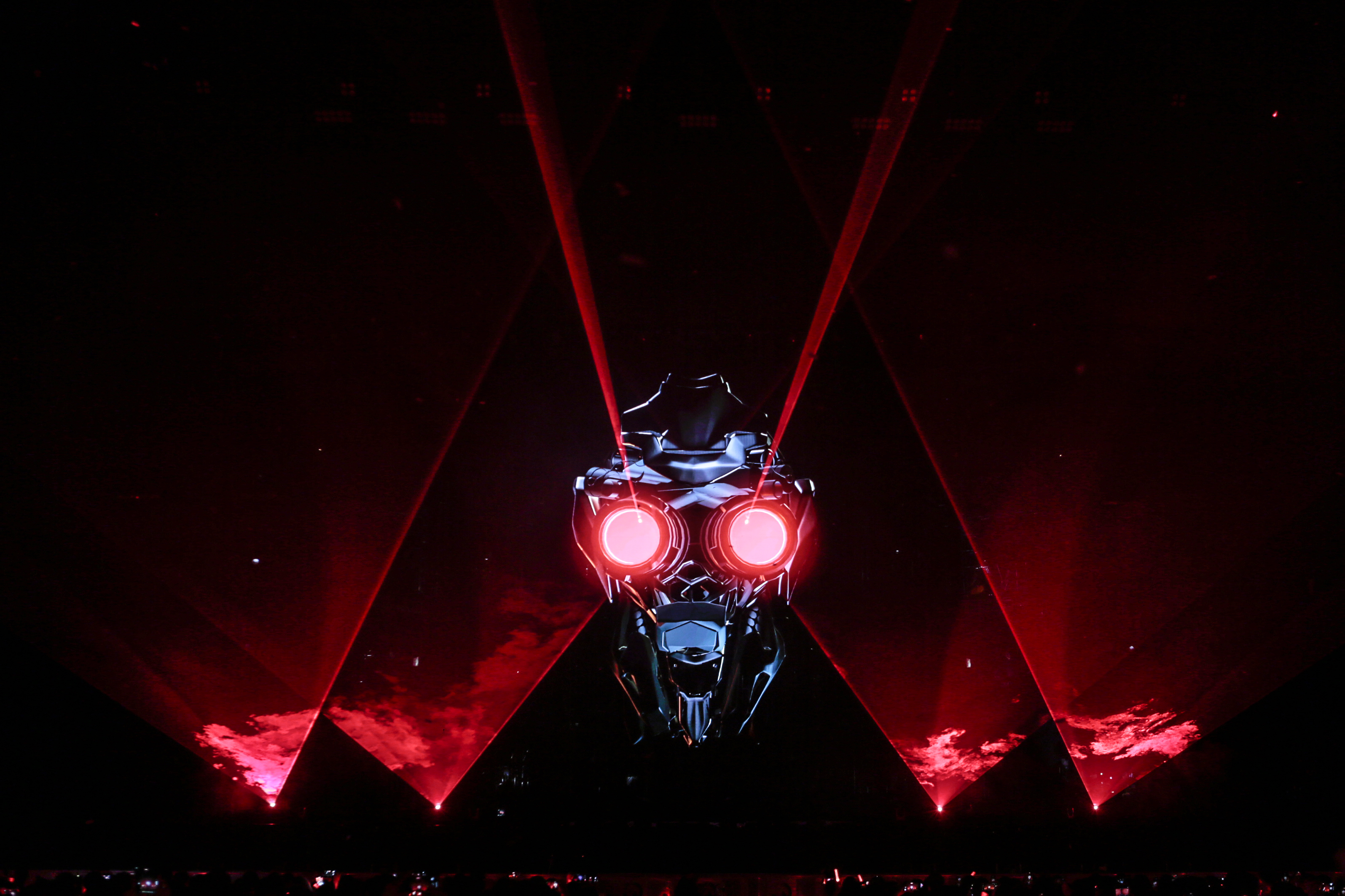 The performance makes full use of transparent LED screens, adding a magical, glasses-free 3D effect to the stage. In the opening song, “Prince’s New Dress”, a crown seemingly appears out of thin air as the LED screens move, creating a visually striking 3D effect. During the encore song “Blues”, a giant robotic head integrates with laser beams, projecting light from the robot’s eyes across the venue, immersing the audience in a surreal blend of reality and illusion.