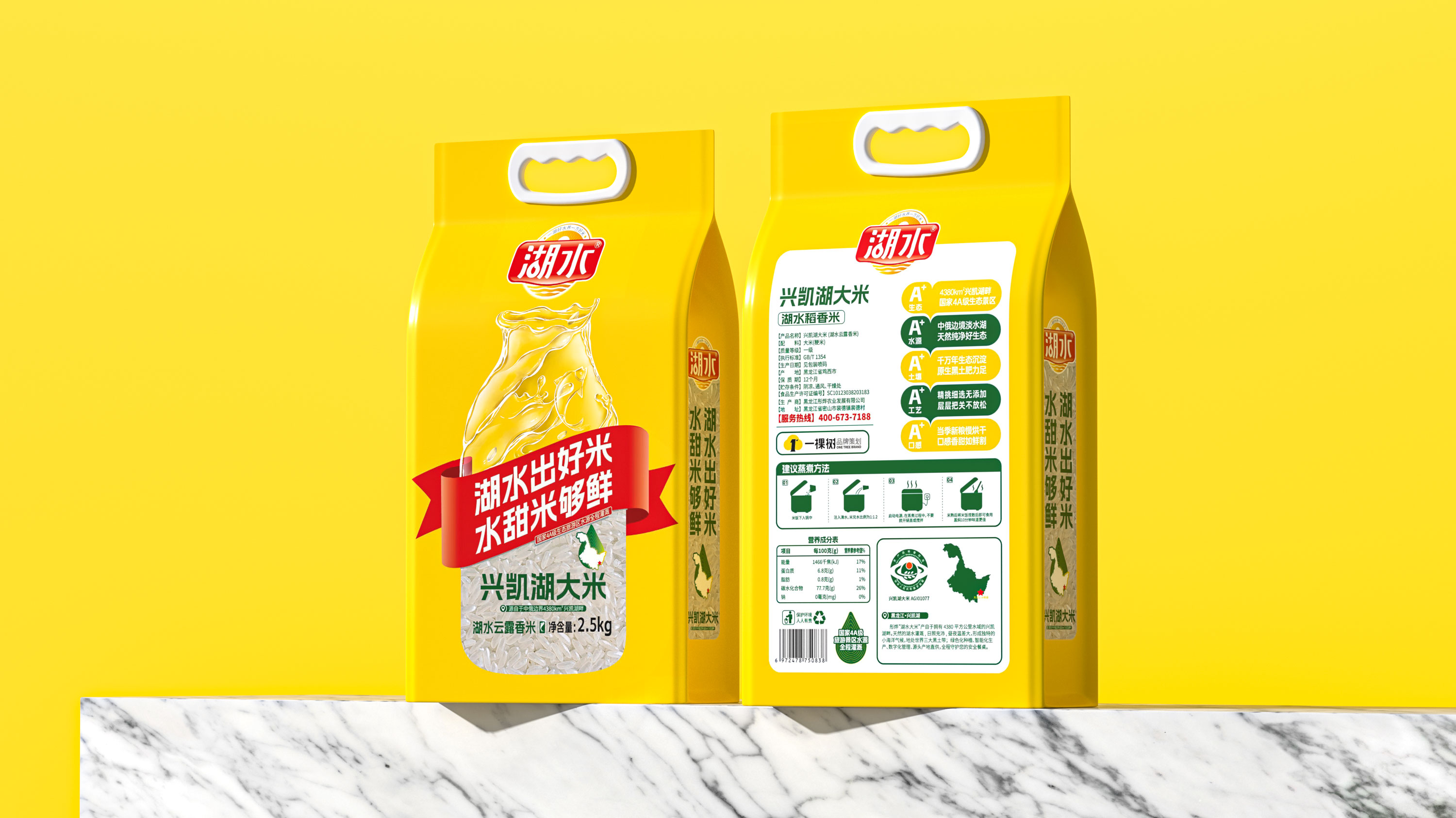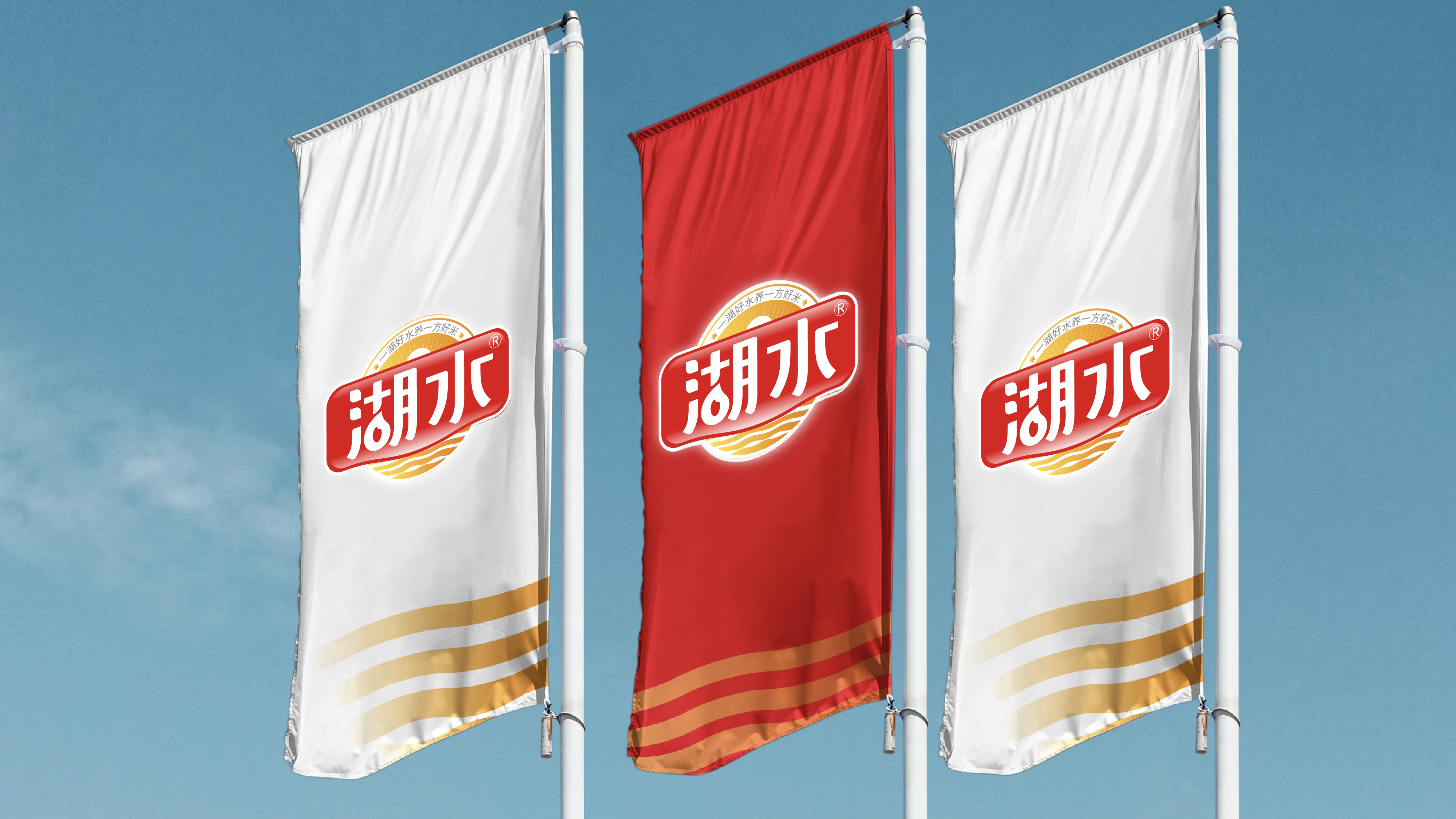 To highlight the concept of "irrigated by water from a nationally recognized 4A-level scenic area", HuShui has crafted a powerful slogan: Bountiful Waters, Golden Paddy. This phrase not only ties seamlessly with the brand name (HuShui, meaning "lake water" in English) but also embeds the connection between pristine water and premium rice into consumers' minds. The HuShui logo embraces vibrant warm tones like red, orange, and yellow, and further incorporates elements of ripples, the sun, and the brand name to reinforce HuSui's connection to nature. This approach also forges a highly recognizable visual identity, leaving a lasting impression on consumers.