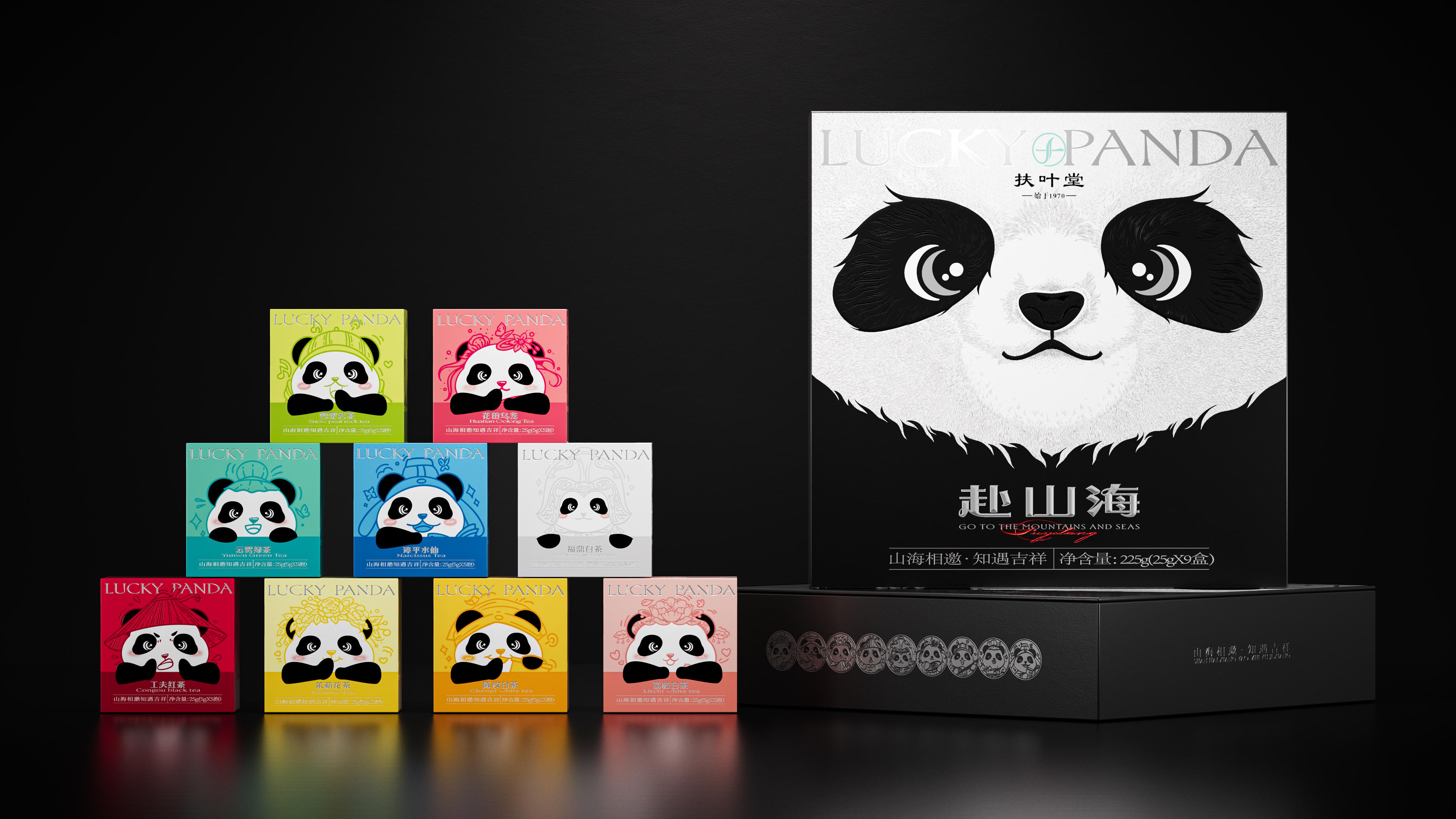 The “Journey to Mountains and Seas” tea packaging features a combination of a black-and-white panda outer box and nine colorful inner boxes, reflecting China’s rich natural and cultural heritage. The overall design revolves around the theme “Mountains and Seas Invite, Encounter Good Fortune,” inviting consumers to experience the grandeur and diverse flavors of the motherland while enjoying tea.