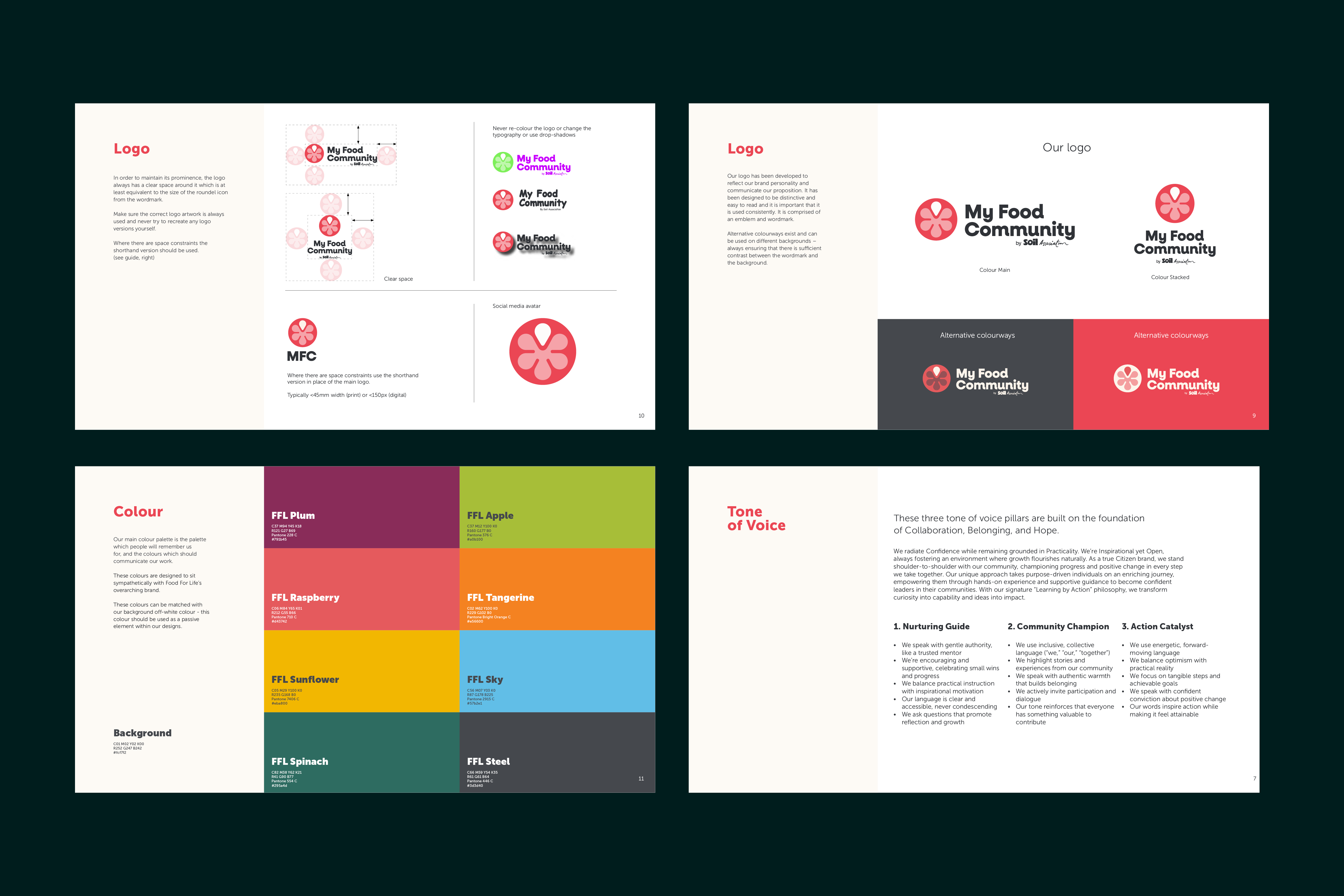 The resulting brand identity system successfully captures MFC’s dual nature as both a nurturing community network and a powerful force for systemic change. The memorable logo is full of symbolism and really connected with the participant's of the programme - enabling them to understand the story of the project and to feel connected and proud. The visual language draws inspiration from grassroots activism and community connectivity, while maintaining the professional polish needed to appeal to institutional partners and funders. The identity system is intentionally flexible, allowing it to adapt across various touchpoints while maintaining coherence – essential for an organization that operates at multiple levels of the food system.