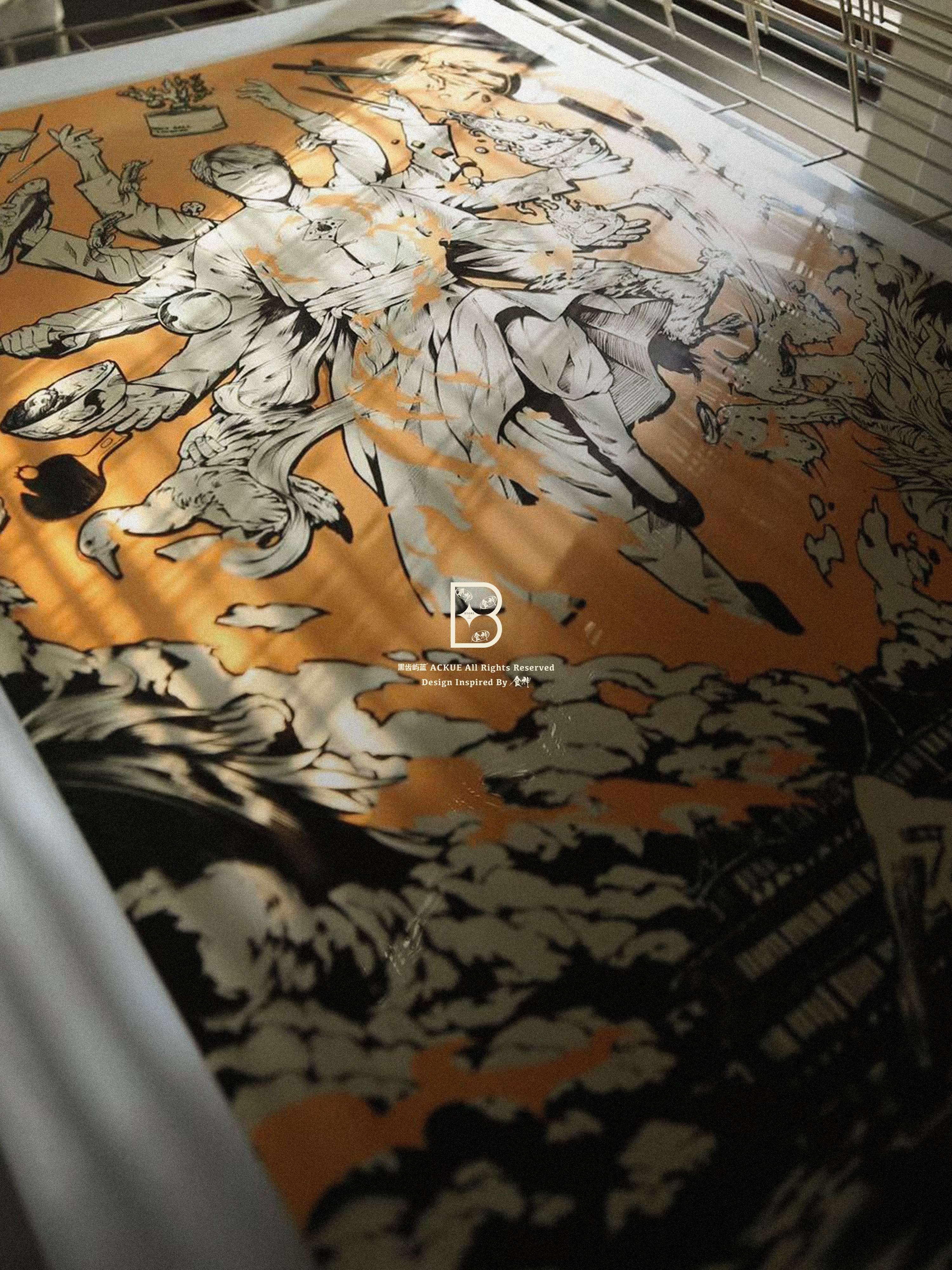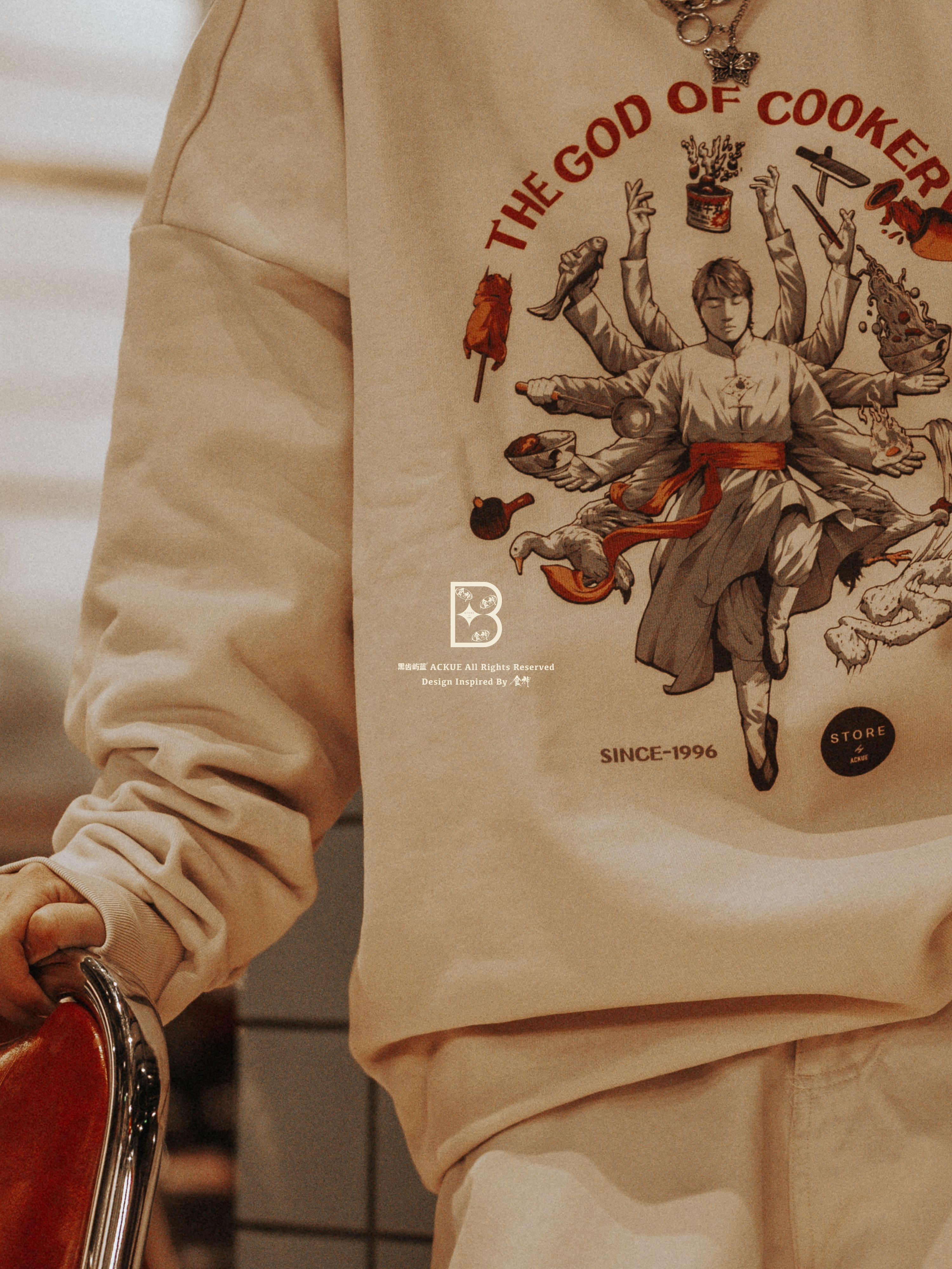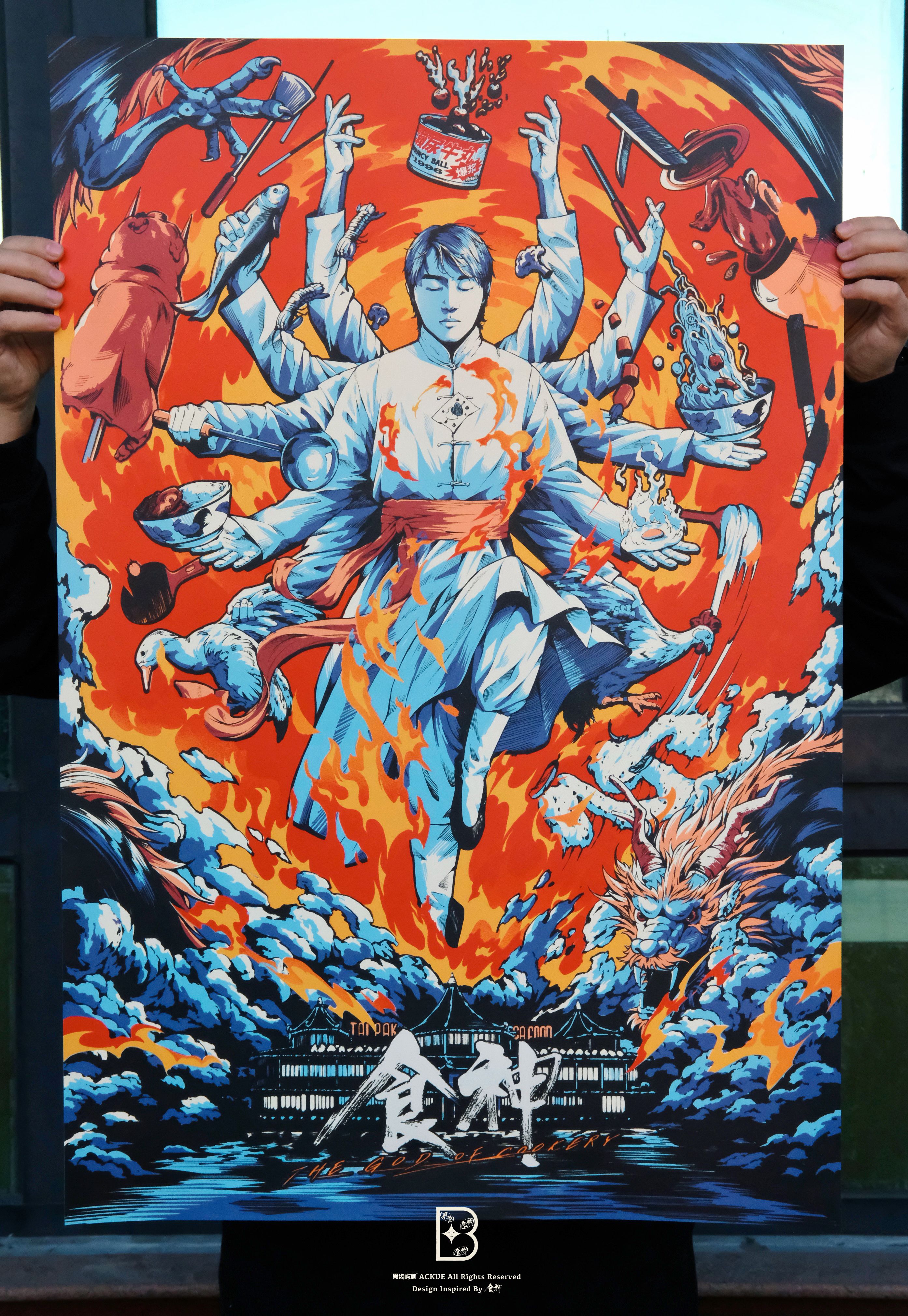 In celebration of the enduring influence and respect for the classic film "THE GOD OF COOKERY," ACK-UE has received official authorization from Stephen Chow to launch a series of limited-edition commemorative products, including screen prints, T-shirts and jumpers. This initiative commemorates the 28th anniversary of the film's initial release, as well as its upcoming re-release in Mainland China in 2024. Among the offerings, the "28th Anniversary Poster of 'THE GOD OF COOKERY'" stands out with a unique design inspired by the film's narrative. The design team has meticulously recreated iconic scenes and elements from the film through intricate hand-drawing and screen-printing techniques. This approach not only resonates deeply with the film's enthusiasts but also celebrates the richness of Chinese cinematic culture, thereby addressing a notable gap within the realm of film screen posters in China.