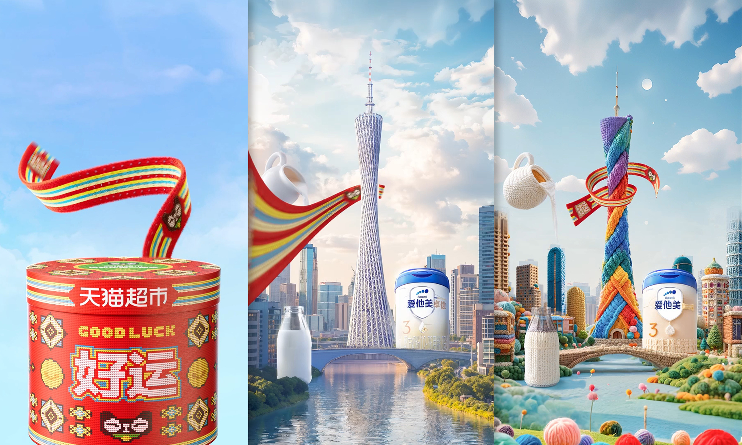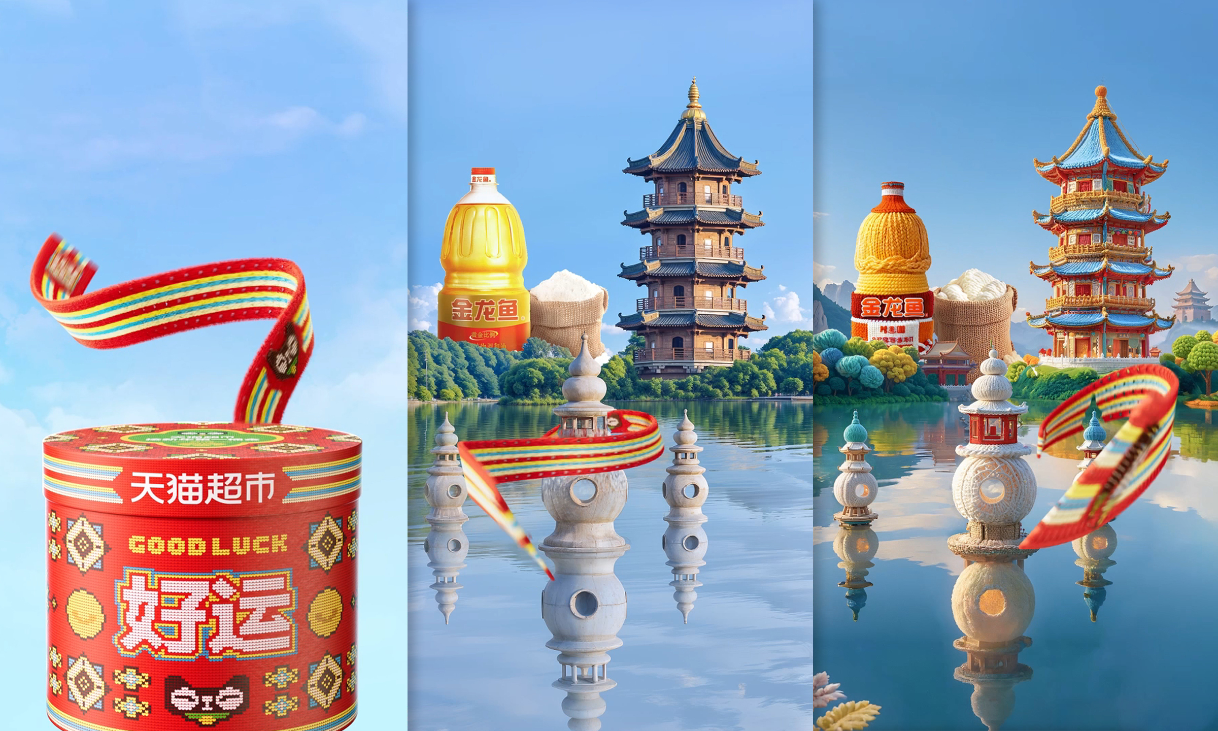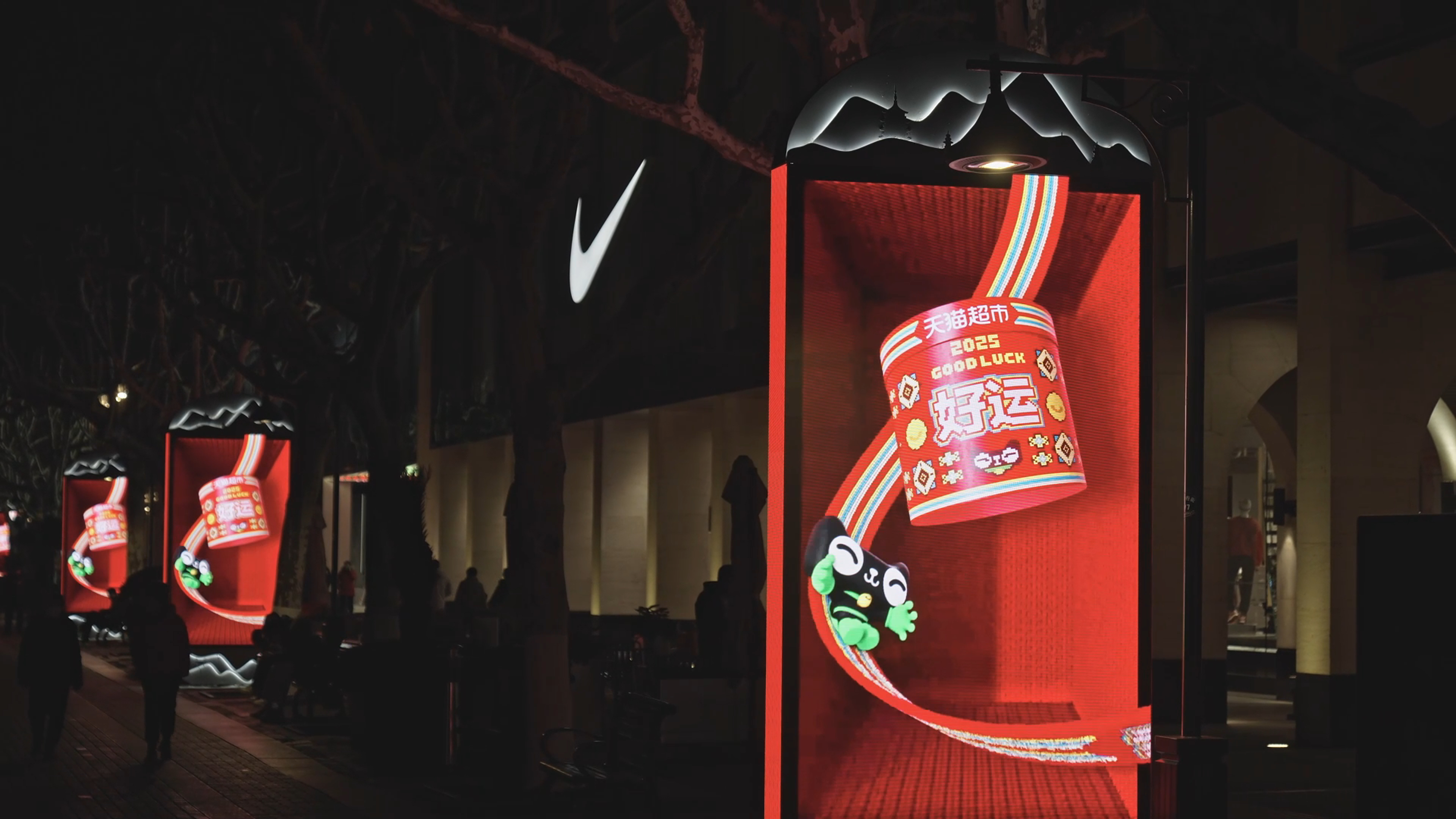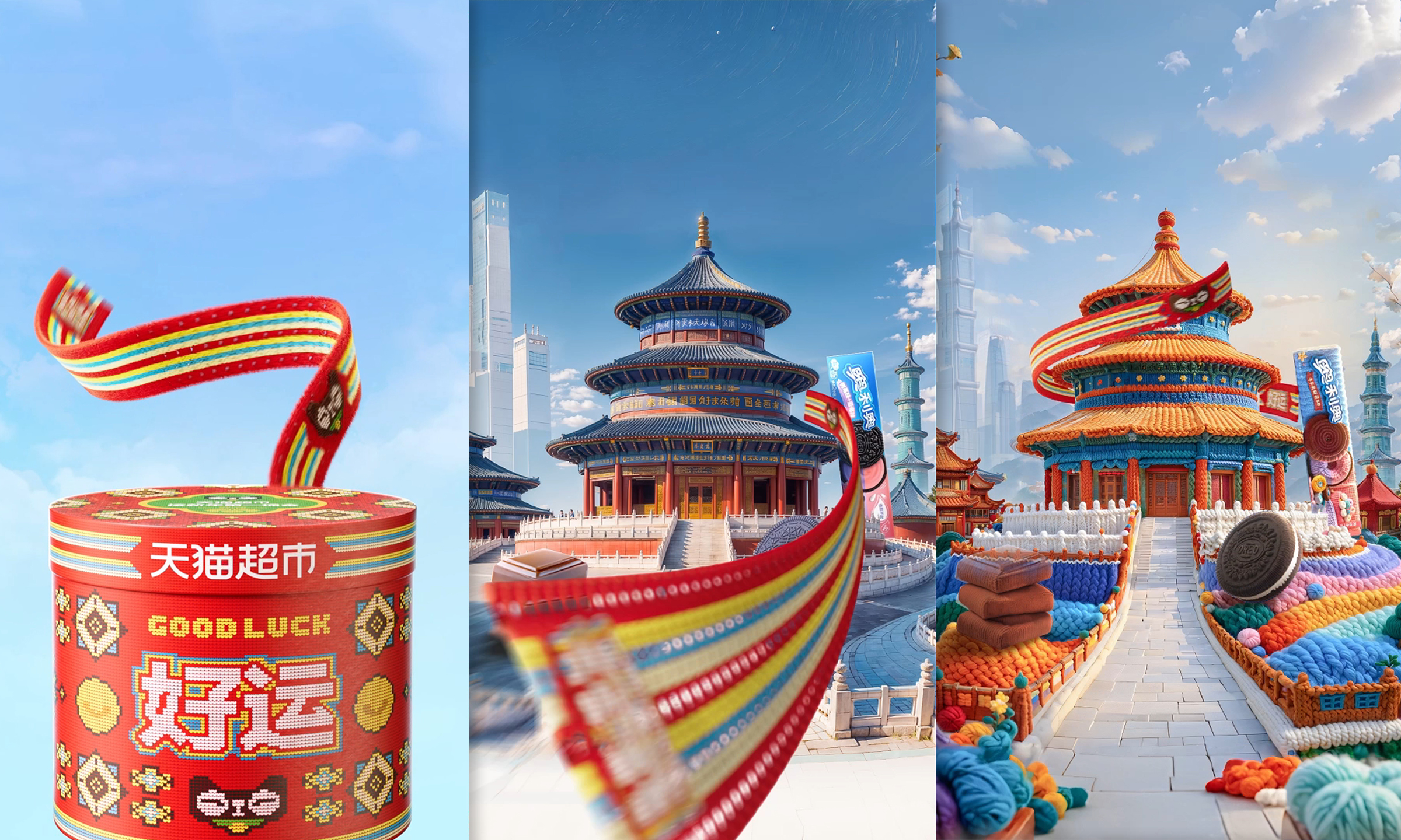 In Chinese culture, the New Year, also known as the Spring Festival, holds significant importance as a time for family reunions, fresh starts, and the welcoming of good fortune. During this festive season, individuals strengthen their emotional connections by exchanging blessings and gifts. In light of this cultural significance, Tmall Supermarket initiated the marketing campaign titled “Go to Tmall Supermarket, hold good luck in the New Year” to boost brand visibility during the Chinese New Year and to foster a deeper emotional and value-based relations with consumers. The initial phase of the campaign involves the creation of distinctive product packaging. The co-branding has been launched to produce the “New Year's Luck Bucket”, which features specialty products from prominent brands presented in innovative gift packaging. The bucket's design incorporates traditional red and gold colors as typical elements of the New Year, and plays on the phonetic similarities of “hugging bucket” and “hugging good luck” in Chinese, suggesting that good fortune will be embraced in the New Year. The knitted wool texture of the package conveys warmth and a sense of home, aligning with the festive spirit of winter and family gatherings. Furthermore, the Good Luck Bucket is crafted to be a reusable and versatile container, allowing consumers to repurpose it as home decoration or for storage, rather than limiting it to a single-use packaging.Tmall Supermarket leveraged prominent domestic social media platforms, including Weibo and Xiaohongshu, to amplify the event's reach through targeted topic marketing and content promotion. Through AI-generated technology, Tmall Supermarket placed glassless 3D short films on large screens in major urban centers nationwide, enhancing brand visibility and fostering a sense of geographical connection through innovative visual effects and iconic landmarks. The campaign also featured a series of promotional videos tailored for media platform distribution. These videos portray characters from various age groups, children, youth, and seniors, navigating typical life situations during the Chinese New Year. In these narratives, the characters unexpectedly receive a bucket of good fortune, leading to a series of uplifting and heartwarming tales. This storyline forges an emotional bond with viewers across diverse ages and backgrounds.