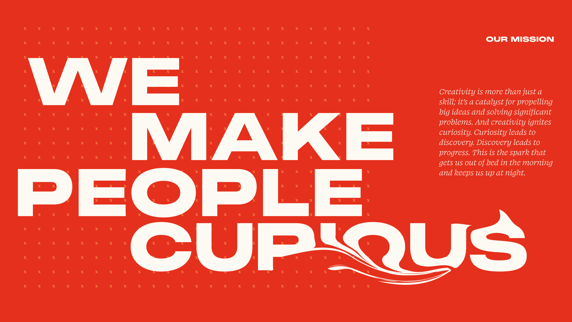 Visually, our work is as vibrant and dynamic as our ideas. Our designs thrive on color, texture, and contrast, delivering creative that’s unapologetically bold and thoughtfully balanced. We embrace curiosity as the driving force behind everything we create, believing that curiosity leads to discovery, and discovery leads to progress.