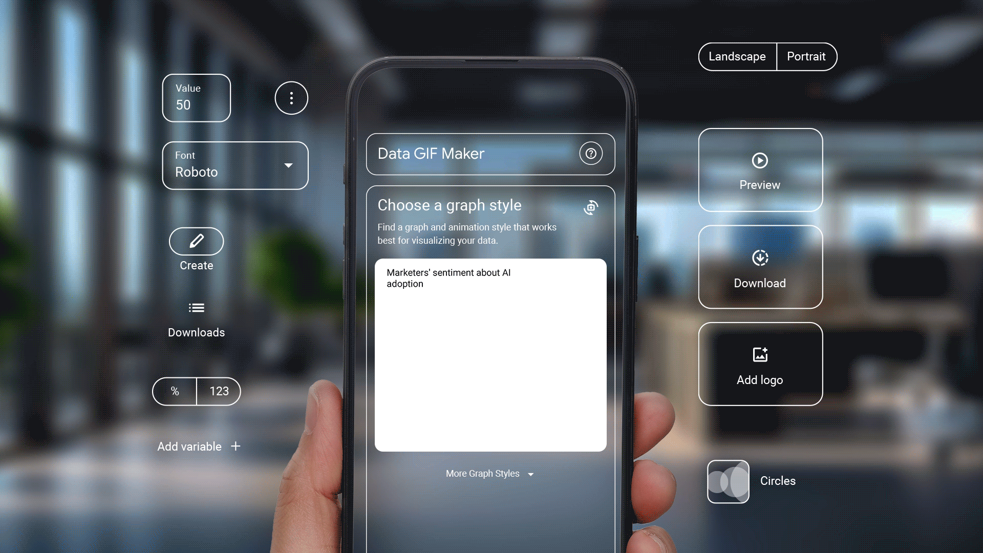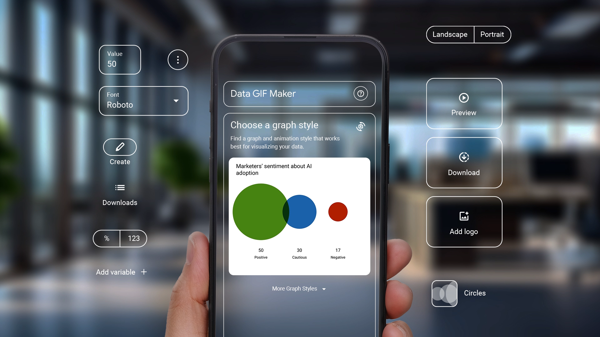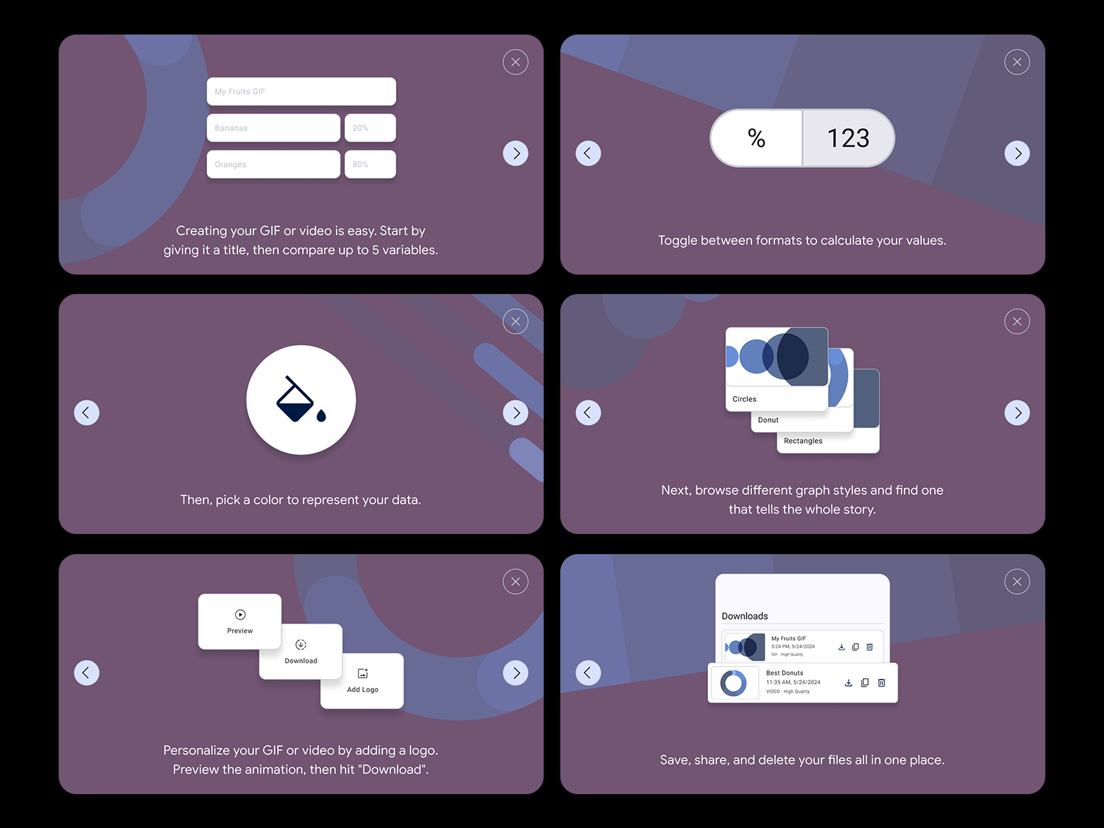 After much research and experimentation, we created Data GIF Maker – a user-friendly, responsive, and accessible web experience for quickly creating customizable animated data visualizations from a series of flexible templates.