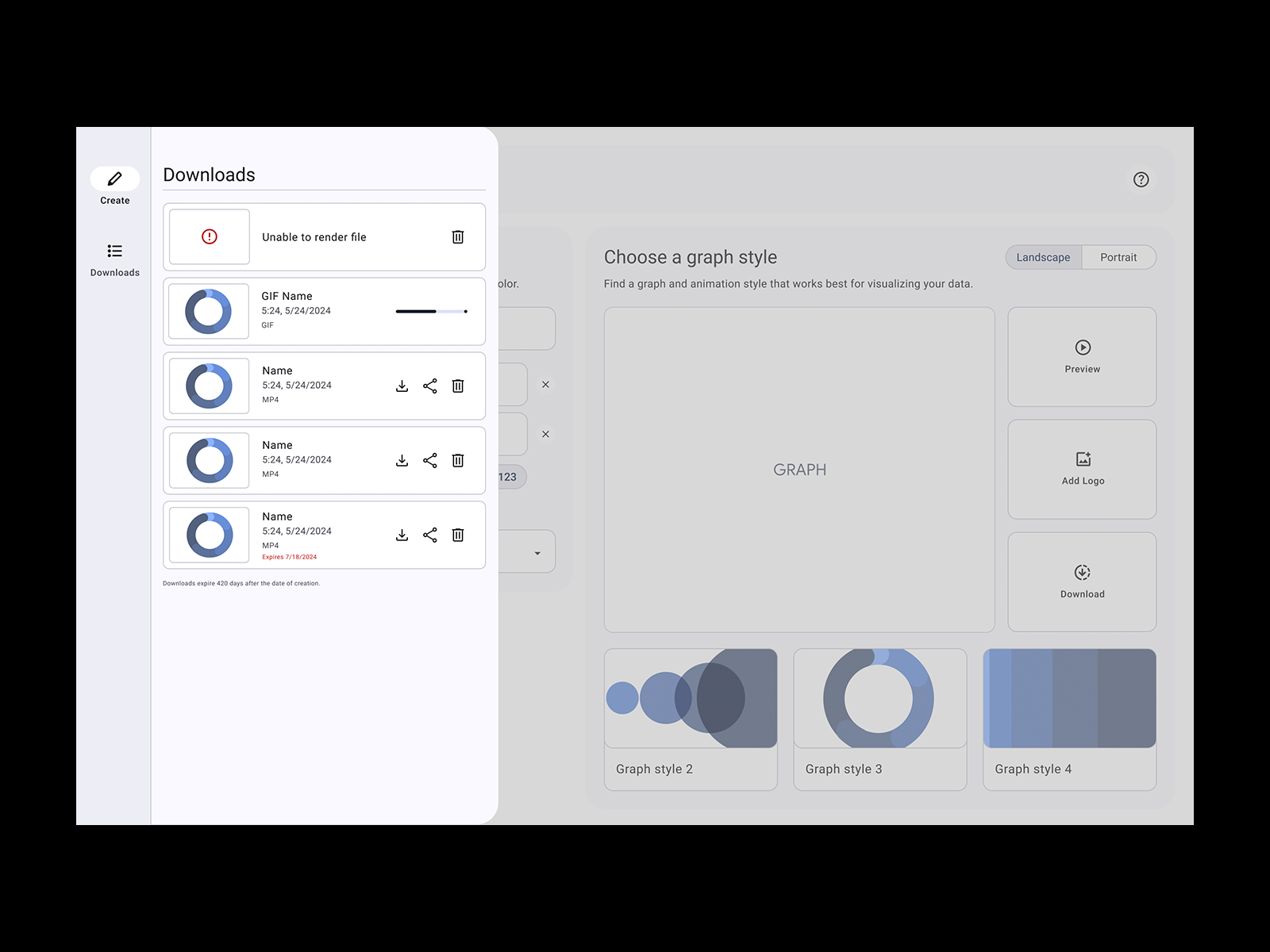 Using Google’s Material 3 design system, we landed on a modular dashboard approach that allowed users to preview animations live while inputting variables, selecting themes, and adjusting colors to best display their data.