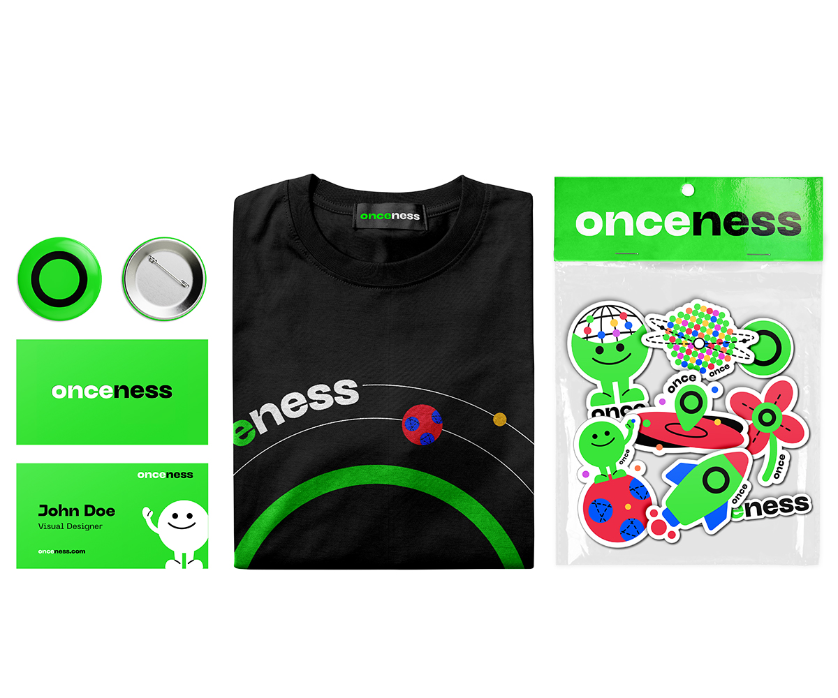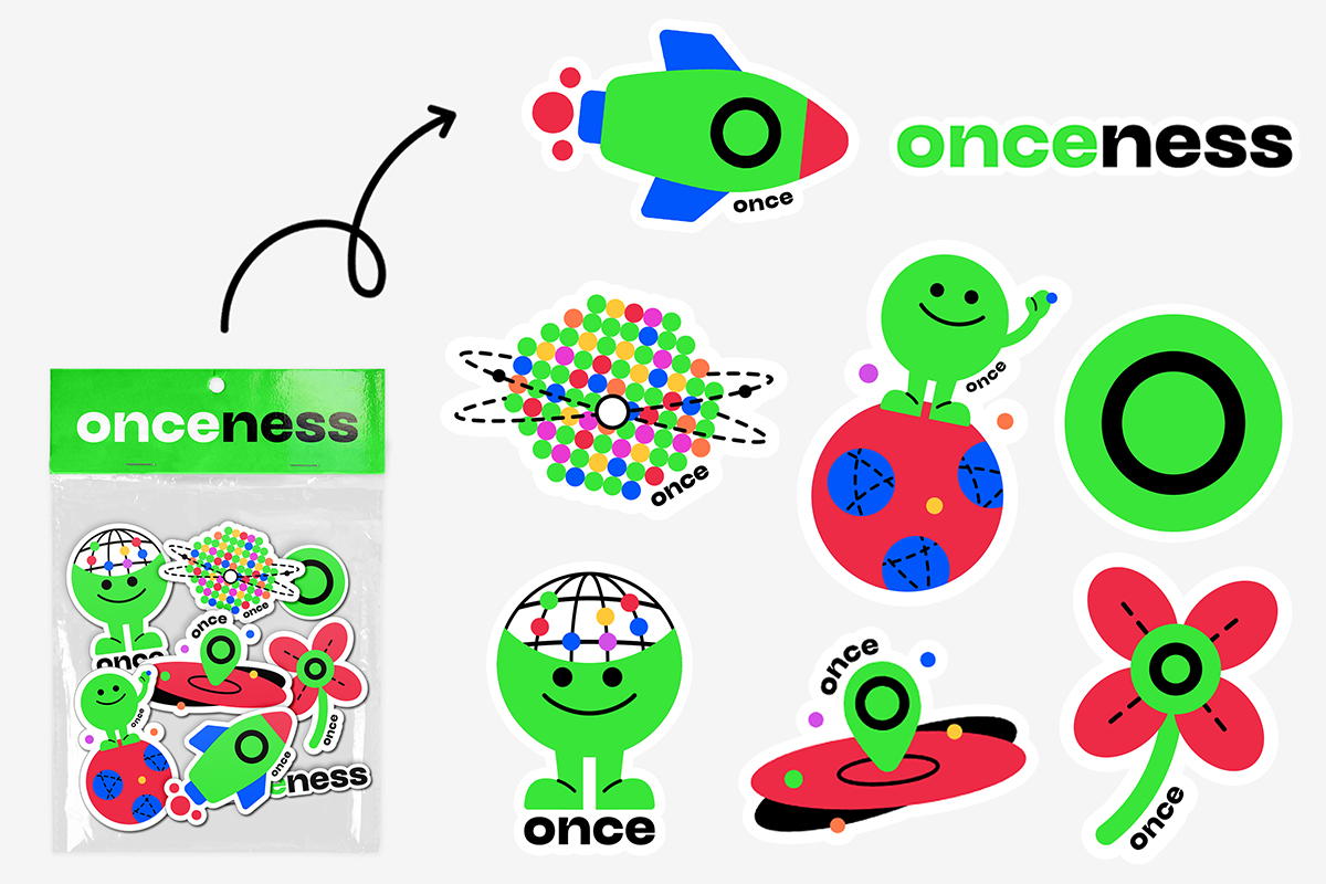 To develop a brand identity for Onceness, we introduced an approachable character that embodies the company's values of creativity, playfulness, and futurism. This character helps bridge the gap for clients unfamiliar with advanced concepts like XR and 3D volumography, making the technology feel accessible and engaging. The brand identity also incorporates vibrant colors and dynamic shapes inspired by volumetric forms, emphasizing the company's commitment to innovation and its vision for an interconnected, boundaryless future.
