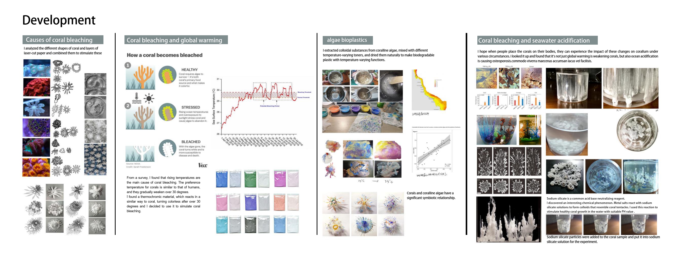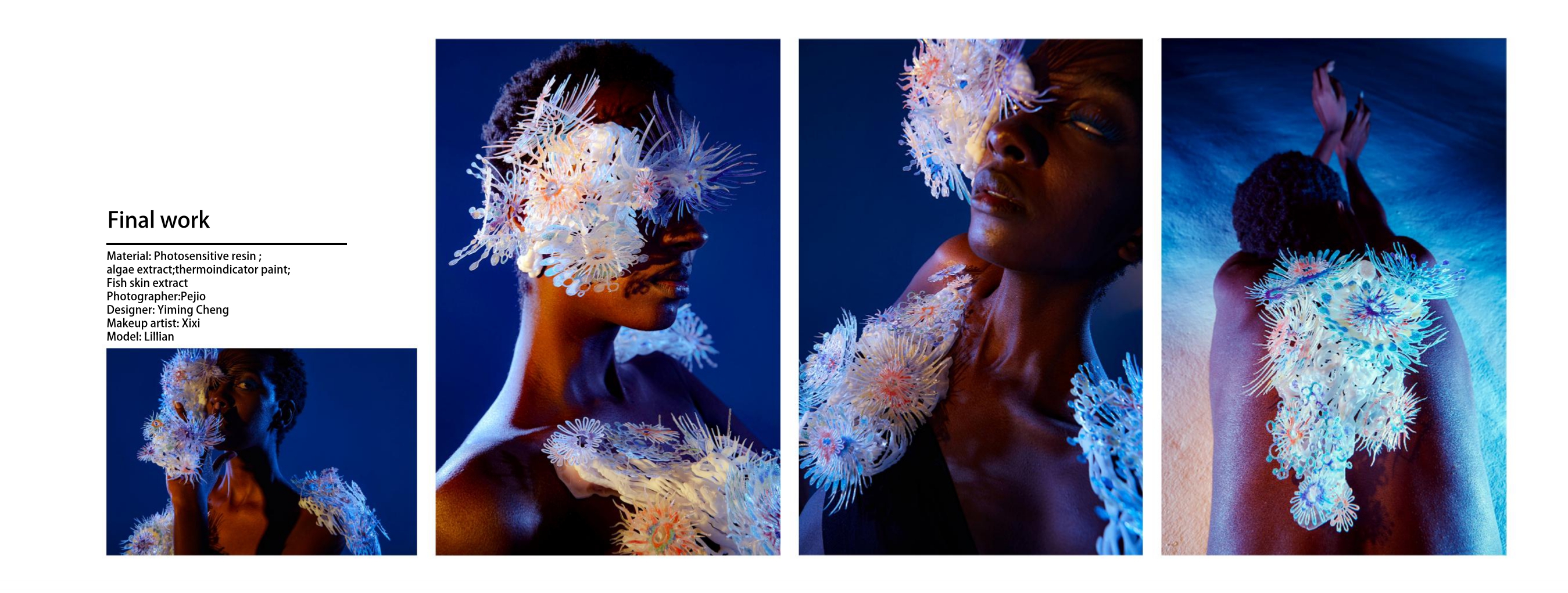 This project uses thermochromic materials to create wearable coral-inspired accessories that change color with heat, raising awareness about coral bleaching and environmental protection.