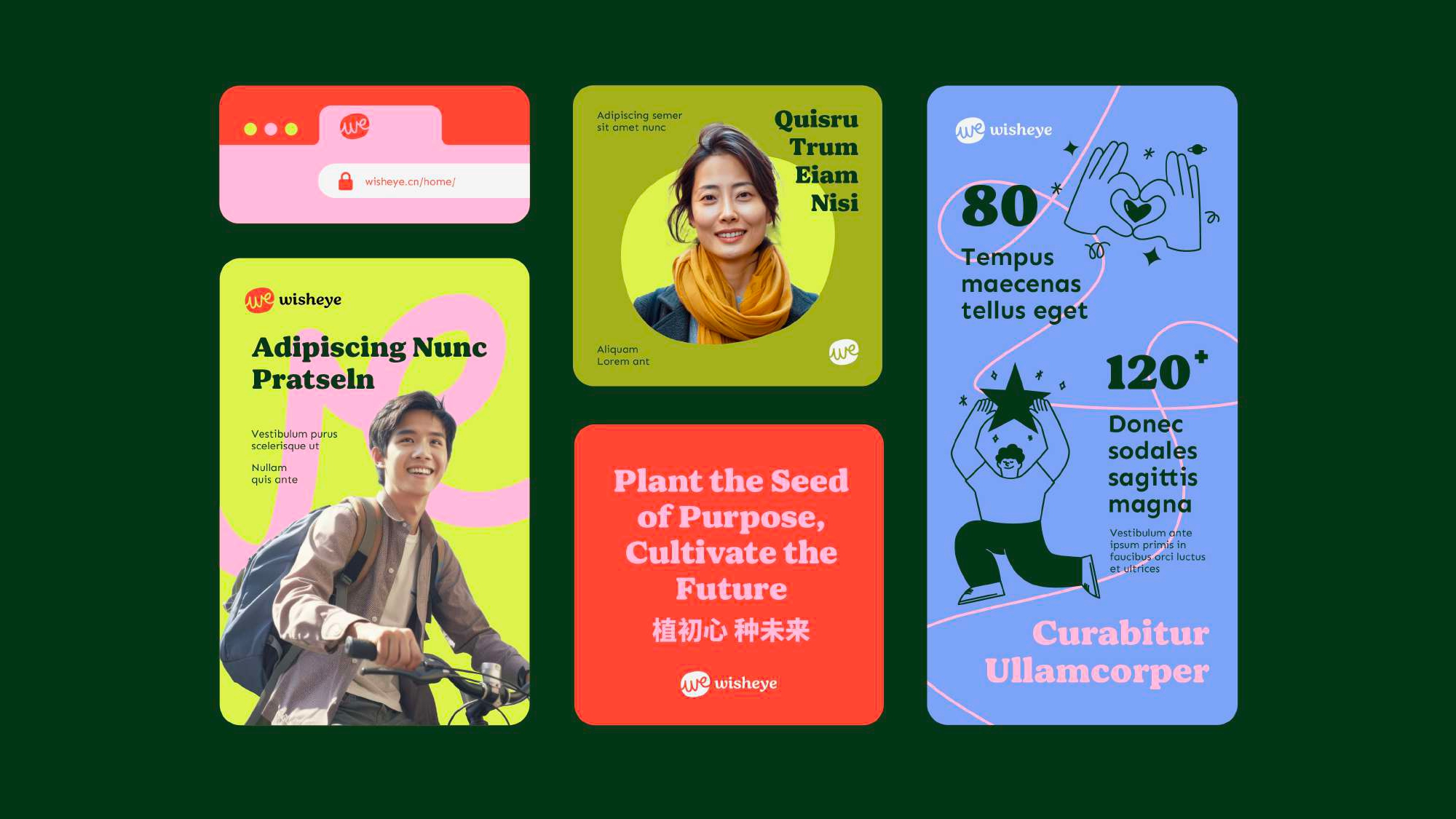 In response to the organization’s growing influence and need for broader visibility, Taasdesign developed a complete brand transformation, including a fresh visual identity to elevate Wisheye’s presence and extend its reach. At the heart of the new logo lies the theme of unity, symbolized by the "we" symbol, representing the collective strength of society’s efforts working together for a common cause. This design emphasizes the shift from individual to collective action, which is central to Wisheye’s core values.