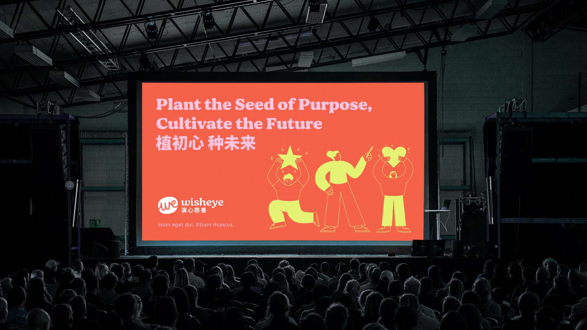 The logo's hand-drawn, fluid lines evoke warmth, authenticity, and human connection, reflecting the deep care and compassion that define Wisheye’s approach to philanthropy. In line with this, a vibrant and life-affirming color palette—featuring warm orange, soft pink, and hopeful green—imbues the brand with optimism, energy, and a sense of nurturing support. Complementing this are playful, whimsical illustrations that bring the brand to life in a fun and engaging way, reinforcing the organization’s inclusive, approachable nature. These illustrations help Wisheye connect with a wider audience, particularly younger generations, encouraging them to actively participate in the mission to build a kinder, more just world for all.