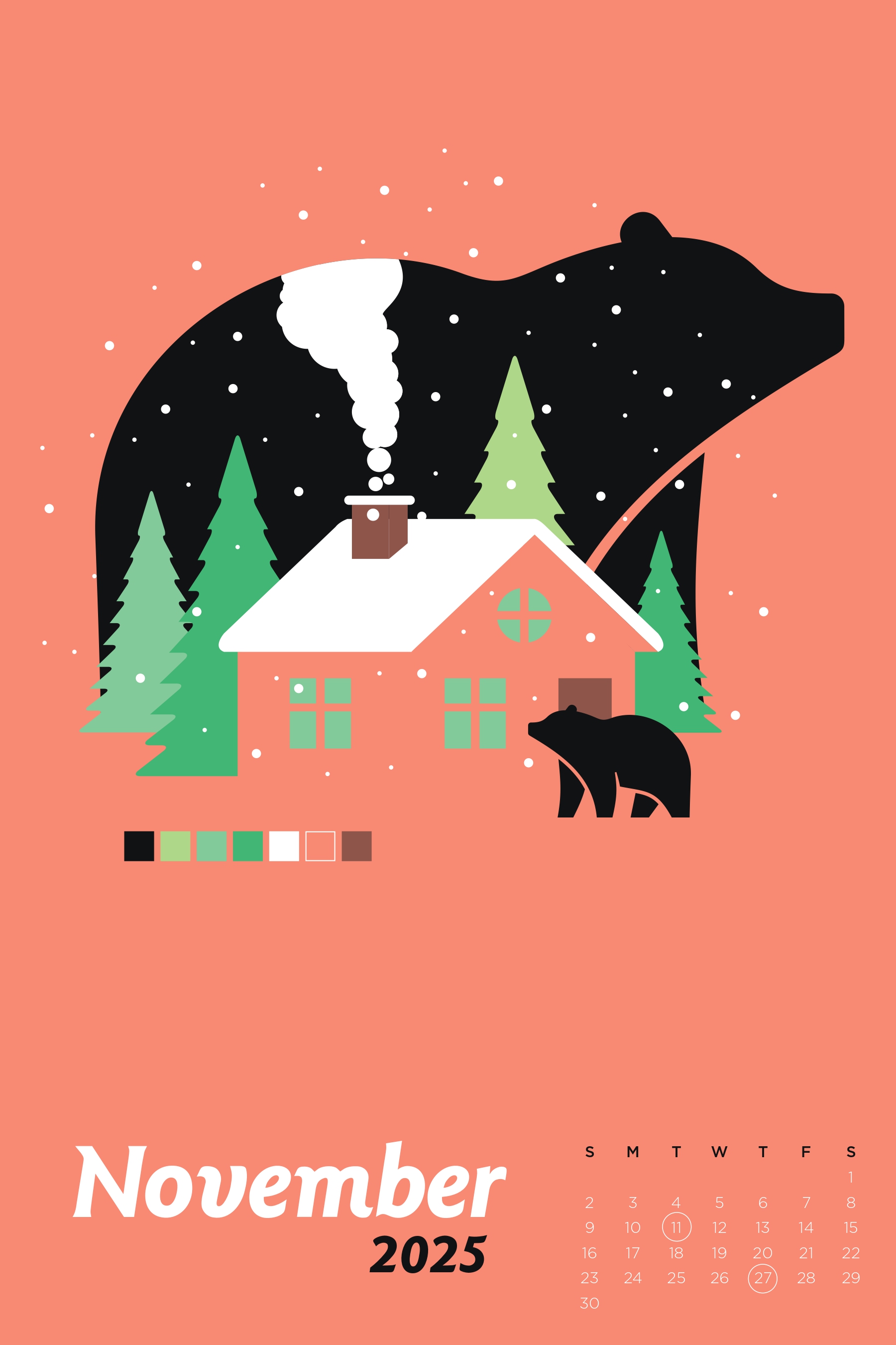 We are thrilled to present our custom-designed calendar as a special holiday gift for our valued clients. This year, we embraced the challenge of creating unique color combinations, featuring seven distinct hues each month. We poured our hearts into every detail, ensuring consistent line weights, cohesive typography, a balance between curves and sharp edges, and a dynamic sense of movement throughout the design.