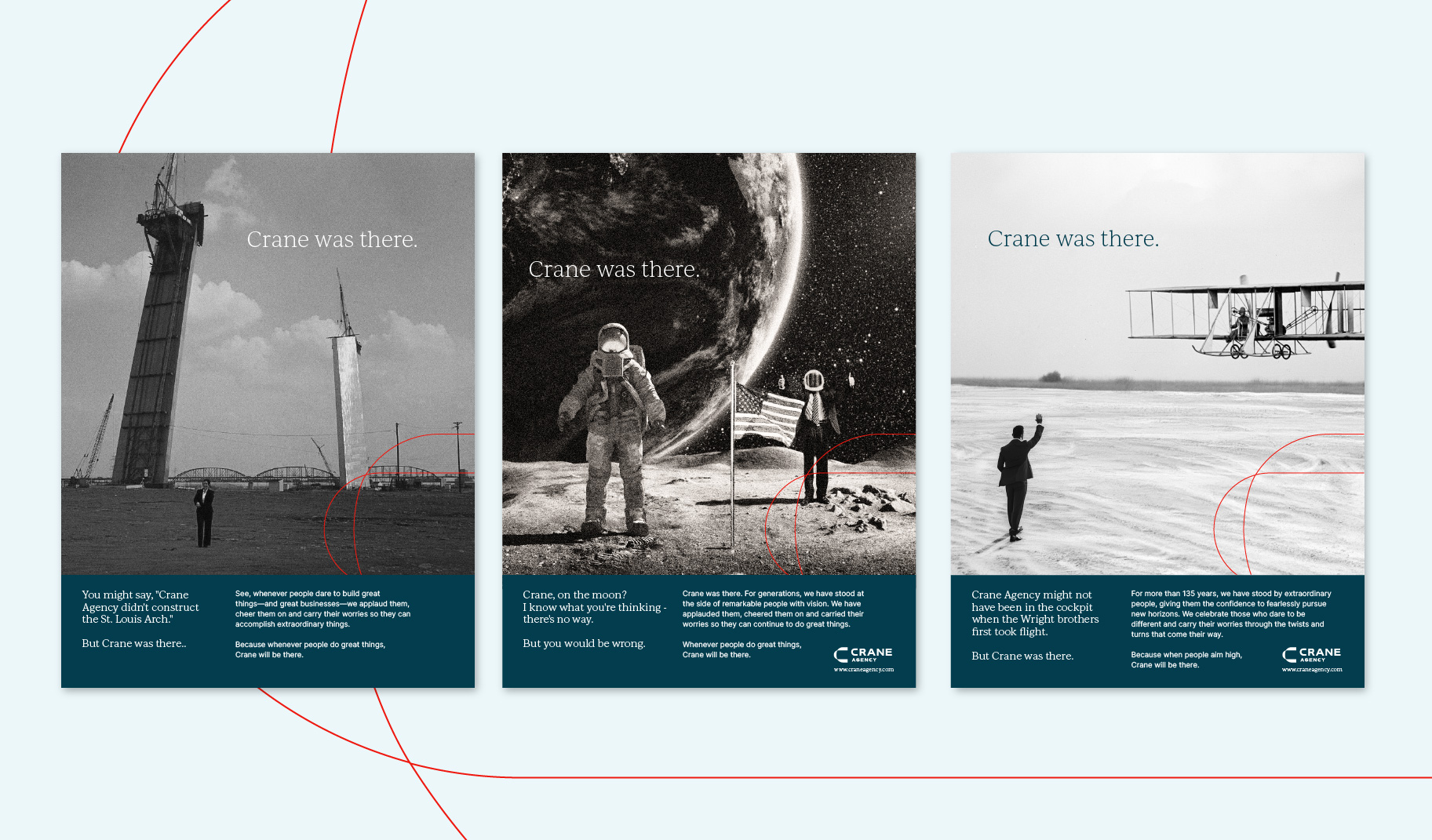 This approach positioned Crane as more than a company that provides insurance—it is a brand synonymous with stability and dependability. Weaving actual events into our storytelling made Crane Agency's legacy feel immediate, relevant and deeply human. Through a mix of digital, print and social media ads, the campaign reached new audiences while strengthening relationships with long-time clients.