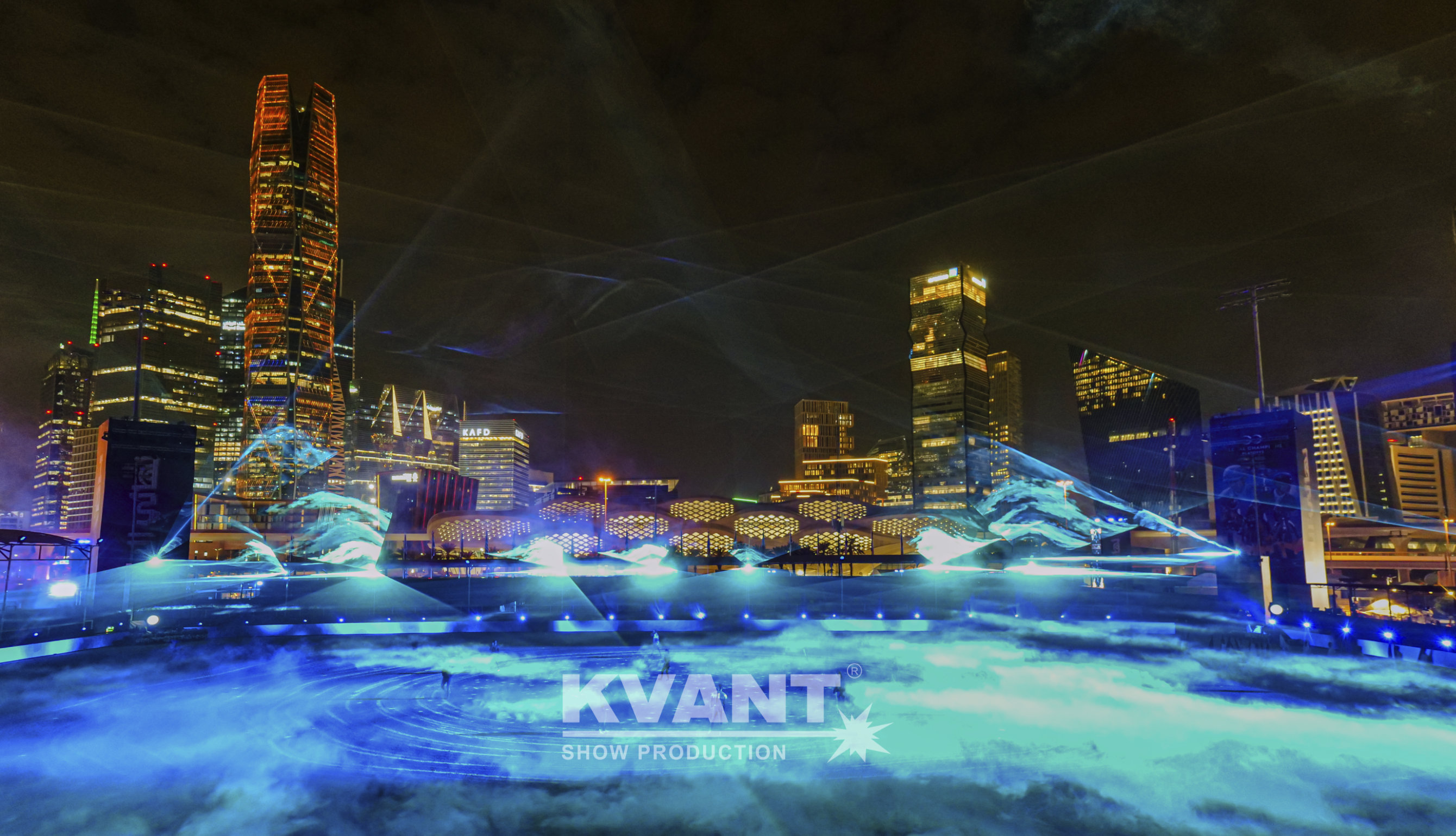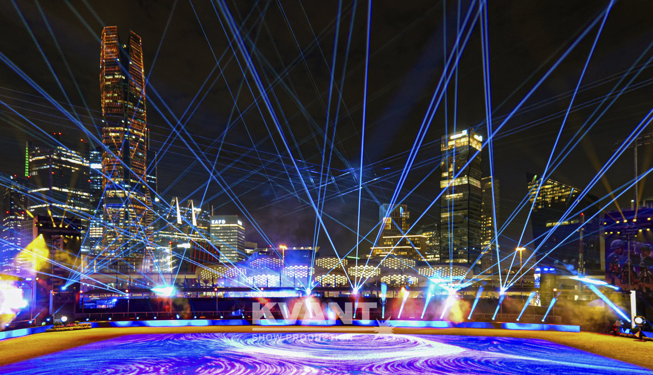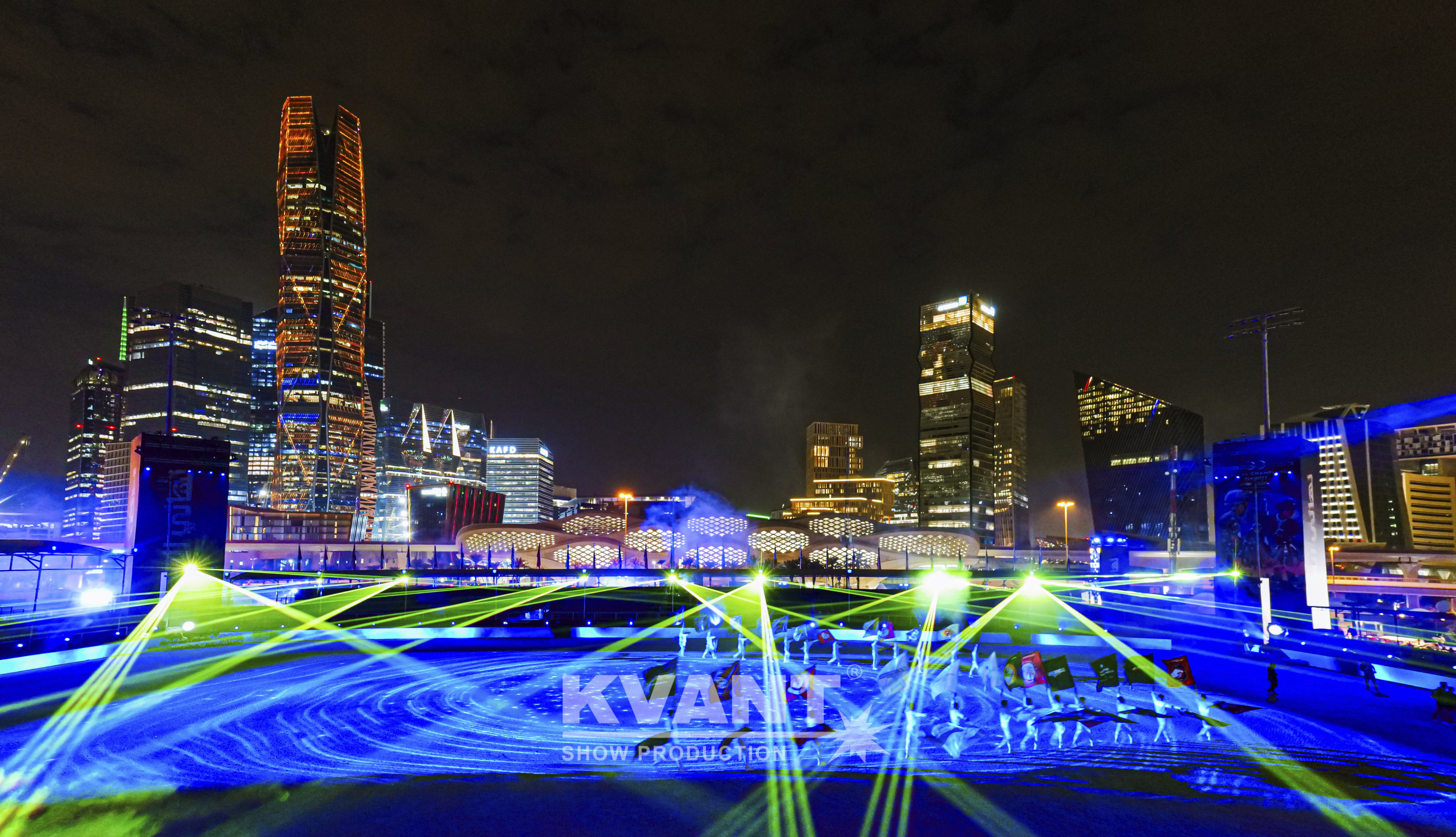 The event was held in collaboration with our partner Tait, who provided video projection, effect lights, and dancers. Our company served as a subcontractor for the laser systems.