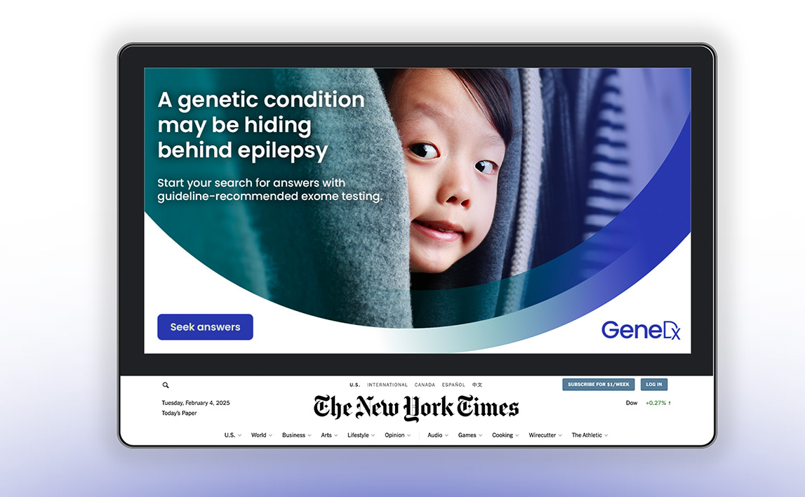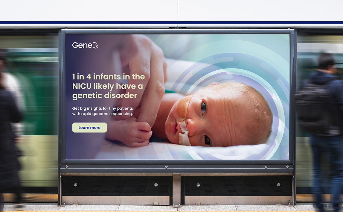 We then developed an umbrella creative concept explaining the value of using genomic testing to fast-track a deep understanding of patients with genetic conditions, following it up with a campaign targeting doctors in the NICU treating newborns, and finally a campaign specifically targeting doctors treating young patients with epilepsy.