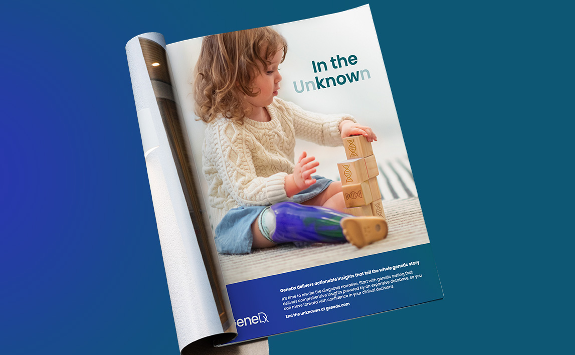 Not all doctors understand how helpful genetic testing can be, and those who aren’t genetic experts may not feel comfortable recommending genetic tests. To help bring awareness to the value of starting a diagnostic journey with comprehensive genetic testing, GeneDx engaged Audacity Health for support in developing strategic messaging, a brand visual expression, and multiple creative concepts.
