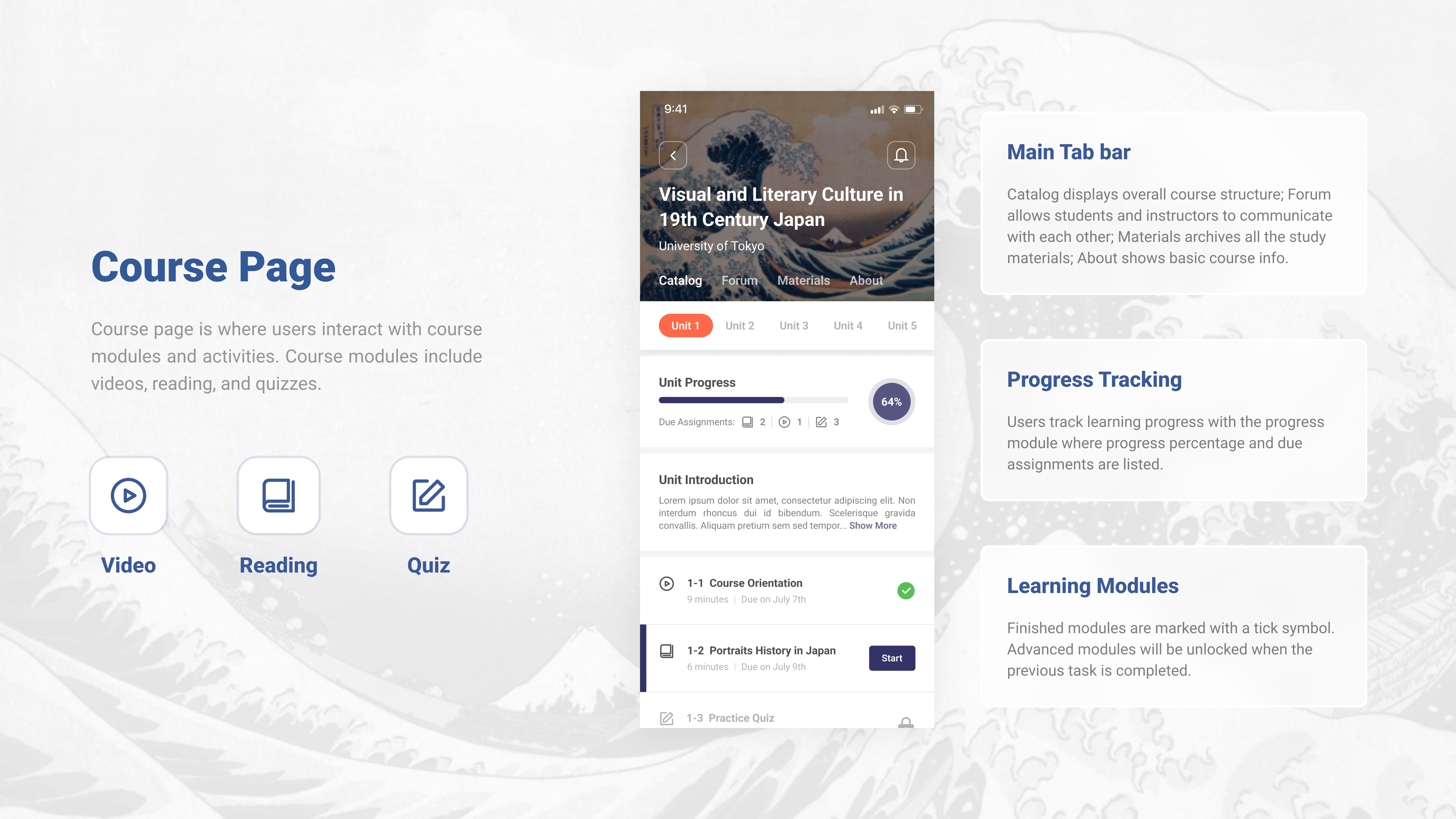 The implementation of History Addict can turn the originally tedious history learning process into a gamified experience. All the features can be easily interacted with through common hand gestures, such as click, swipe, drag, as well as press and hold. Users can access these features with ease. The homepage feed automatically recommends courses that are currently trending based on other users’ interest on the app. On top of this, the app leverages machine learning algorithms to suggest courses to the user based on his/her past searching, browsing, and learning behaviors. This ensures the user can get a good mix of familiar history topics that are similar to those they have learnt before and fresh history topics that they haven’t touched on yet. Users can study history through a variety of means, such as reading materials, video lectures, gamified quizzes, and discussion forums, etc. The various learning forms are designed for greater flexibility to suit different user groups’ needs. For example, the reading materials combine text and relevant illustrations/images to make the reading experience more immersive. The video lectures provide interpretation from a scholar’s perspective to help users understand complicated knowledge points. On top of this, the interactive quizzes not only serve as an effective tool to test learning outcomes but also as a game to add joy to the users’ learning experience.