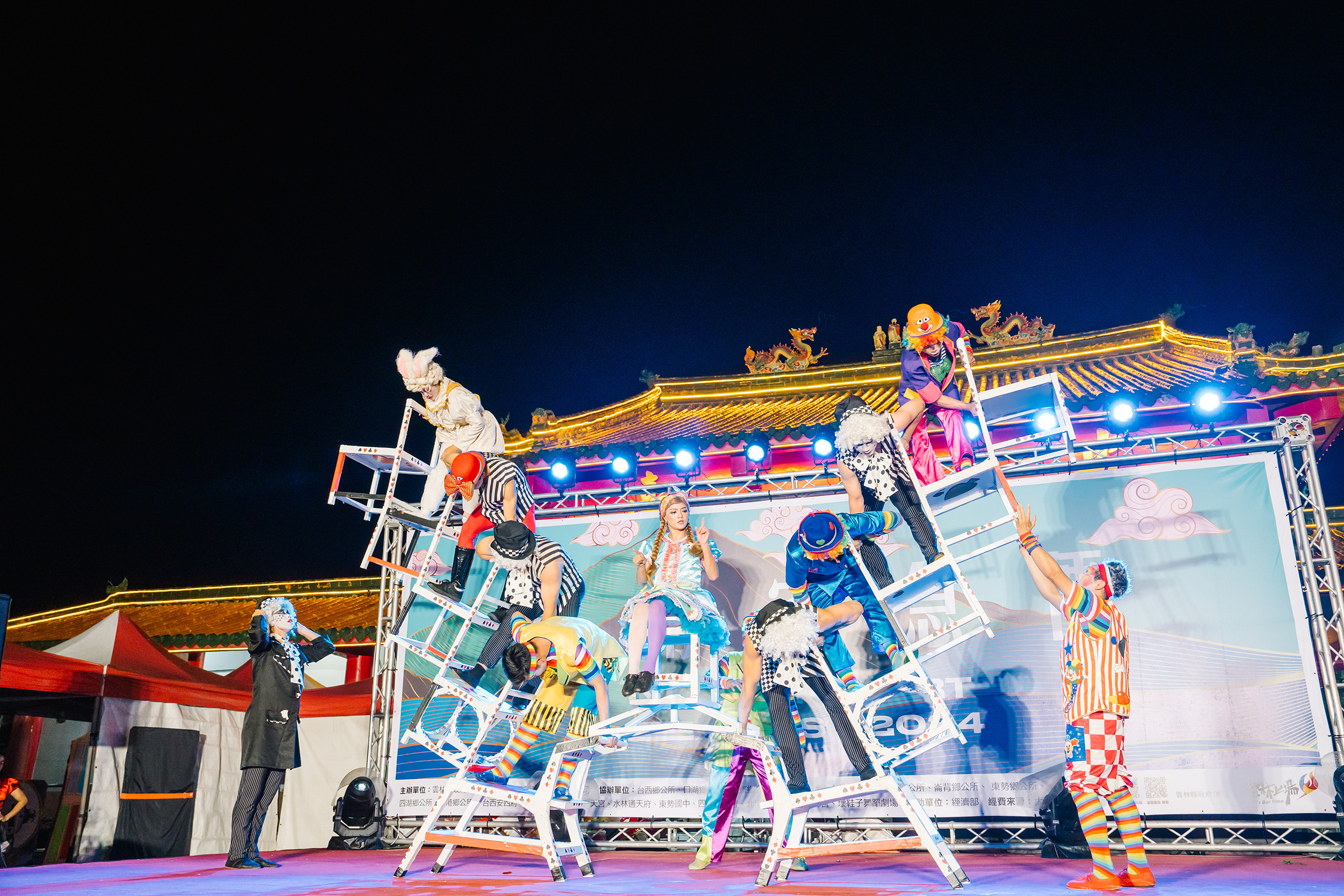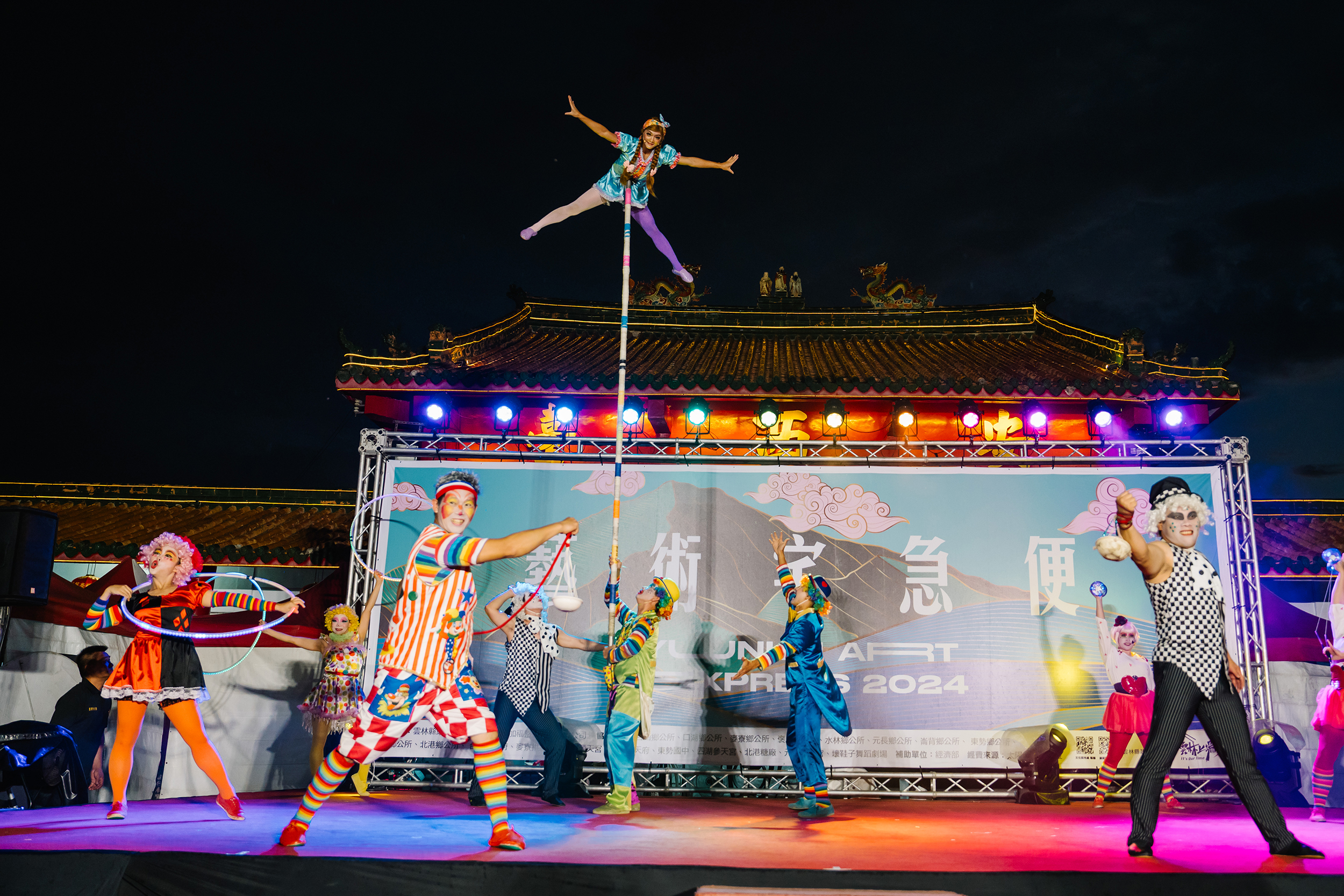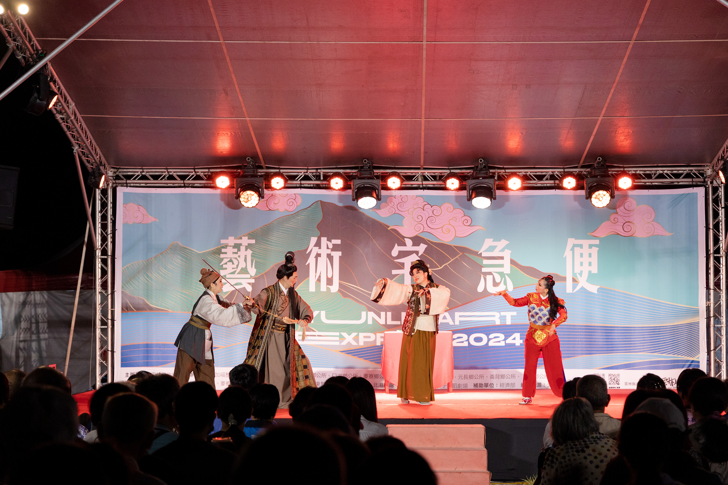 "Yunlin Art Express 2024" was born out of the desire to bring diverse cultural and artistic resources to rural areas, fully expanding the reach of the performing arts so that they could touch a broader audience. The performance art events resonated deeply across Yunlin's various townships and communities. Over the four months, a diverse array of teams—encompassing theater, dance, music, and circus acts—came together. Participating groups included the Tang Mei Yun Taiwan Opera, Bare Feet Dance Theater, Nan Fang Duet, the Yunlin Saxophone and Wind Ensemble, as well as the Taiwan Acrobatic Troupe, O Theater, Tien Circus Theatre, and renowned glove puppetry masters.
