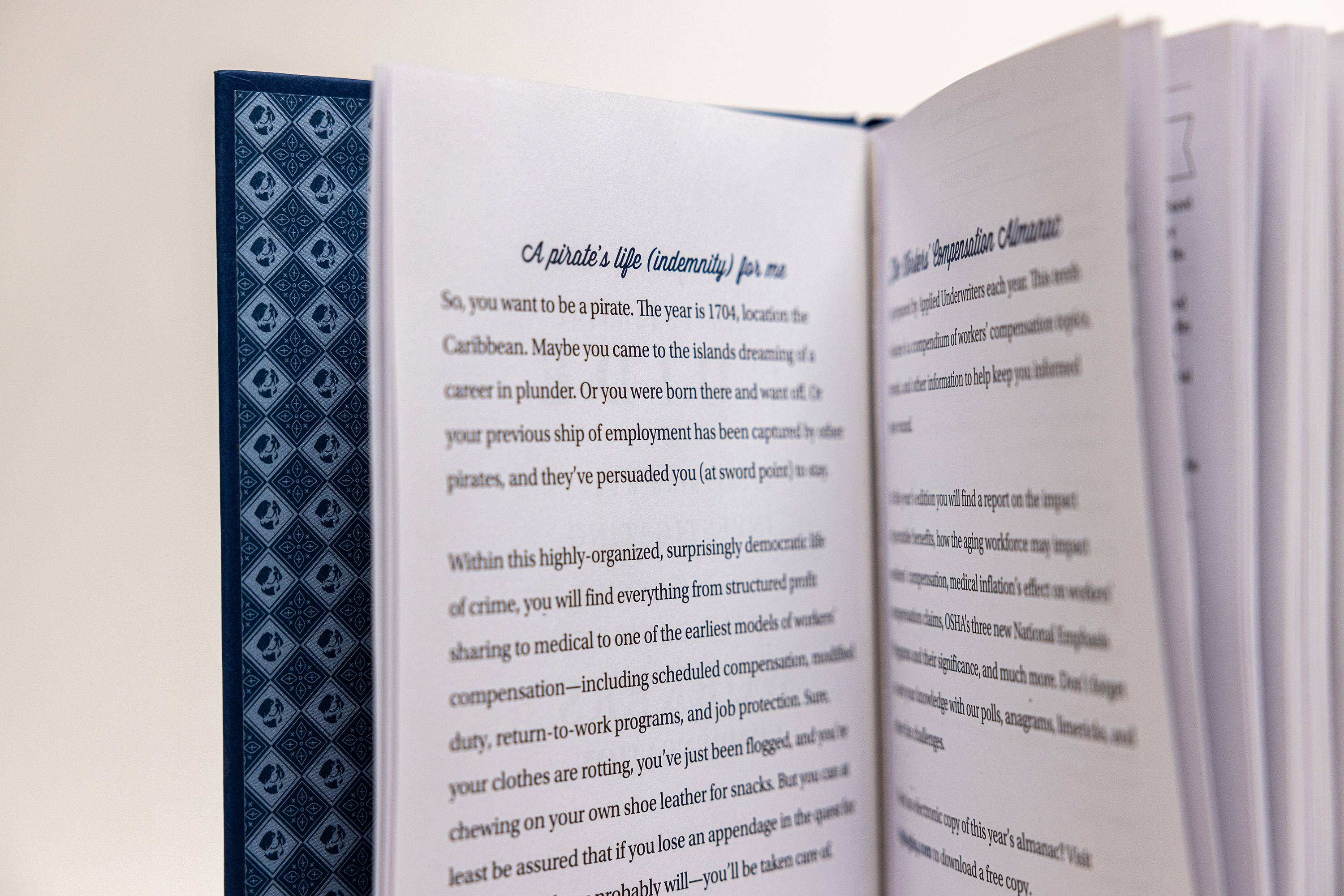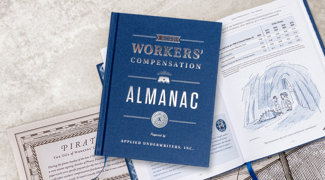 The Applied Underwriters Workers’ Compensation Almanac, now in its tenth edition, is the essential guide to everything worth investigating in the world of workers’ compensation, including articles and charts covering the current year’s market trends, legislation, and other interesting analysis. But content is not all analytical. The Almanac also includes challenging puzzles, fascinating factoids, and offers readers the chance to earn prizes by engaging with content. The featured tear-out displayed an oversized, illustrated map of a pirate ship, noting the many workers’ compensation claims pictured—all written in pirate speak, of course.