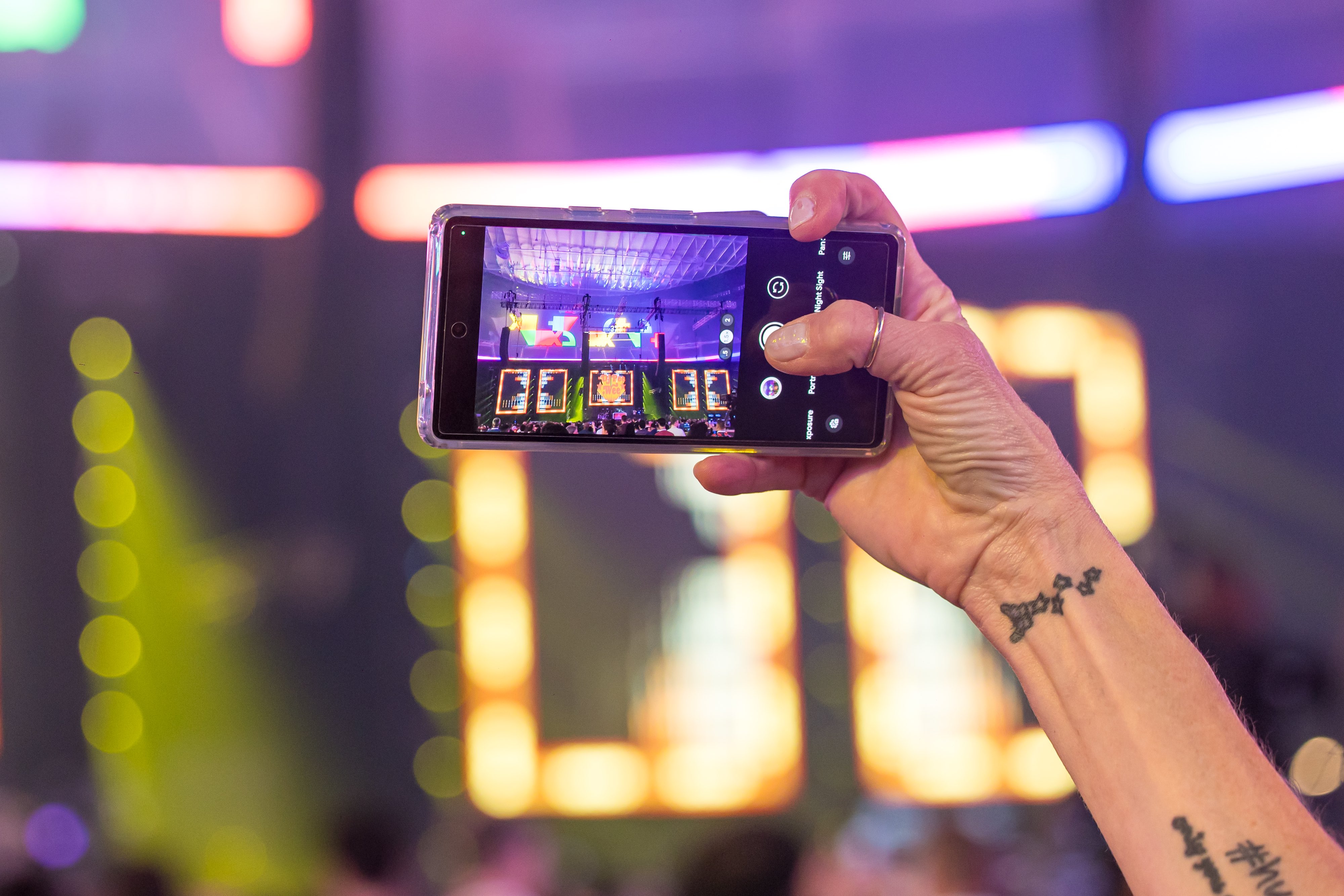 For the Allegiant Stadium concert, GPJ partnered with the venue to close the Hacienda Bridge, reducing the need for transportation. Inside, the venue's 5,400 digital screens replaced print graphics, and plant-based alternatives enhanced sustainability-friendly F&B options.