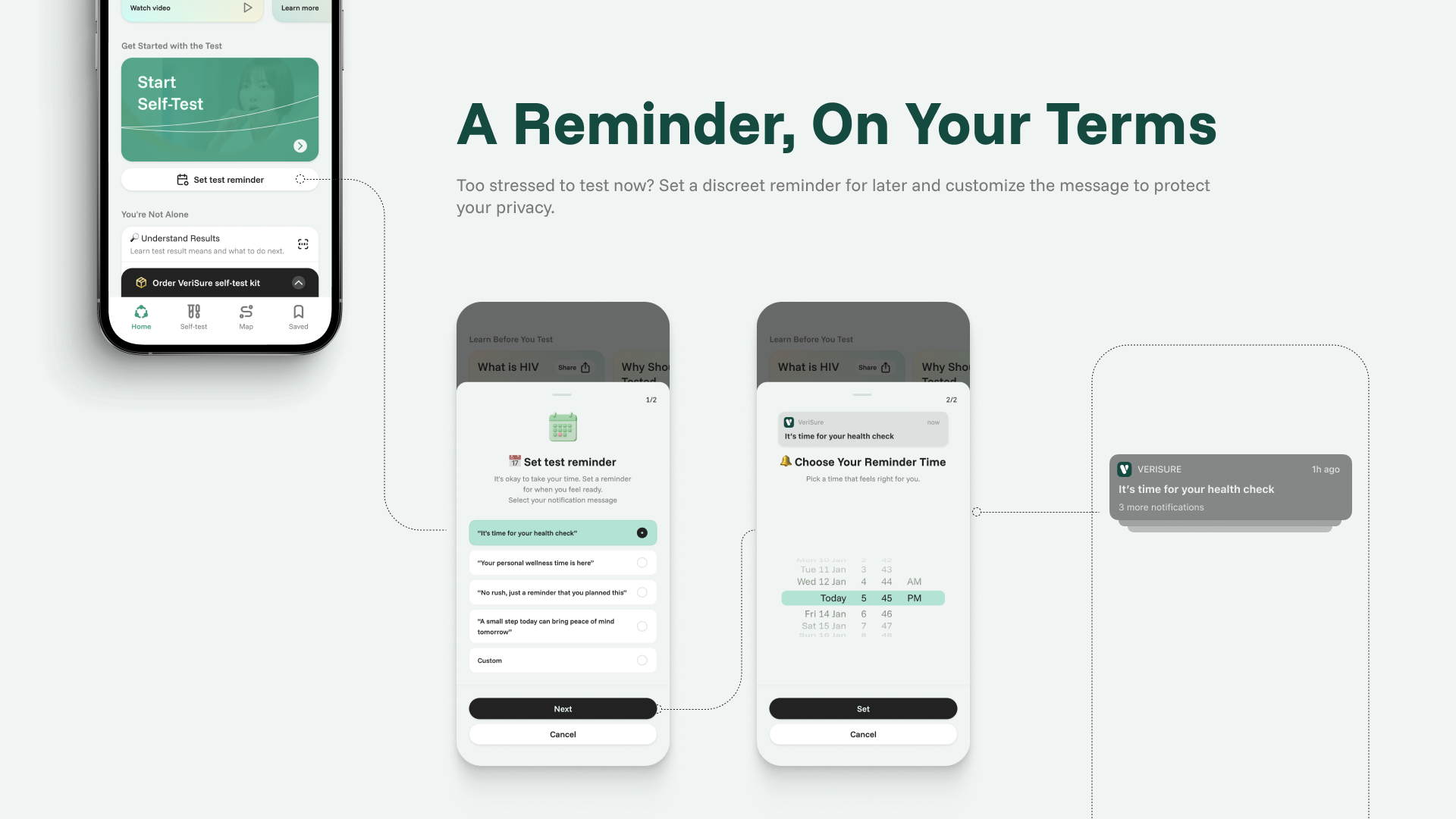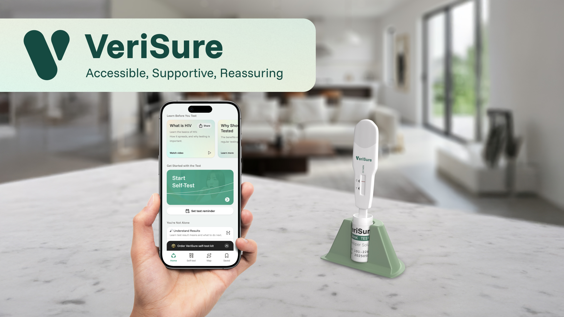 VeriSure is a Digital HIV Testing Assistant goes beyond simple testing by providing a guided, supportive, and stress-free experience. It includes step-by-step test instructions, a calming pre-test feature, result interpretation, and easy access to follow-up care. The built-in map helps users find nearby clinics, while customizable reminders encourage regular testing. Designed with privacy, and accessibility in mind, it transforms self-testing into a seamless and reassuring process.