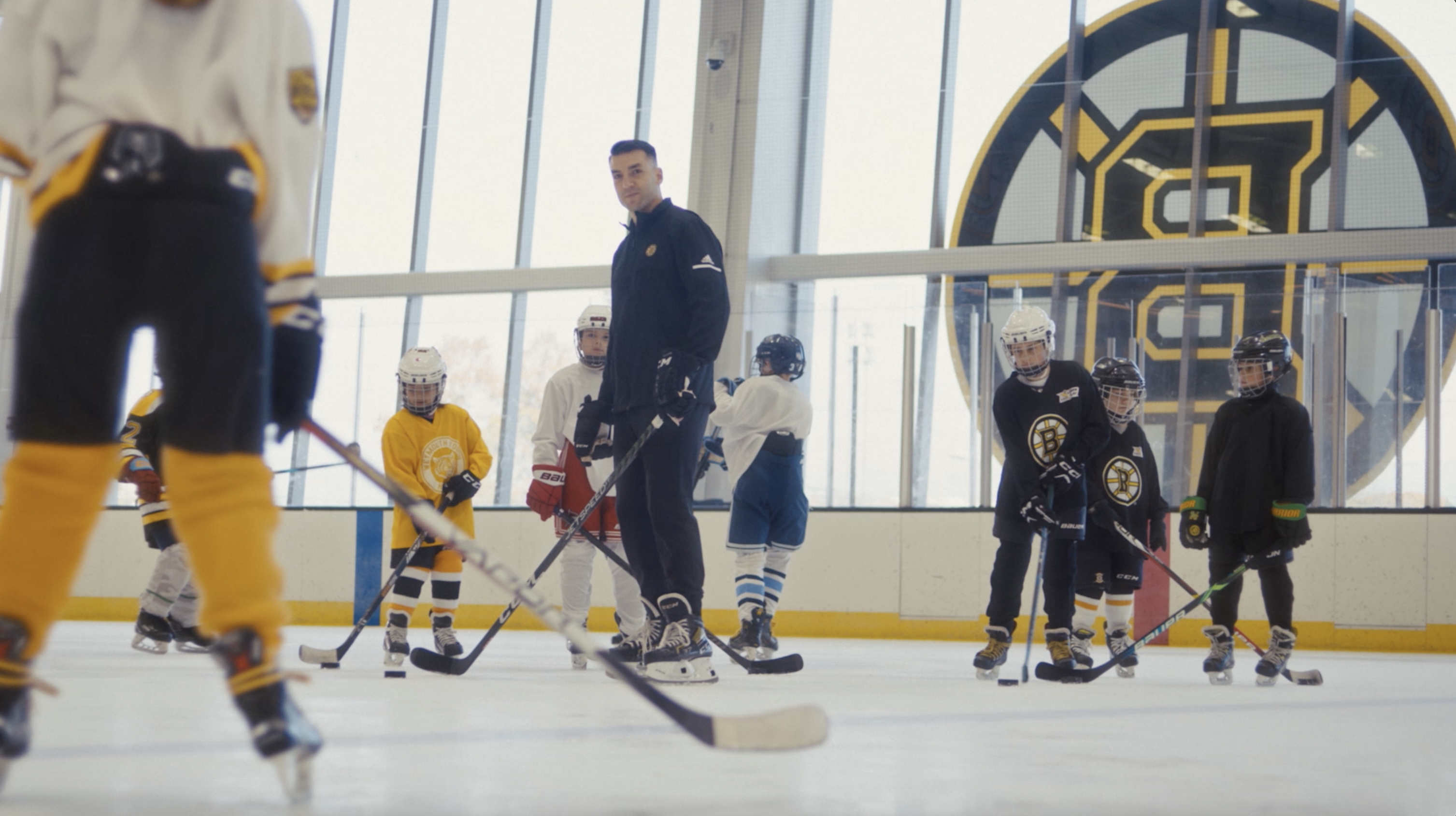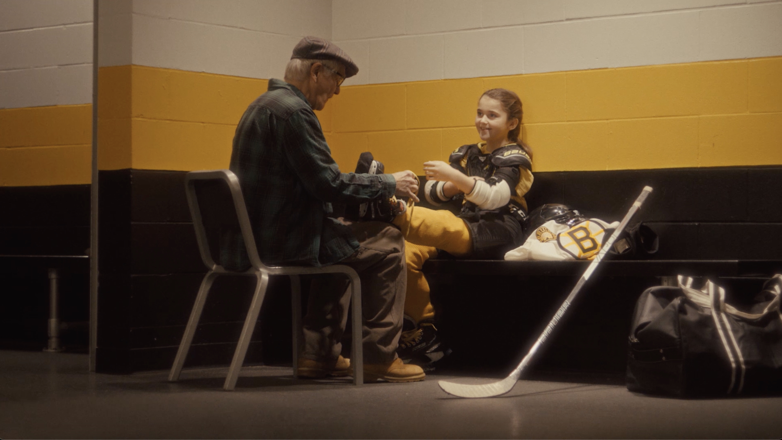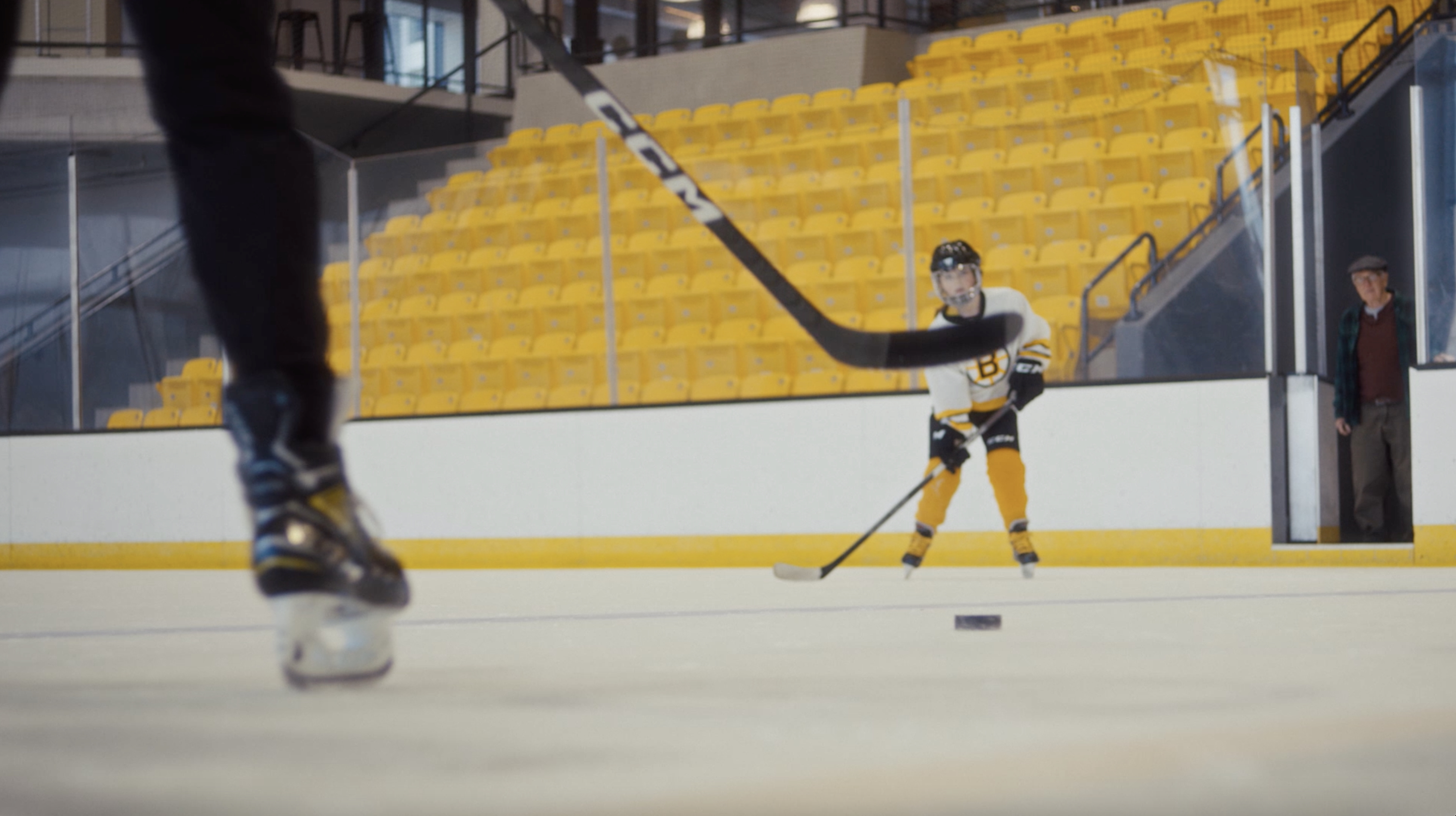 To do so, the Bruins partnered with creative agency GYK and Big Brick Productions to create "Begin Again" – a spot that played in-arena before puck drop and via broadcast TV, digital, and social. The story starts with the bond between a grandfather, a diehard fan and collector of Bruins artifacts and memories, and his granddaughter. At hockey practice, the grandfather proudly laces his granddaughter’s skates before she hits the ice to learn from a Bruins legend. Patrice Bergeron symbolically passes her the puck, giving this new forever fan a memento for her own collection. The team selected Warrior Ice Arena as their filming location, as it’s not only where the Bruins practice but also where they participate in hockey training clinics for local youth.