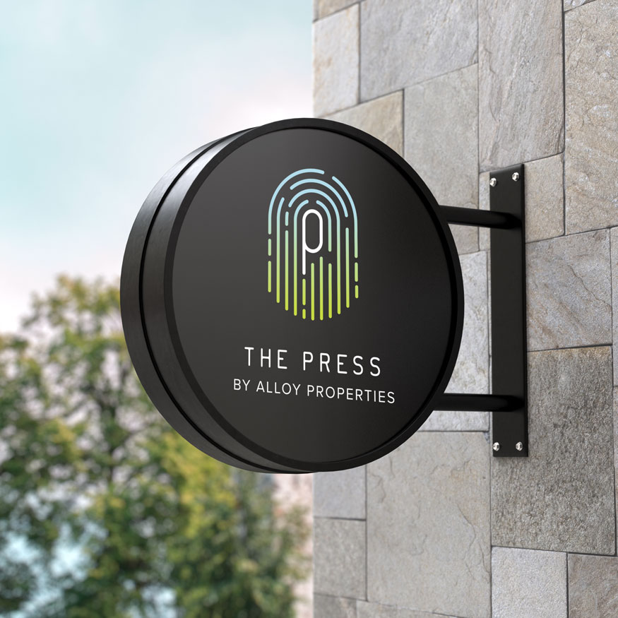 3. Historical Nod: The fingerprint cleverly alludes to the 'pressing' action, honoring the building's origins as a printing press distribution hub.
