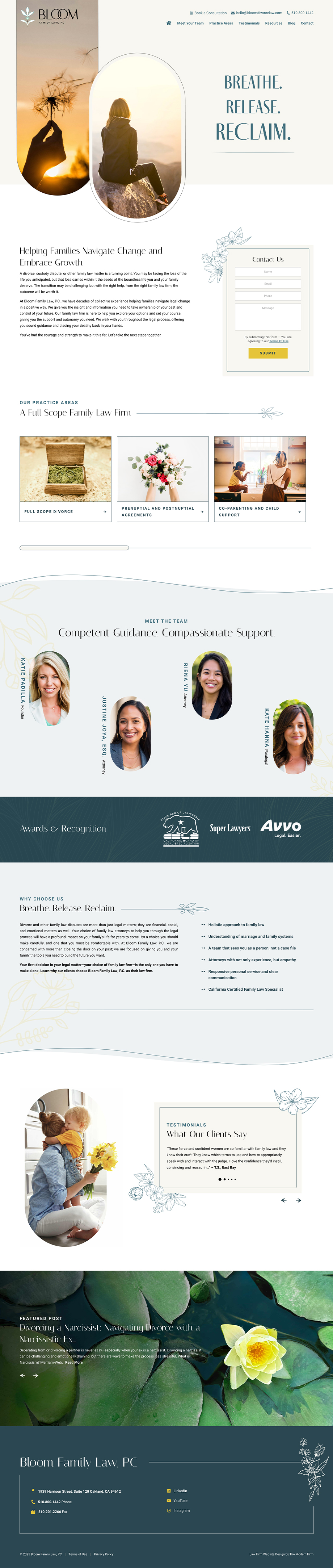 The firm’s founder, Katie Padilla, chose the name Bloom Family Law to reflect the way that the firm helps clients grow and blossom through their legal matters and in the aftermath of divorce and other transitions. The practice offers a broad range of services to support families through change, such as consulting, coaching, and even divorce retreats.