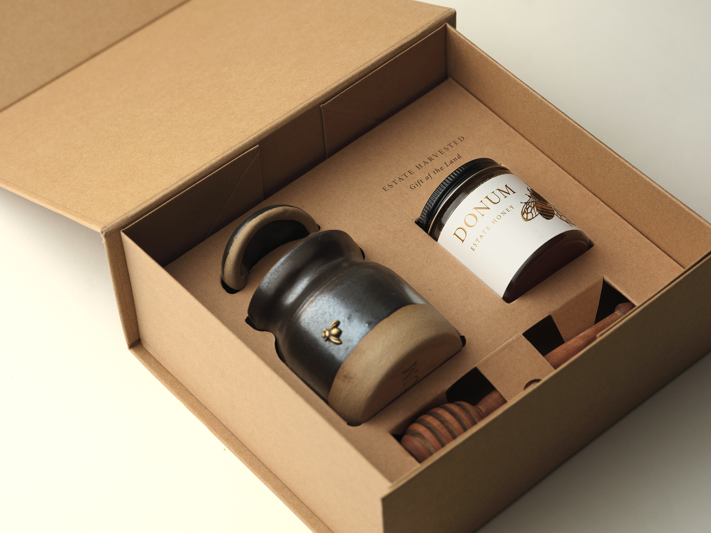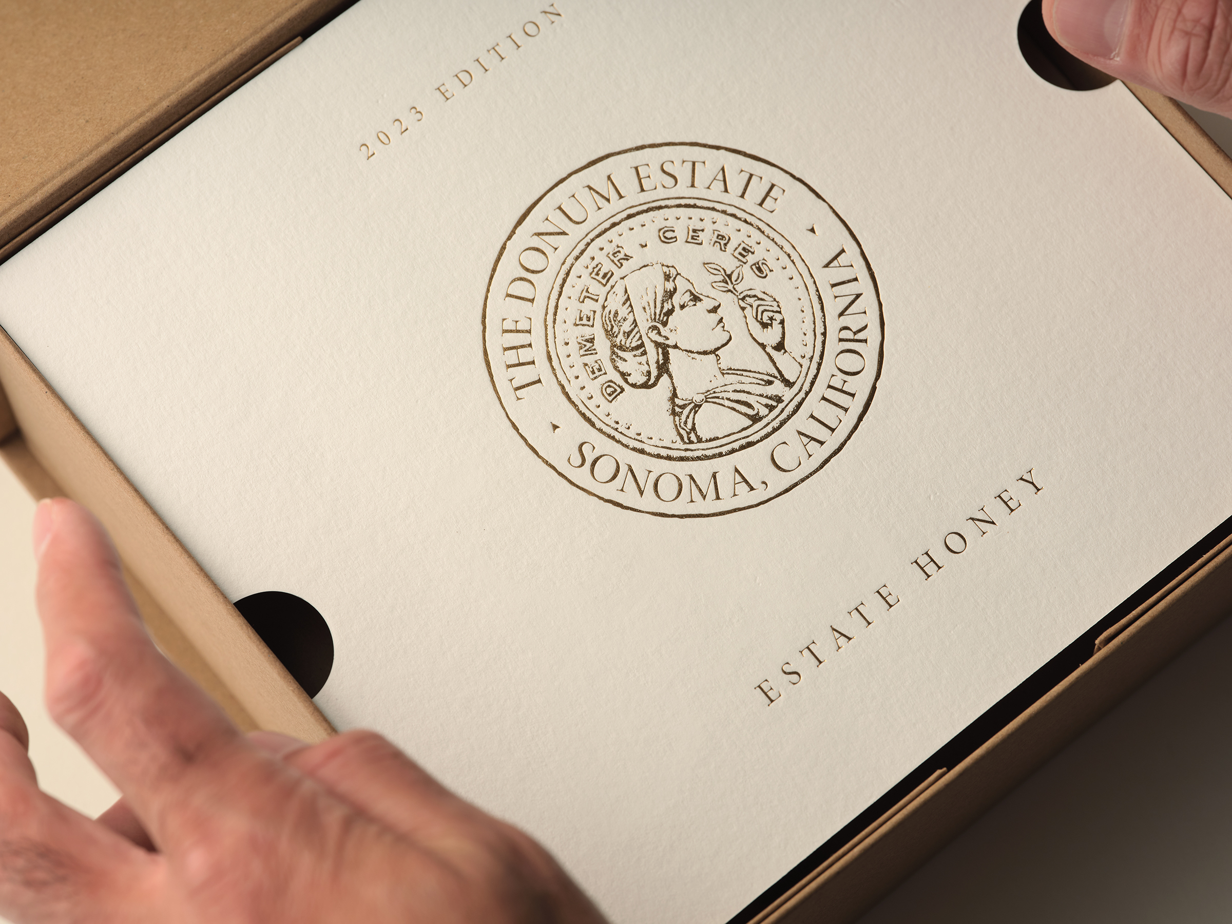 With these collaborations in place, we set out to design every detail of the package, from the honey jar to the inserts, ensuring that the entire experience felt as premium and sustainable as Donum’s wines. The final result is a beautifully crafted unboxing that honors Donum’s core values of artistry, quality, and sustainability.