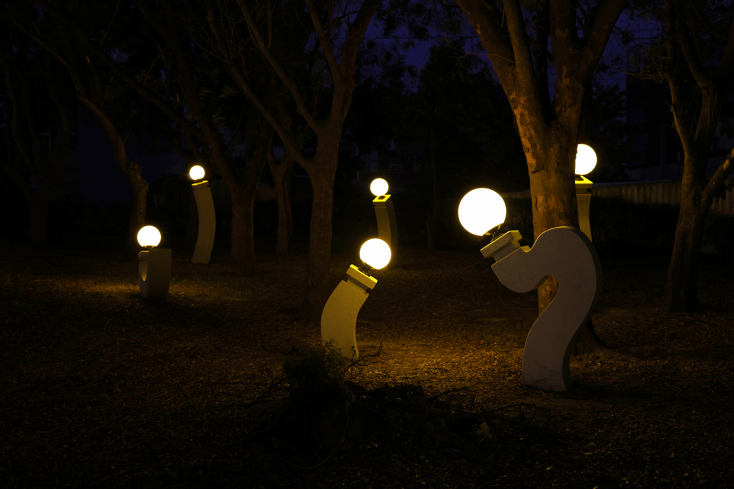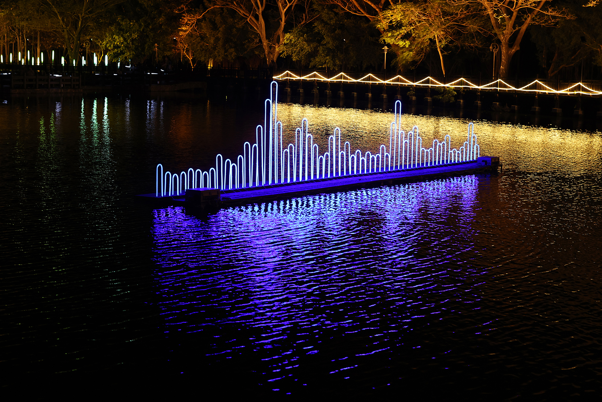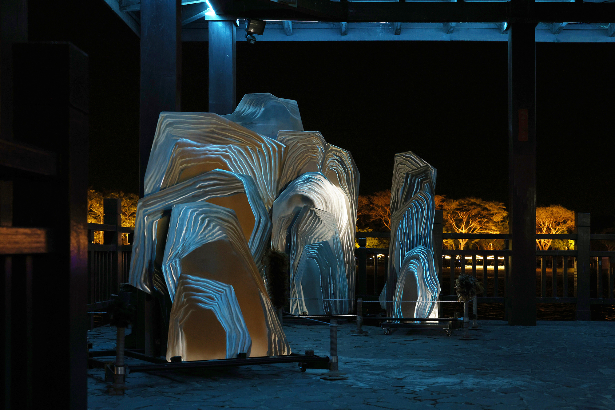 The 2025 Xinying Shimmer Festival was held at Swan Lake Park, symbolizing a microcosm where urban and natural development intertwined. The curatorial concept focused on the image of the “wanderer,” with the ever-changing and flowing qualities of light serving as the centerpiece, simultaneously capturing a region’s evolution over time. From urban culture and social structure to interpersonal relationships, the festival led audiences to experience the macrocosm of a small city through the shimmering interplay of light and shadow. As dusk fell and lights gradually emerged, the installation art of the Shimmer Festival was unveiled, inviting visitors to stroll along the trails and infuse their own life experiences into the exhibition.