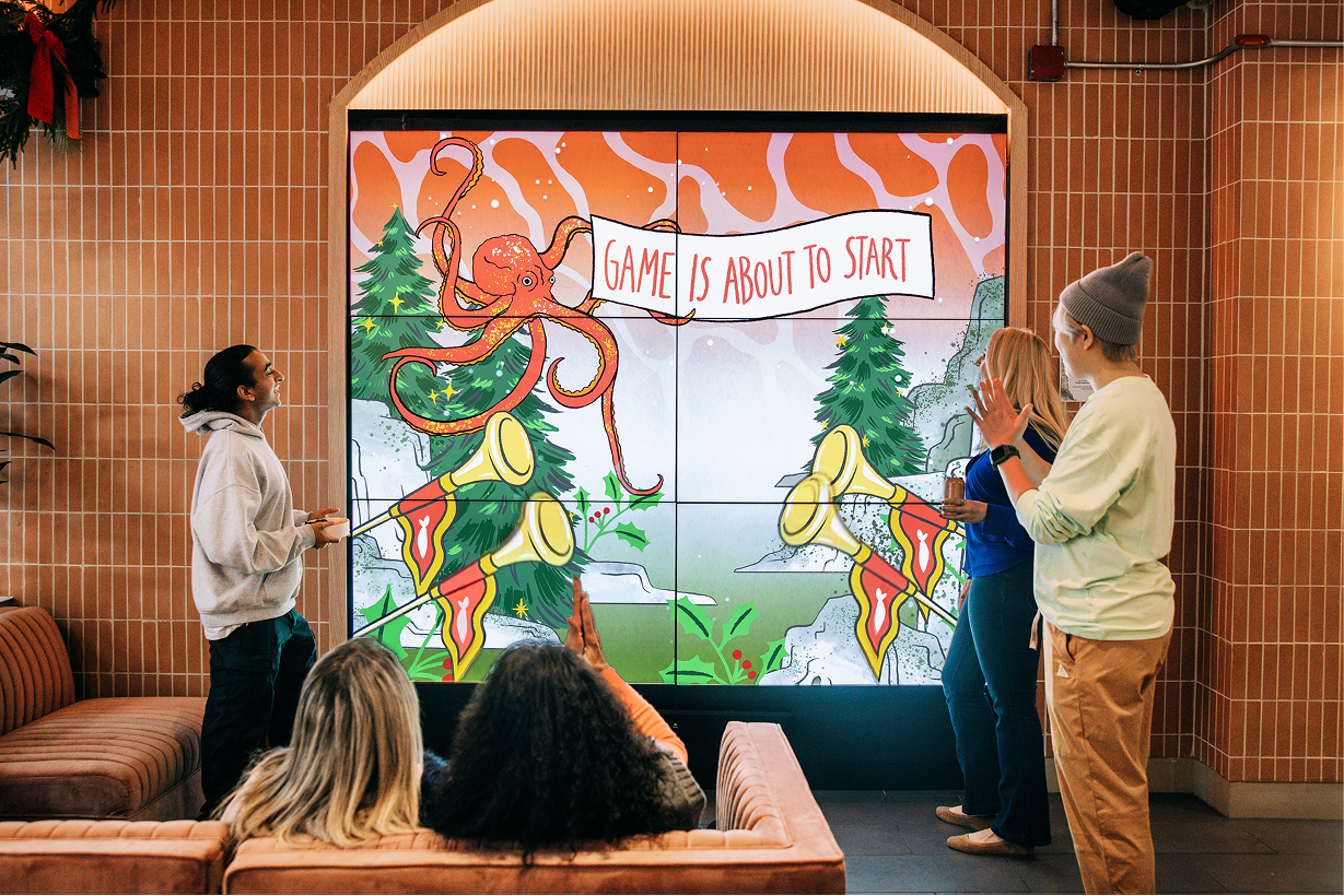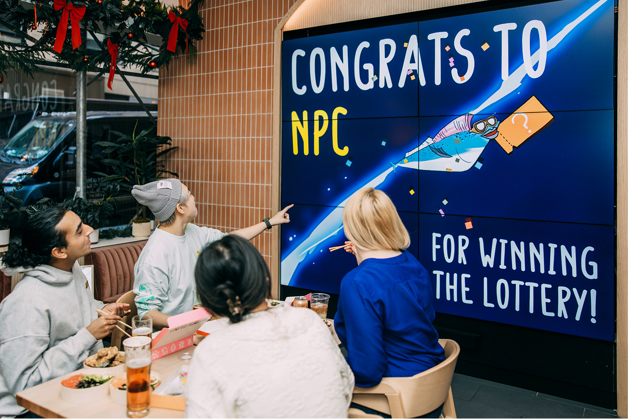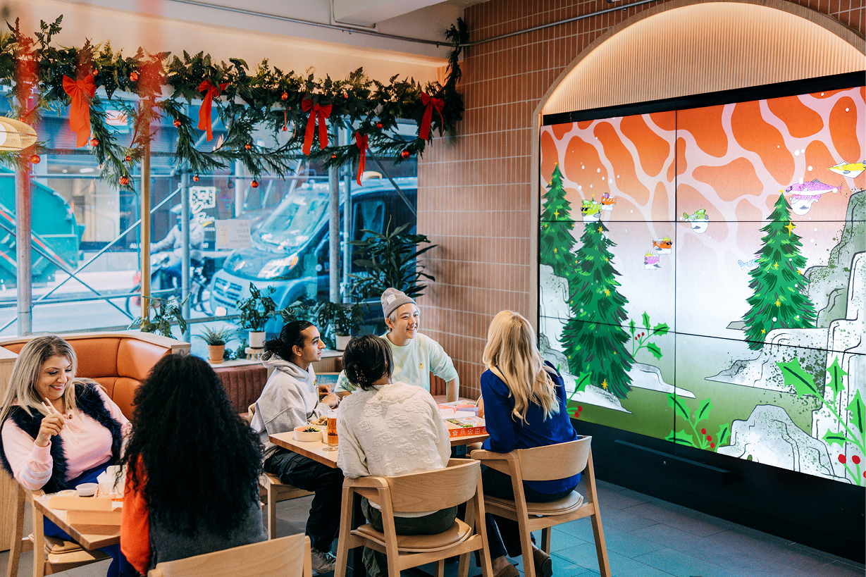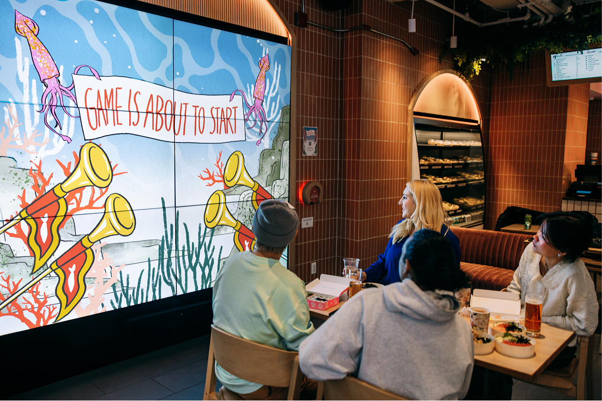 Hey Fish! is an exciting in-store interactive experience at Happy Tuna’s NYC flagship, designed to make dining more engaging. This gamified reward program allows customers to create their own digital fish, launch it onto the restaurant’s large LED wall display, and participate in fun activities such as lottery for coupon, fish decoration and other rewards.