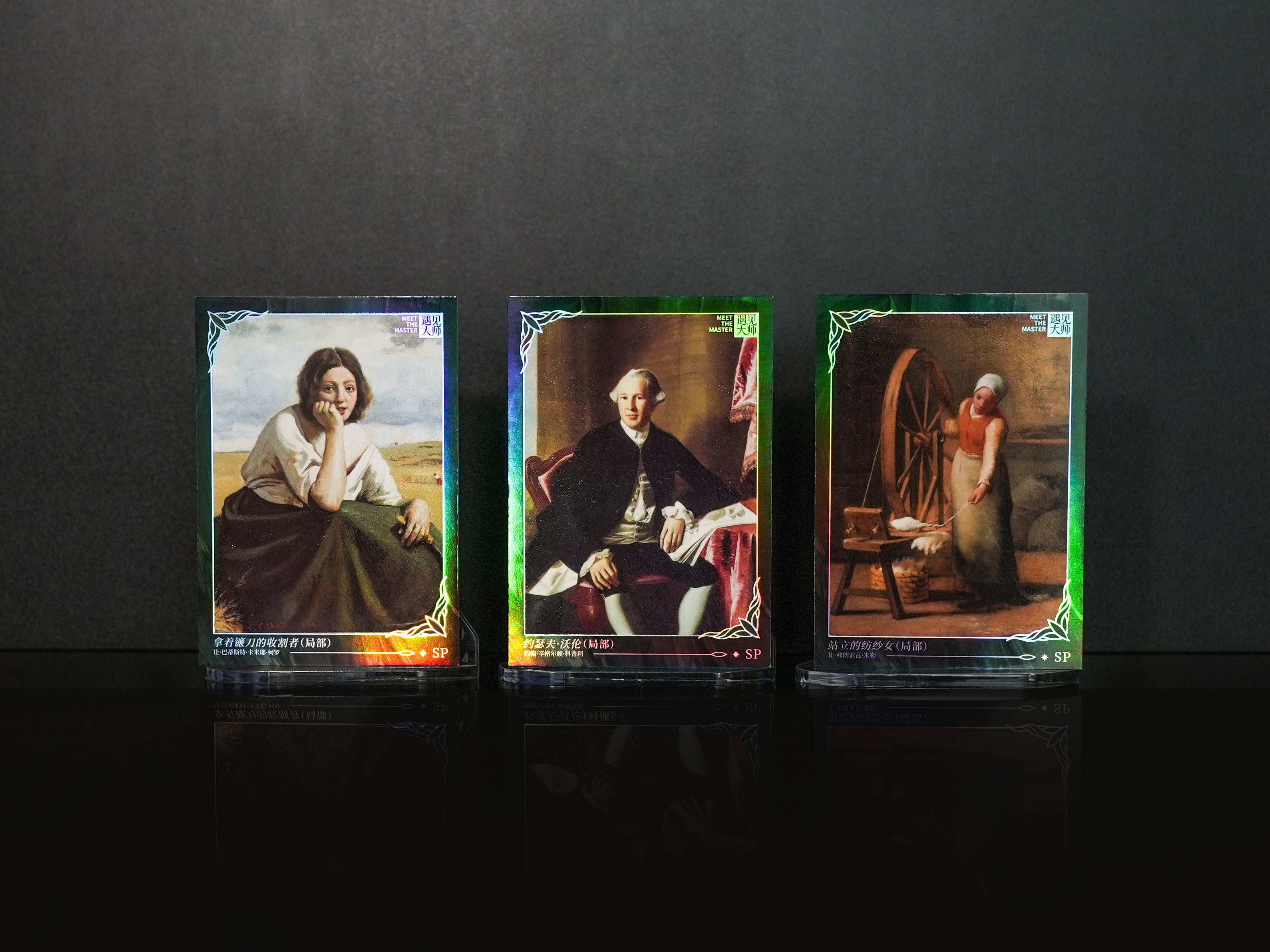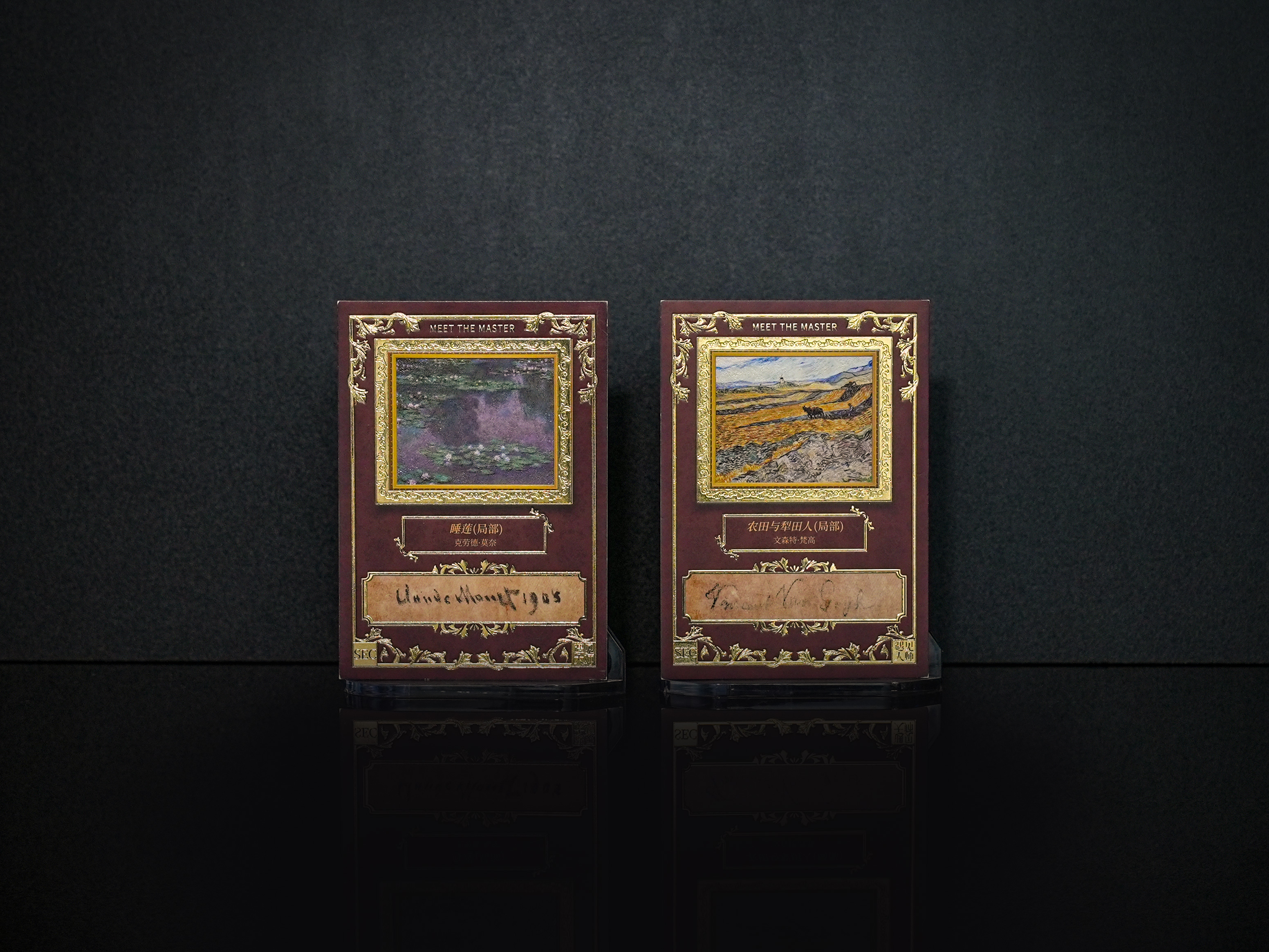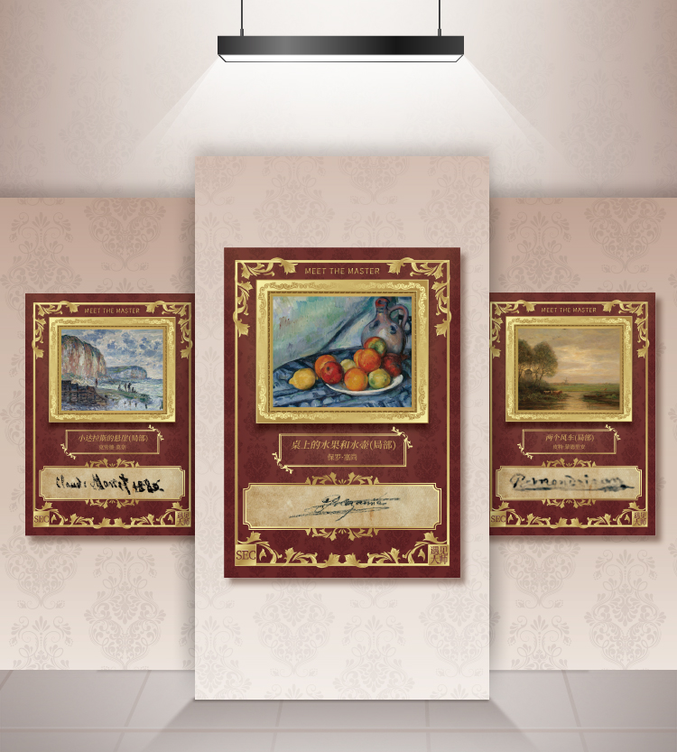 The design integrates multiple-layered materials and sophisticated techniques to create an artistic medium that balances collectible value with aesthetic depth. The card is made from 300g high-whiteness coated paper, finished with a matte film and reverse UV (Ultraviolet) printing, ensuring optimal visual comfort and intricate detail presentation. Rare edition cards also employed premium techniques such as embossed hot stamping and material inlays, with a 0.1mm embossed texture simulating the tactile quality of oil paintings. The integration of two techniques further enhances the dynamic interplay of light and shadow, recreating the vibrancy of the original masterpieces. Designed with an interactive approach where “Tactile Leads the Visual” —embossed hot stamping creates the tactile quality, while the contrast between matte and glossy areas brings out the movement of light and shadow in original works, the design offers a multidimensional experience that resonates visually, texturally, and emotionally.