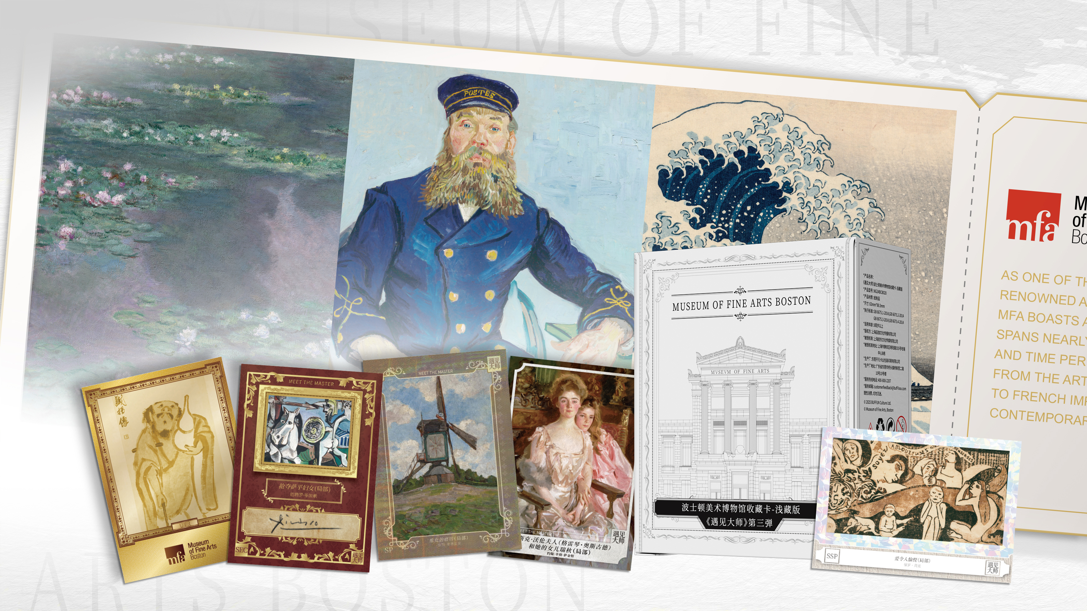 The project reimagines art appreciation by introducing an innovative MFA (Museum of Fine Arts, Boston) collection card that transcends the traditional limitations of time and space, bringing timeless masterpieces closer to everyday life. Featuring iconic works by world-renowned artists such as Monet, Van Gogh, and Katsushika Hokusai from the MFA, the collection card employs high-precision printing and advanced color restoration technology to faithfully replicate the original brushstrokes. By combining state-of-the-art printing techniques with fine craftsmanship, the card offers an enhanced visual and tactile experience, transforming each piece into a “miniature art exhibition” that extends beyond museum walls and into the hands of art lovers everywhere.