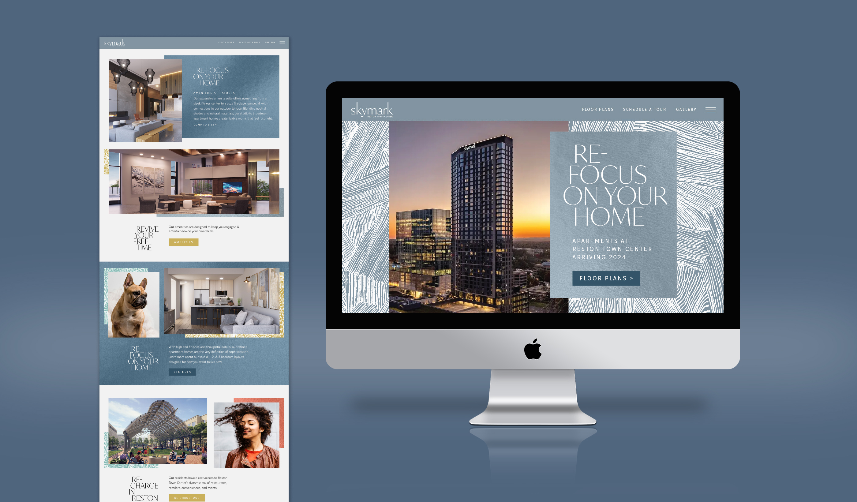 Clean composition, generous white space, and intentional restraint reinforce the project’s streamlined and luxurious aesthetic. The result is a cohesive brand system that elevates the resident experience while asserting Skymark as a new icon in the Northern Virginia skyline.
