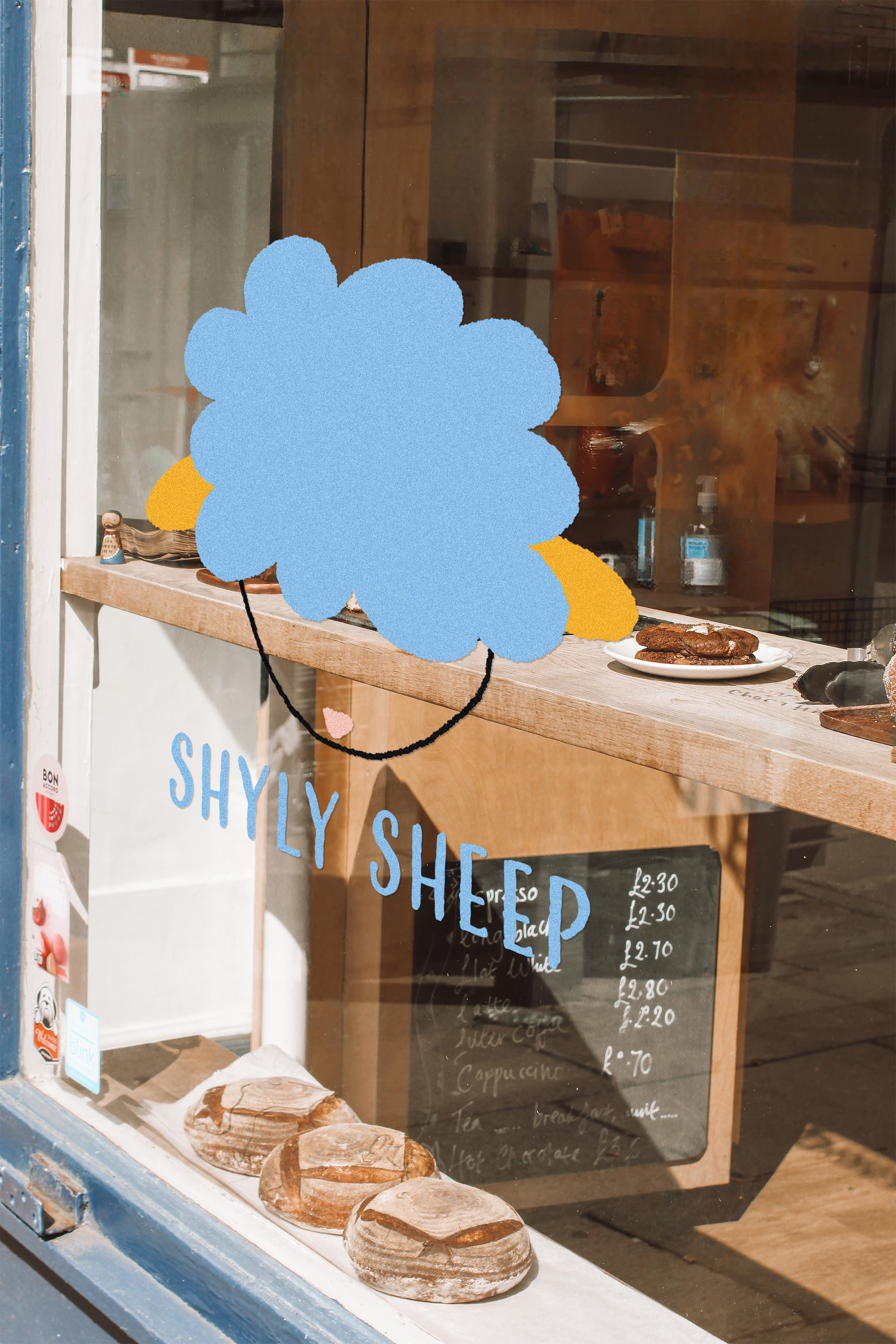 “Shyly Sheep: Sweetly in the Meadow – Brunch, Coffee & Wine” is a holistic brand identity project designed for a whimsical café that invites patrons to indulge in savory brunch fare, aromatic coffee, fine wine, and delightful sweets. At the heart of the concept is a shy, adorable sheep whose fluffy forelock covers its eyes—a playful nod to the cozy, carefree experience the café promises.