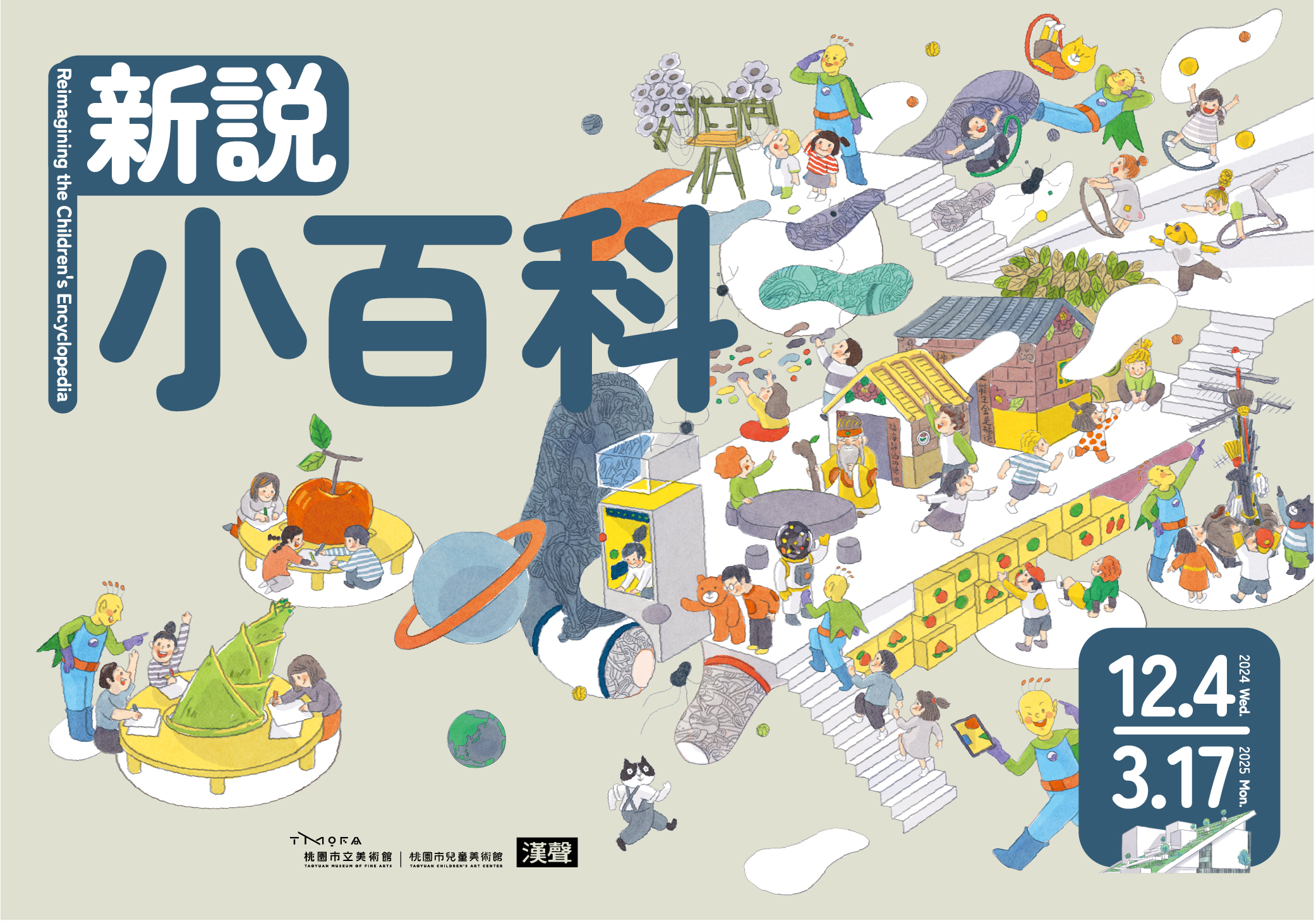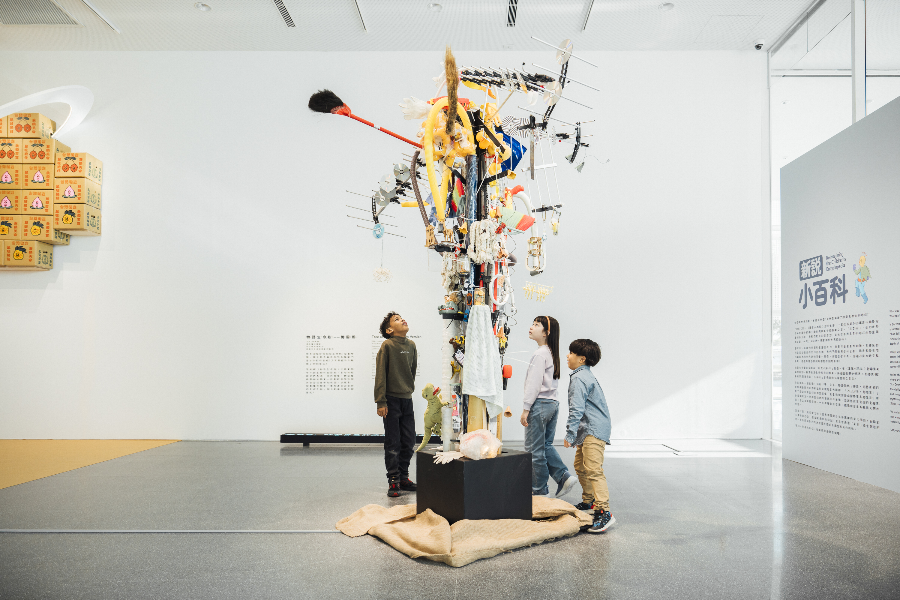 In celebration of the 40th anniversary of Echo Children’s Encyclopedia, TaoyuanChildren’s Art Center presents an exhibition titled “Reimagining the Children’s Encyclopedia.” The exhibition treats the encyclopedia as a time capsule, bringing past knowledge into conversation with the present. Eight groups of artists and teams have been invited to revisit the knowledge once brought by “Xiaobaike” and engage with it through their works. The exhibition unfolds along two exploration paths: “Huh! This is… Tales of a Hundred Wonders” and “Up to the Sky, Down to the Earth—My Home!” Through contemporary art, each artist reflects on or questions ideas of “place,” “the world,” and “the future,” offering new perspectives on knowledge through their unique experiences and diverse artistic forms.