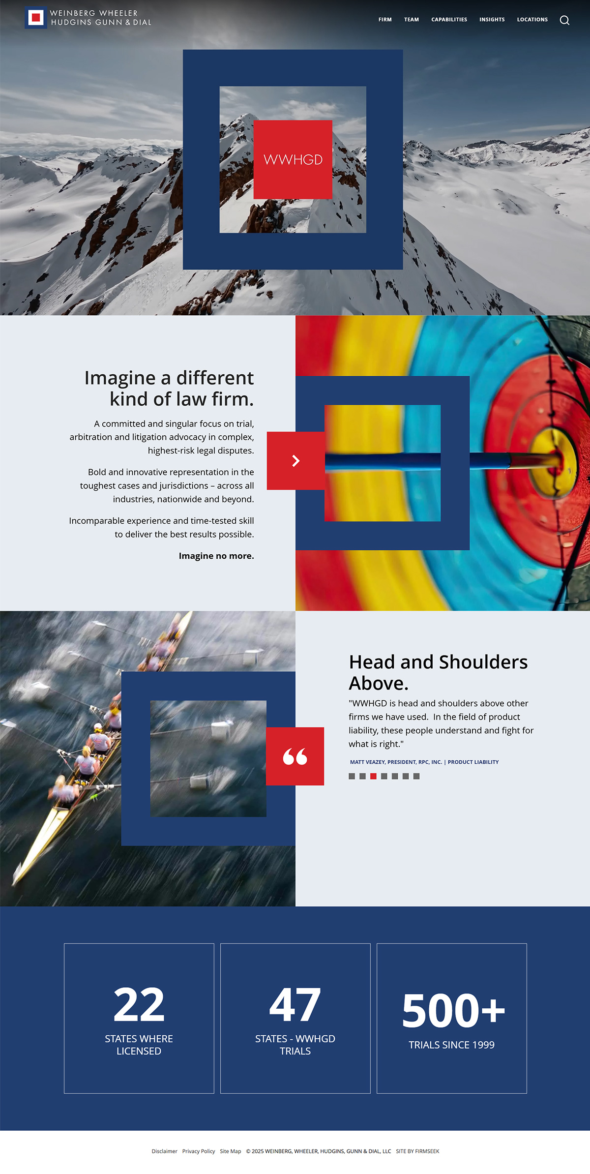 With over 25 years of experience and 7 offices across the country, Weinberg, Wheeler, Hudgins, Gunn, & Dial is a leading, full-service litigation law firm based in Georgia. The firm required a website that effectively showcases its extensive legal expertise while ensuring accessibility, ease of navigation, and scalability for future growth. Firmseek developed core messaging that seamlessly integrates with the sleek design, emphasizing the firm's rich history and innovative approach. Firmseek's powerful content management system enables real-time updates to both digital and print materials, streamlining business development efforts.