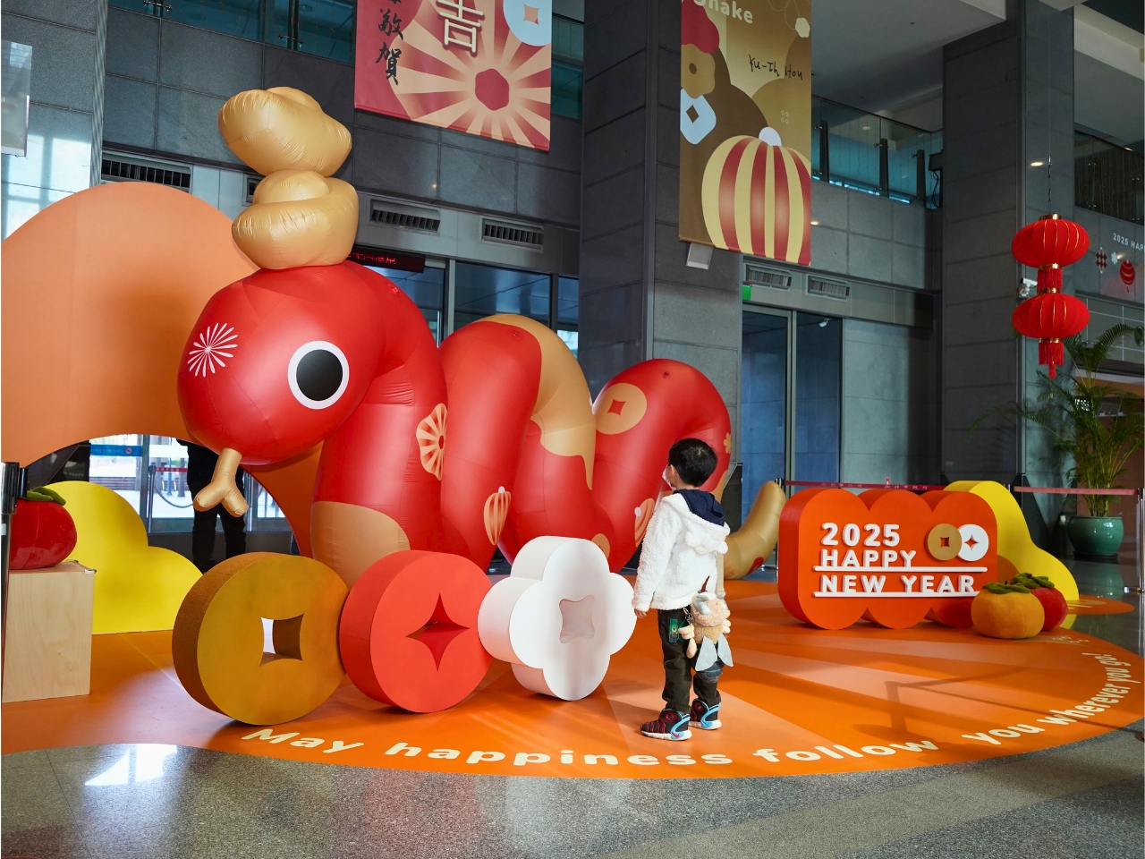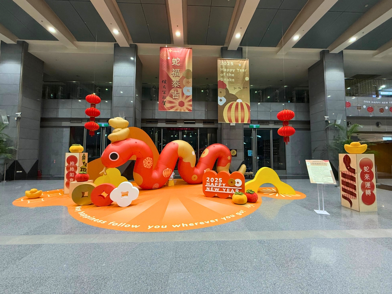 "Turning the Tide with a Sustainable Serpent" transforms a traditional Lunar New Year installation—typically symbolic and decorative—into a platform for sustainability education and carbon transparency.