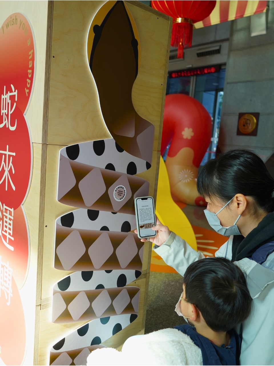 To enhance engagement, an NFC-based ecological tour was introduced, allowing visitors—especially families and children—to learn about Taiwan’s native snake species in an interactive format. The exhibition attracted over 20,000 visitors and received media coverage for its innovative integration of carbon literacy, festive celebration, and sustainable design.